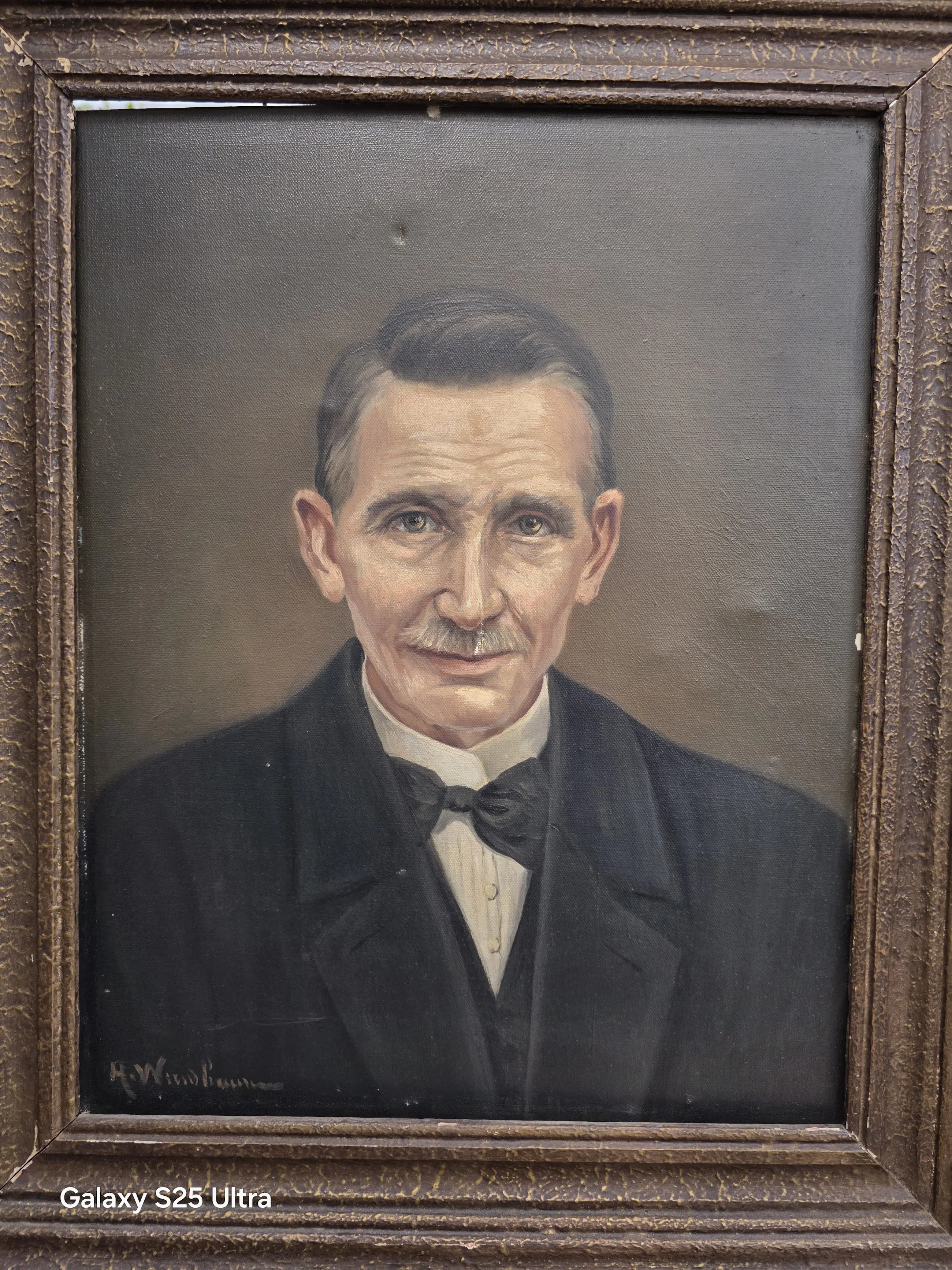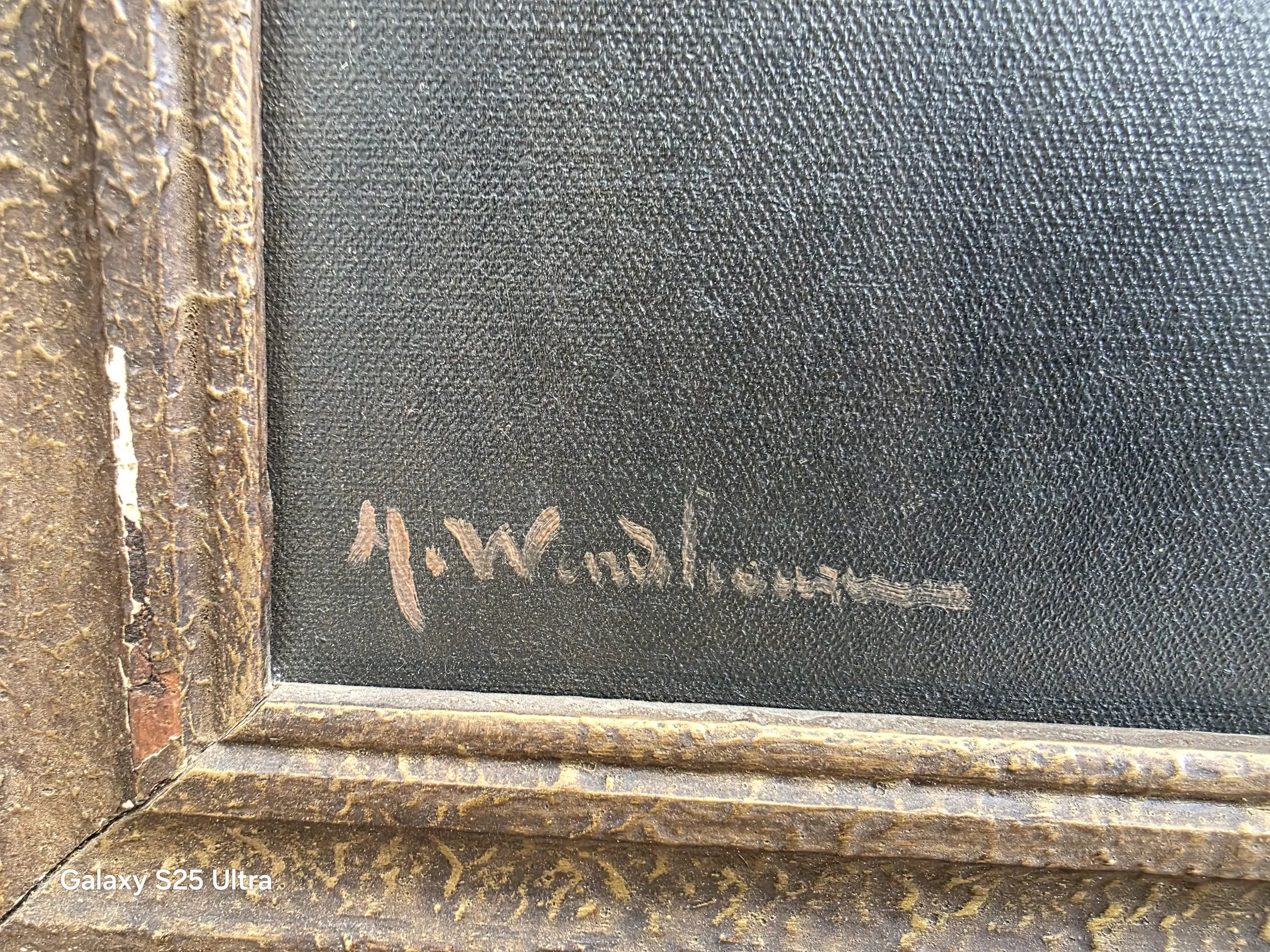 Er zit op 1 plek bij de man een scheurtje in het doek.