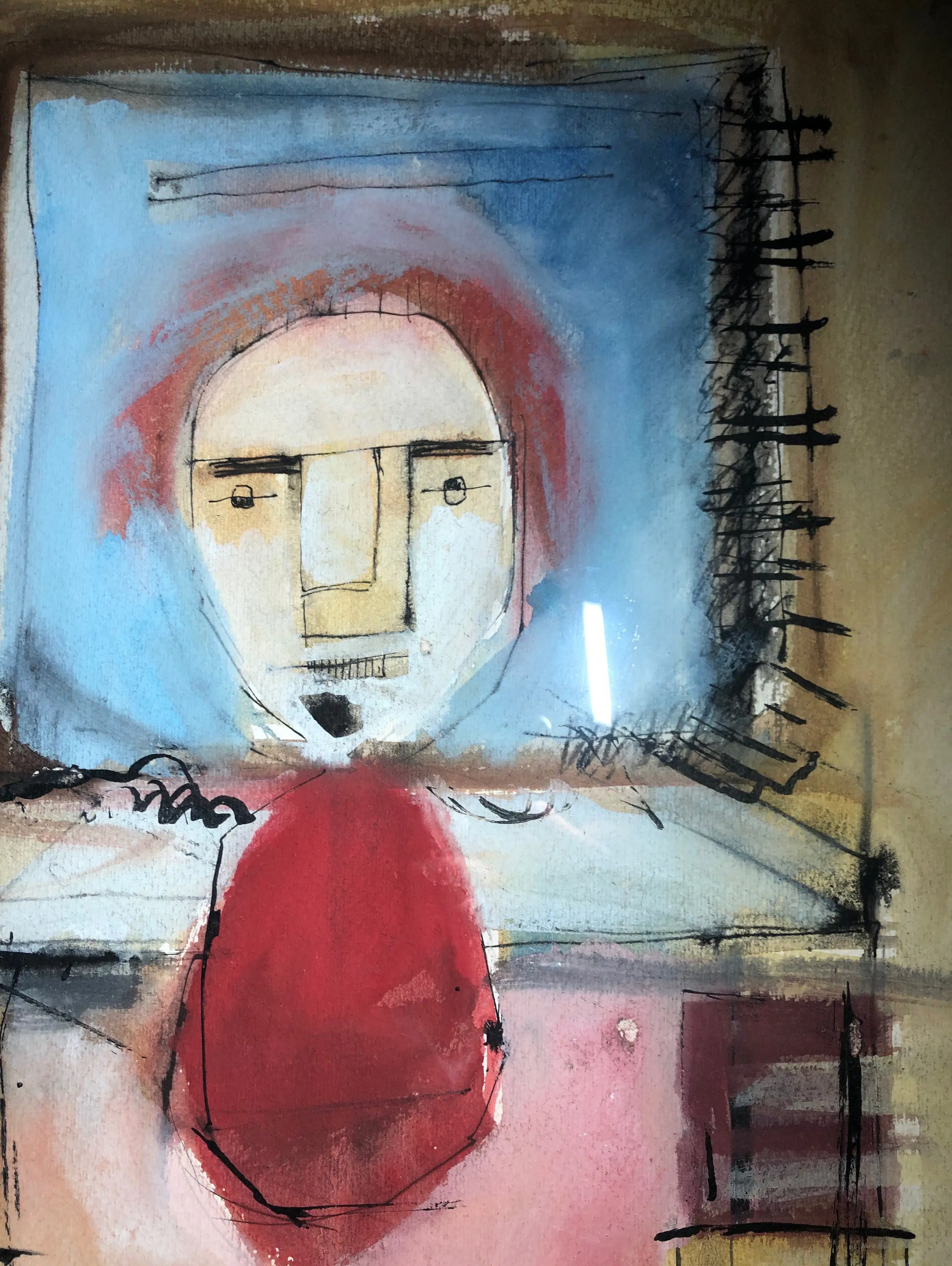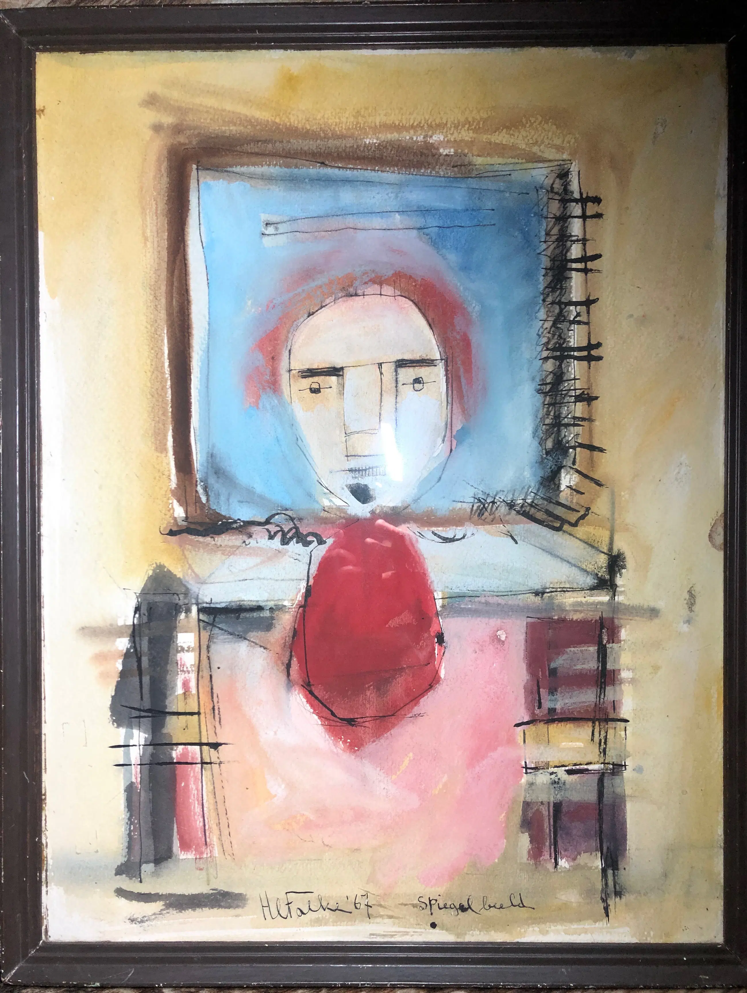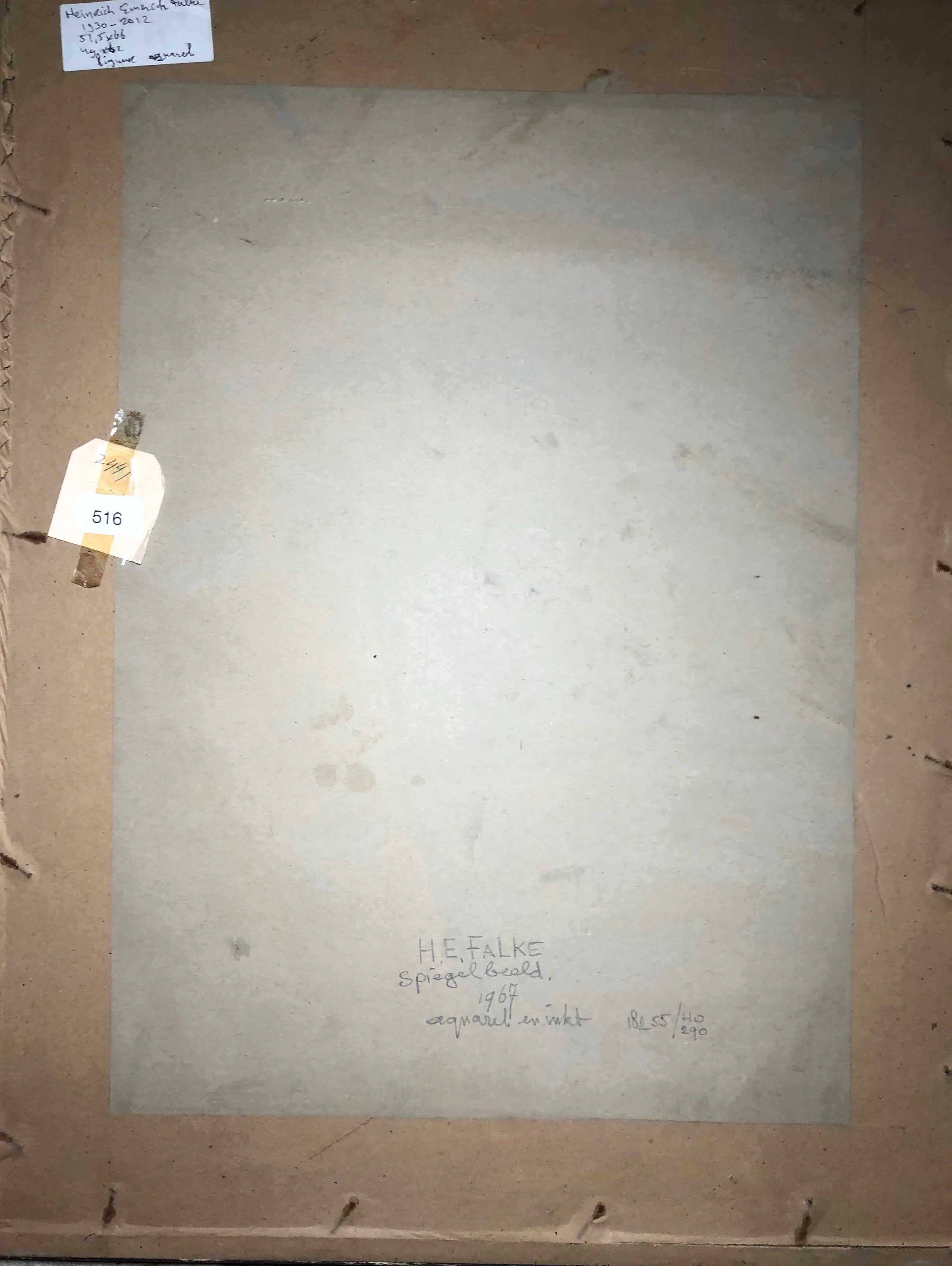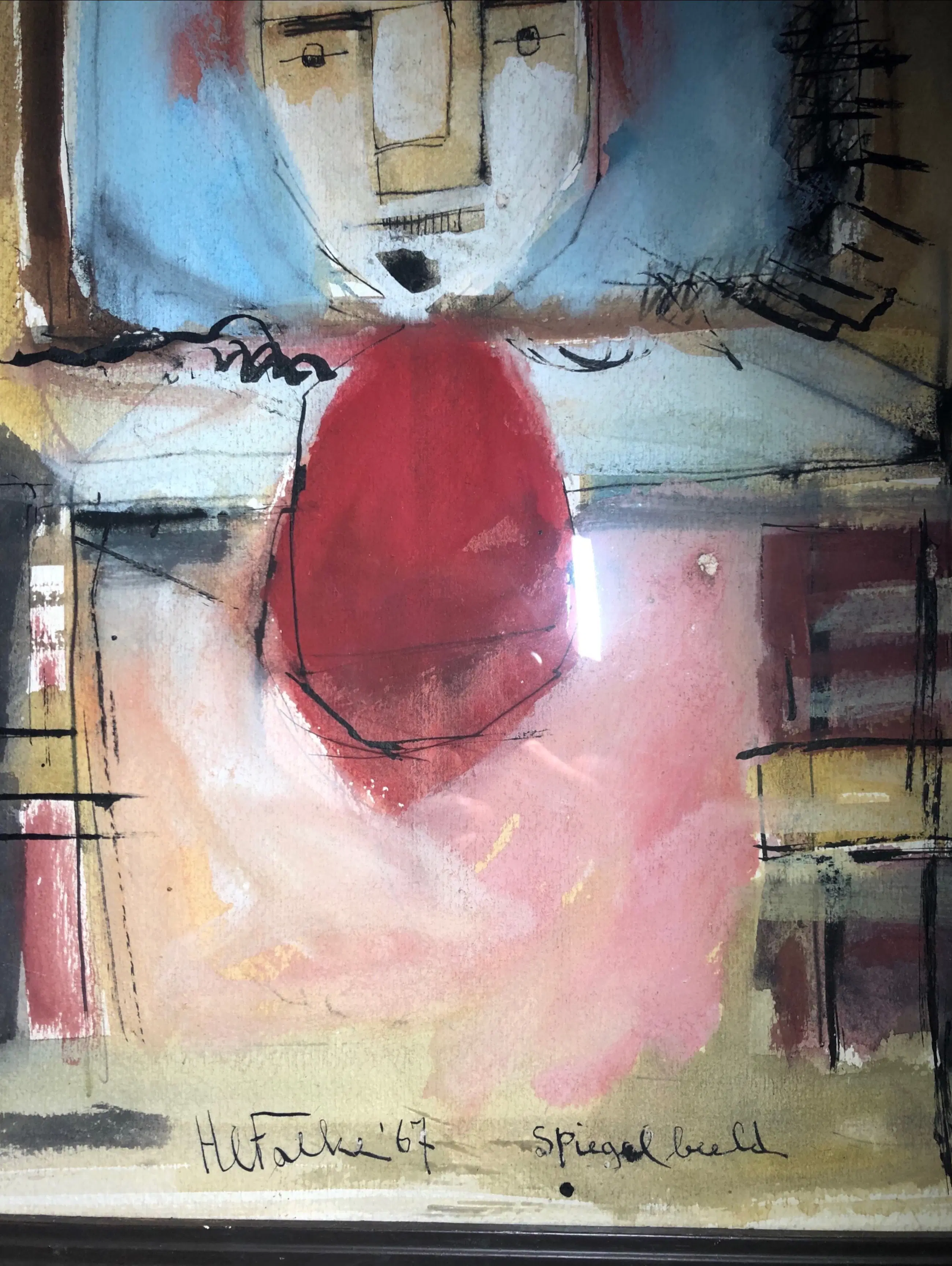 Mooi cobra achtig werk van Heinz Falke 1930 - 2012 “Spiegelbeeld” Aquarel en inkt 1967 Gesigneerd en gedateerd Mooie kleuren Inlijst met glas