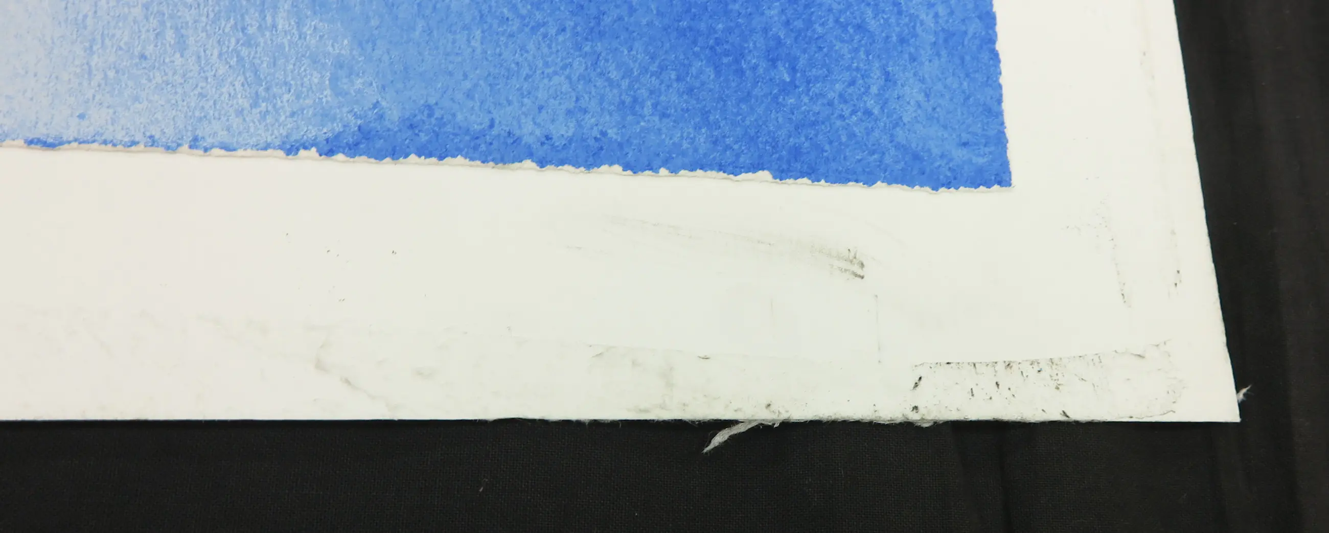 | Op het karton, waarop de voorstelling is bevestigd zitten wat resten van een verwijderd Passe-partout. De compositie zelf is in zeer goede staat. | |||||||||||