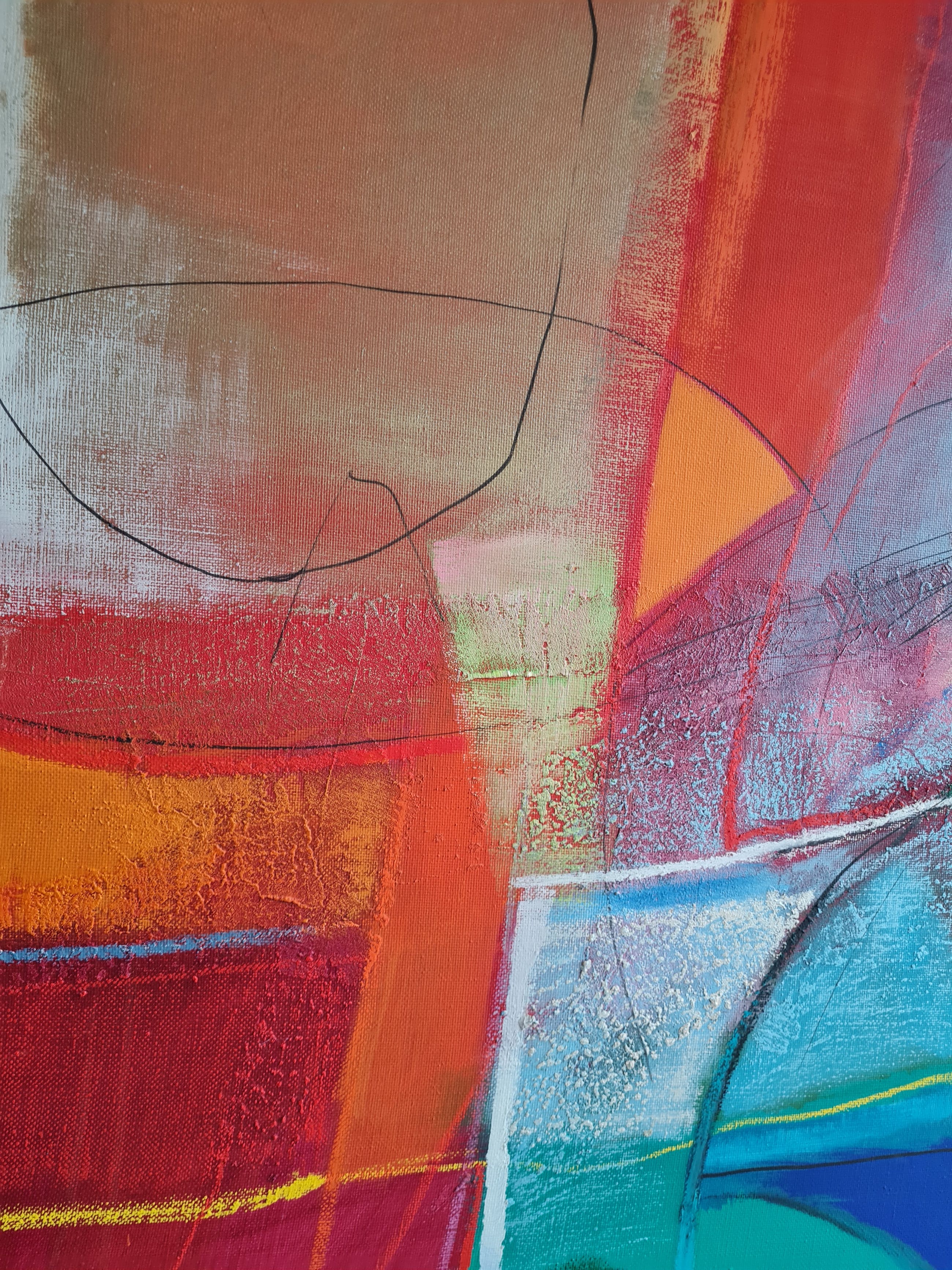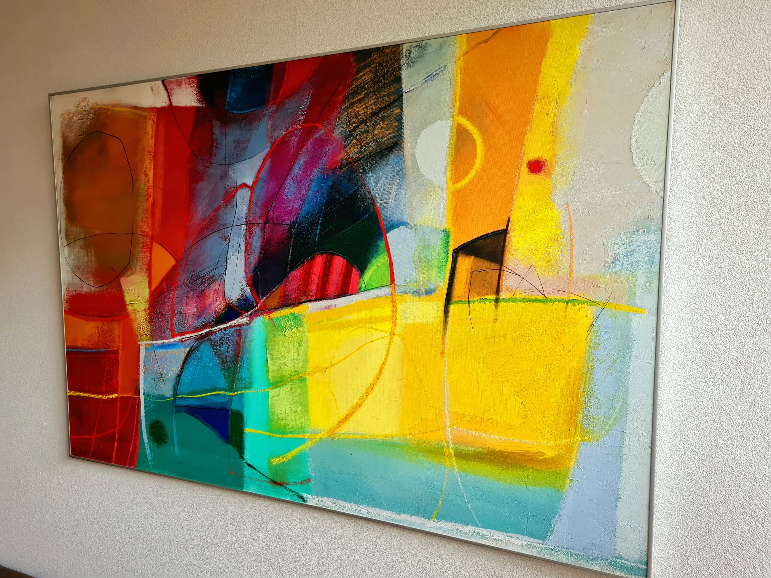 Zij schildert haar abstracten zoals ze zelf zegt ‘ uit het hart ‘,