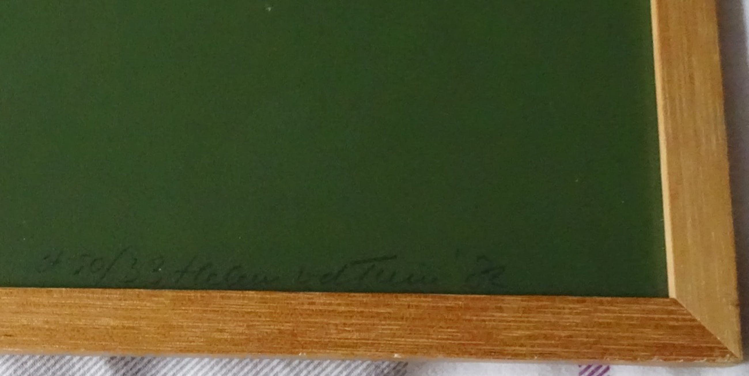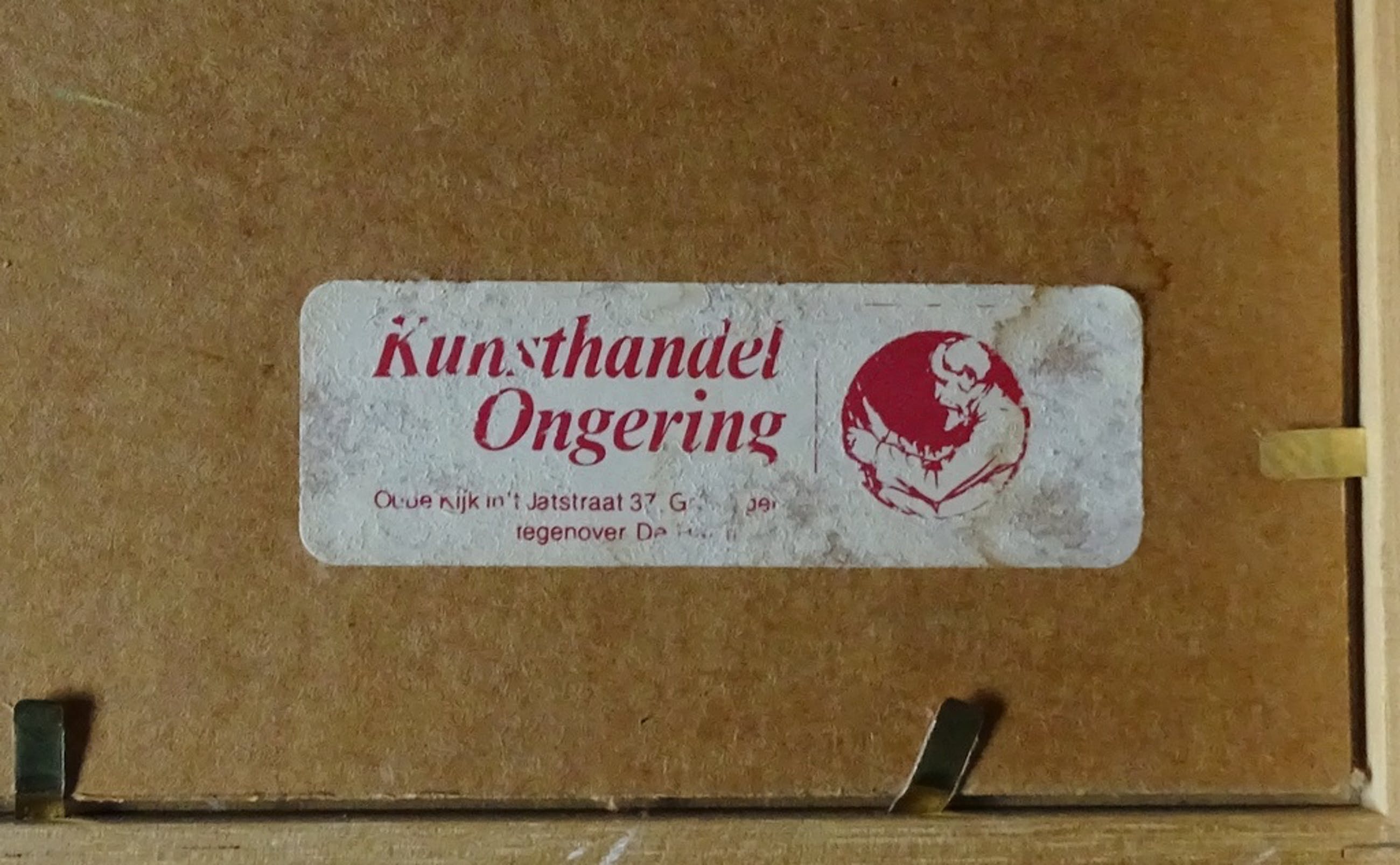 Sfeervolle afbeelding door de Groningse kunstenares Heleen van der Tuin (1945). Achter glas ingelijst in een eenvoudige houten lijst. Rechtsonder met potlood gesigneerd en gedateerd.