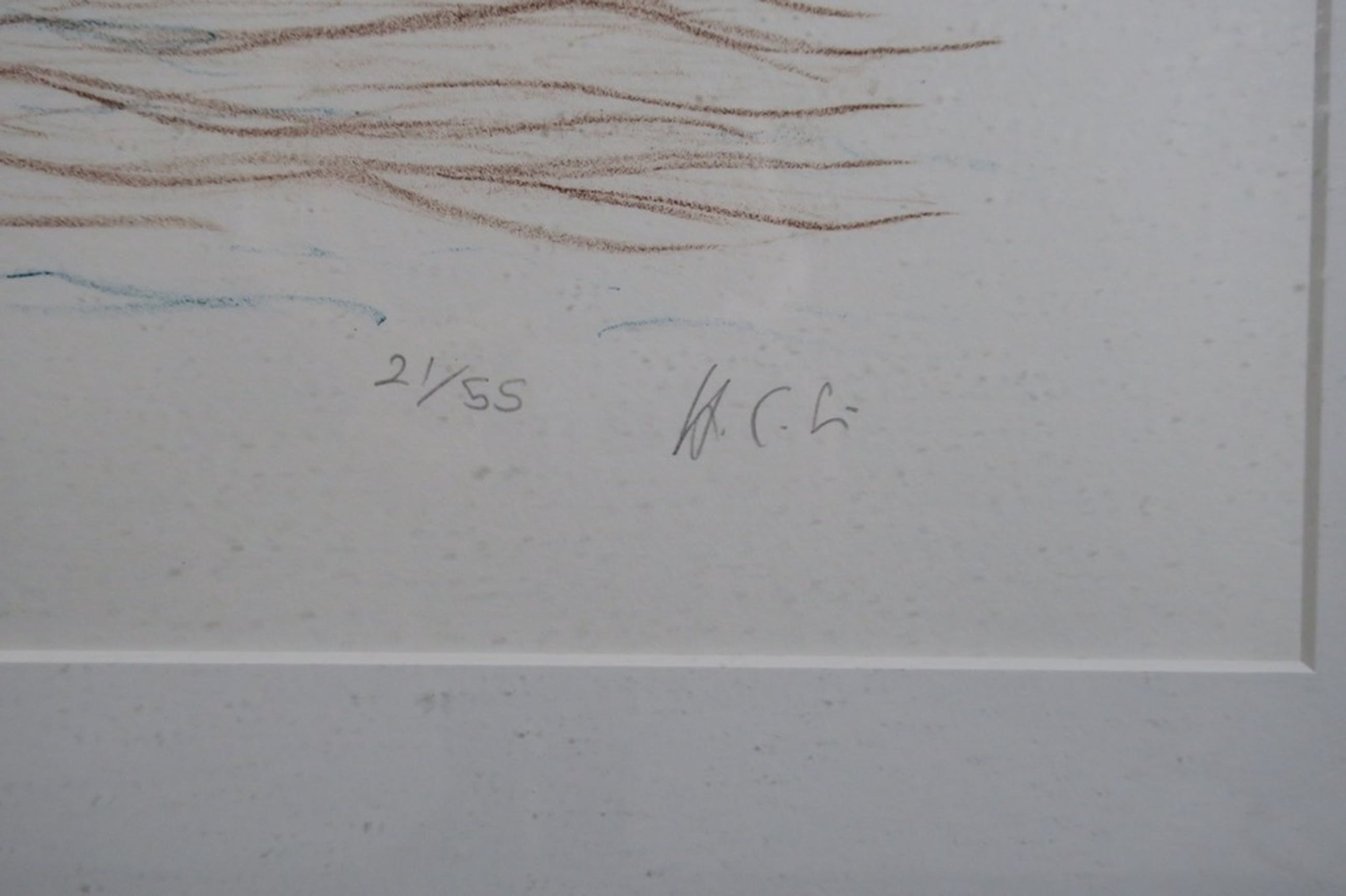Bij foto´s van ingelijste werken kan spiegeling zichtbaar zijn. Het oplagenummer op de foto(s) kan afwijken van het hierboven genoemde correcte oplagenummer.
