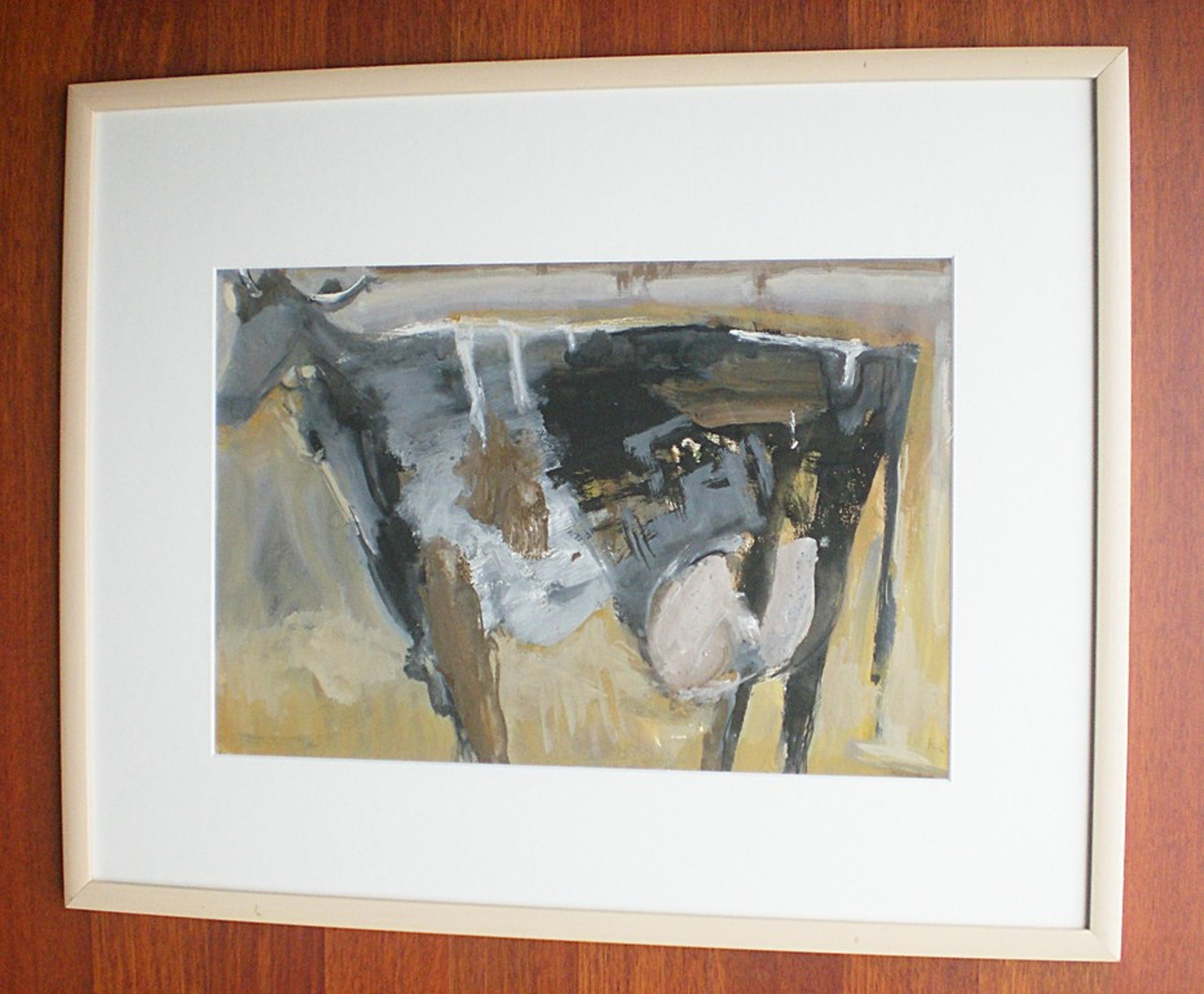 Mooie koe van Helen van Zijl (leerling van door Oskar Kokoschka) in strakke lijst, achter glas en passepartout. Niet gesigneerd en niet gedateerd.