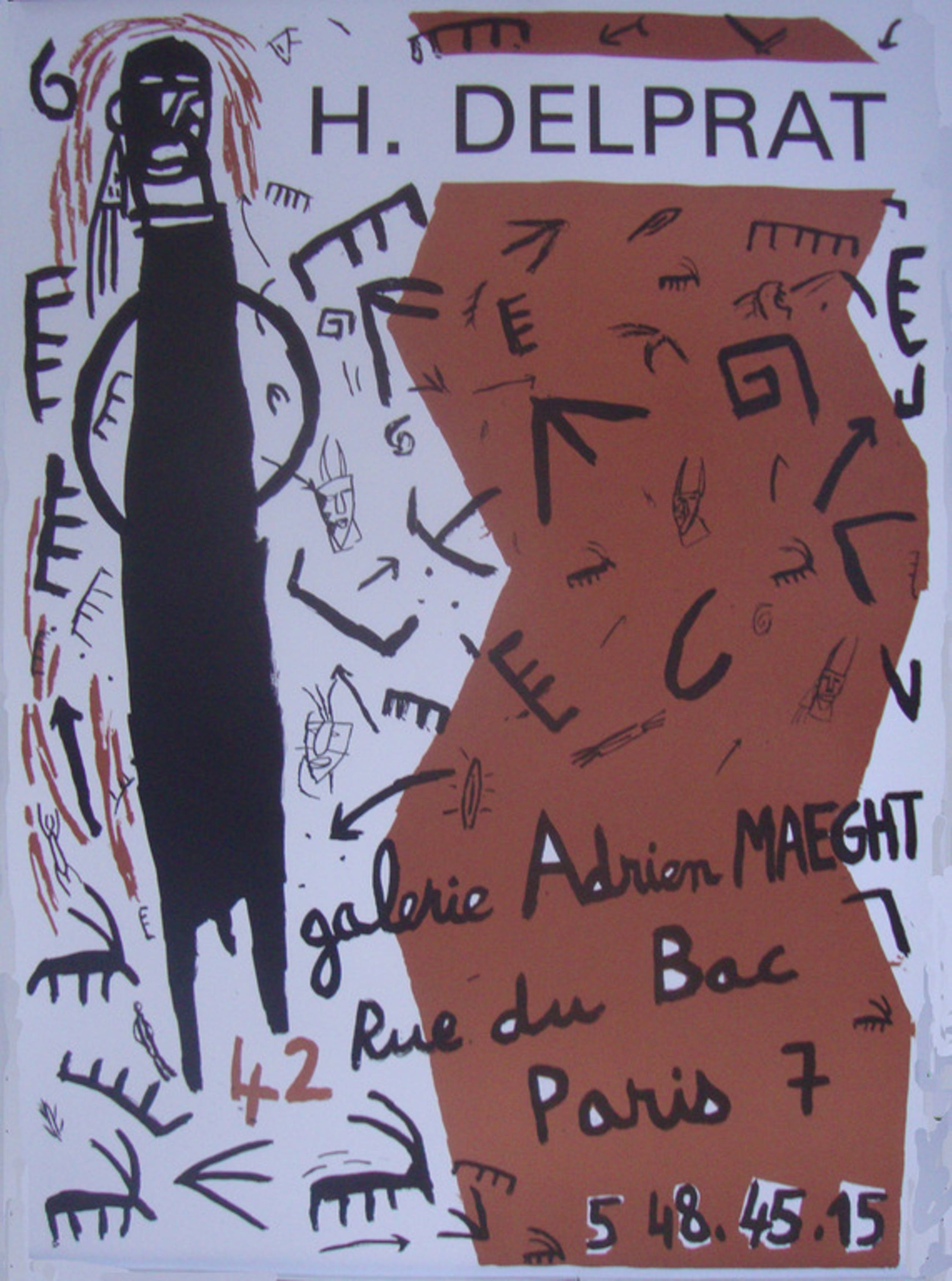 Mooi lithografisch affiche van Helene Delprat, gemaakt voor haar expositie bij galerie Maeght in 1985.