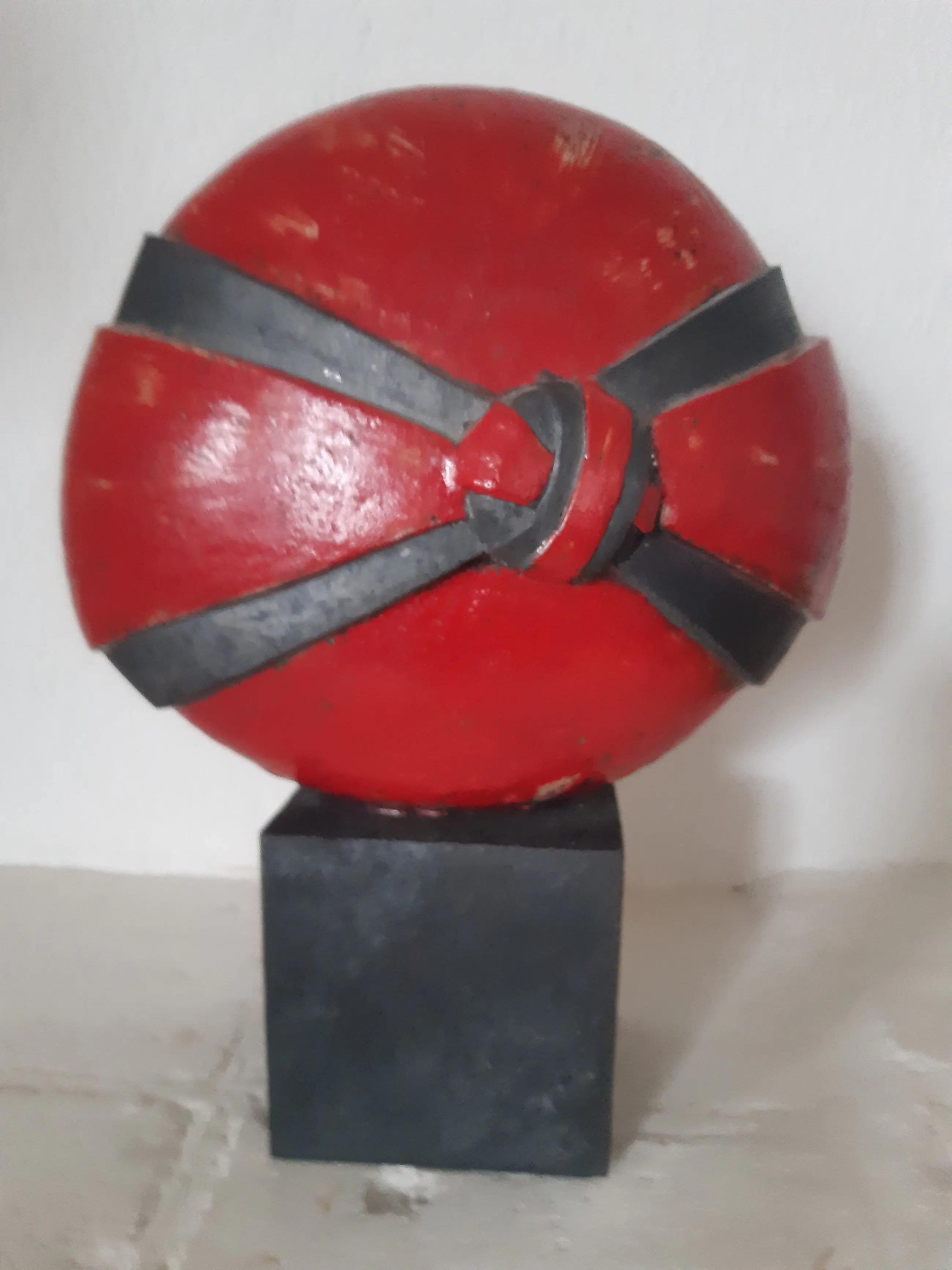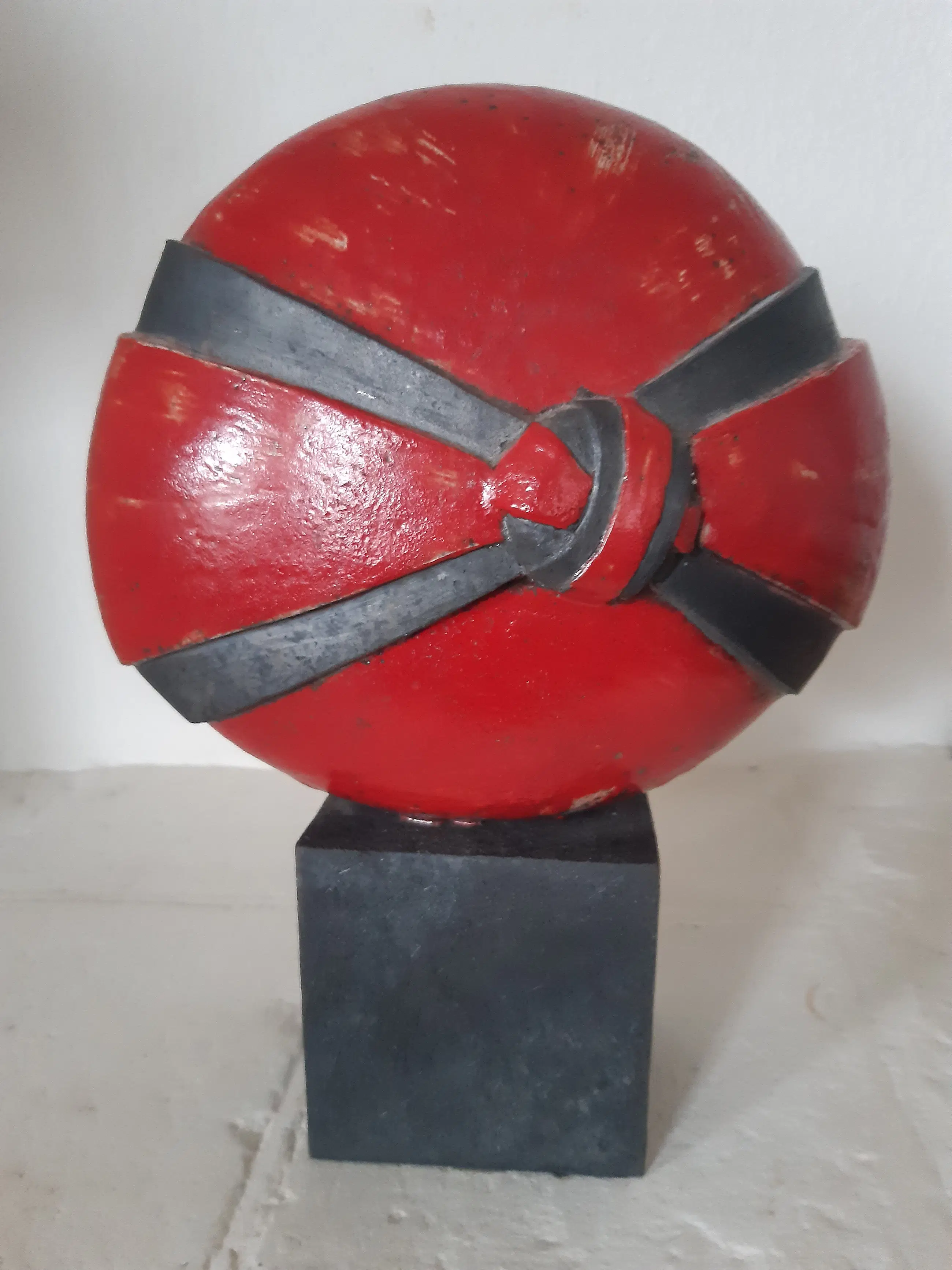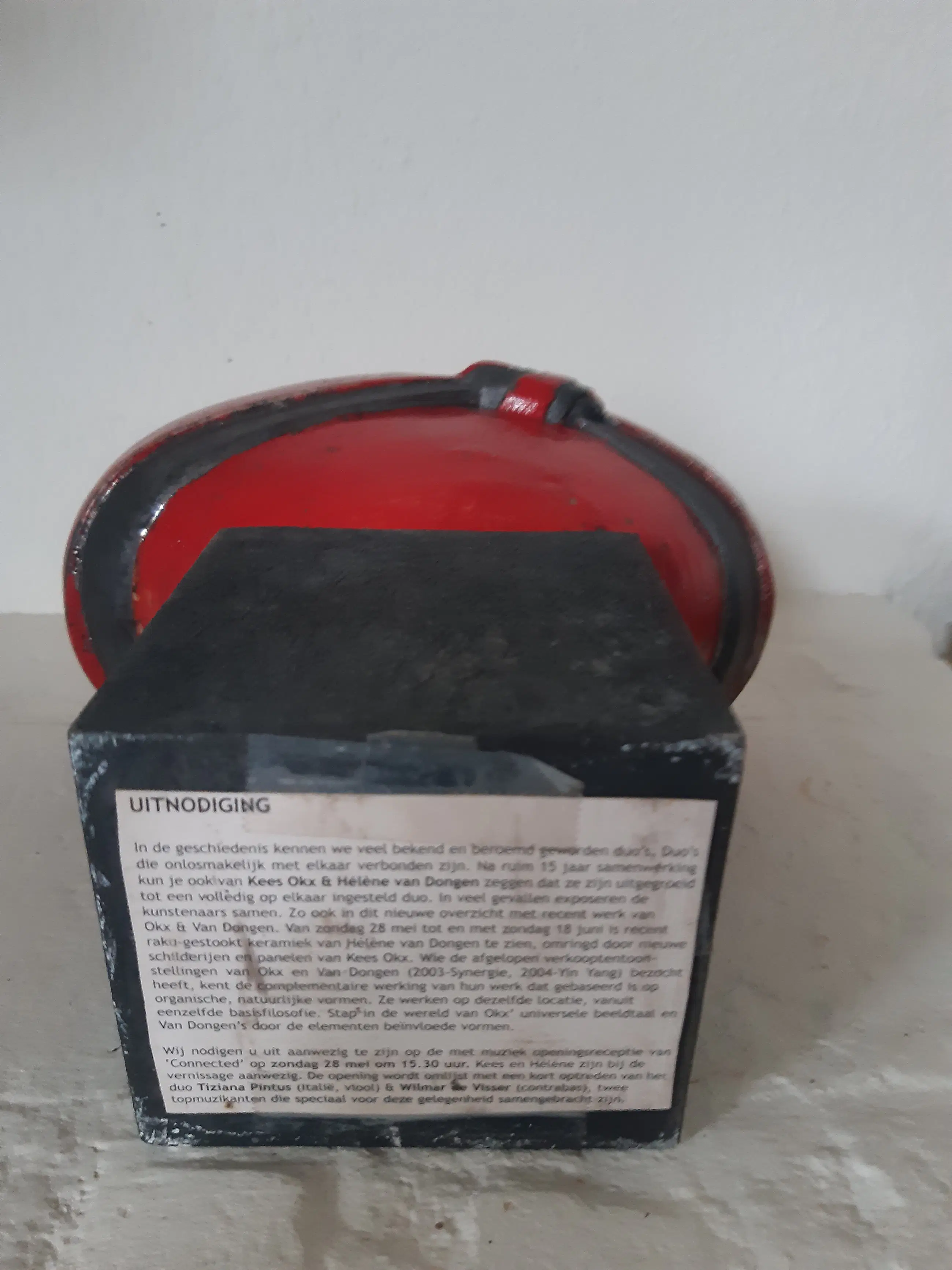 Beeld uit oktober 2006 van Helene van Dongen, getiteld De Knoop, raku met rode glazuur Perfecte staat