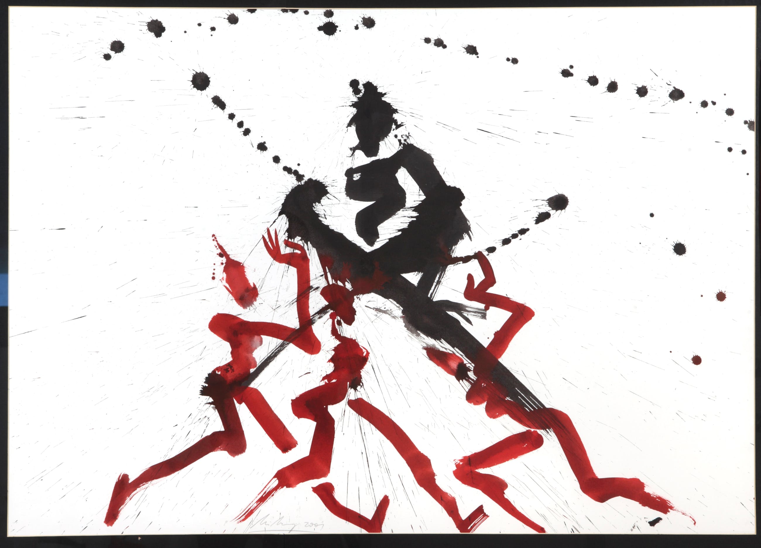 Inkt op papier, gesigneerd, in een zwart gelakte houten lijst. Herkomst: Galerie Michael Schulz, Berlijn