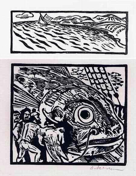 Helmut Ackermann - Freiherr von MÜNCHHAUSEN - 2 OriginalLinolSchnitte des Richard SEEWALD-Schülers 1974 handsigniert - Verkocht
