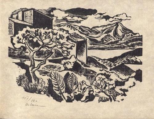 Helmut Ackermann - In der Provence - Linolschnitt - 1974