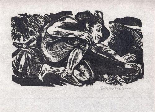 Vom Undank der Welt - zu Abraham a Santa Clara - Linolschnitt - 1969 - Blatt 22 x 29 cm, Bild 14 x 24 cm - signiert - sehr gut erhalten - auf dünnem braunen Karton am oberen Rand aufgezogen - Versand: Deutschland Euro 7,00 – Ausland Vereinbarung