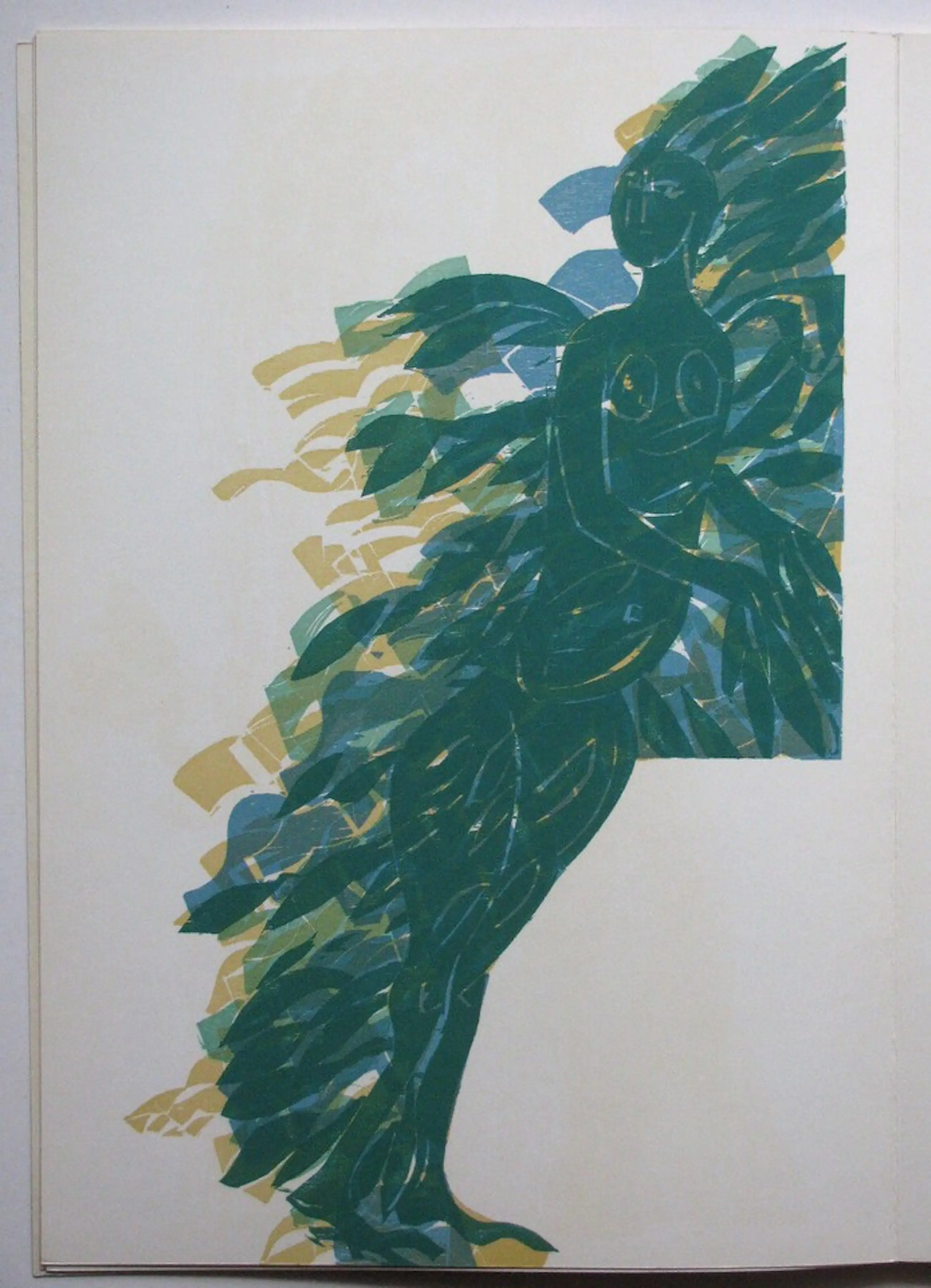 Helmut Andreas Paul Grieshaber - " TARNENGEL " 3 FARBHOLZHOLZSCHNITTE