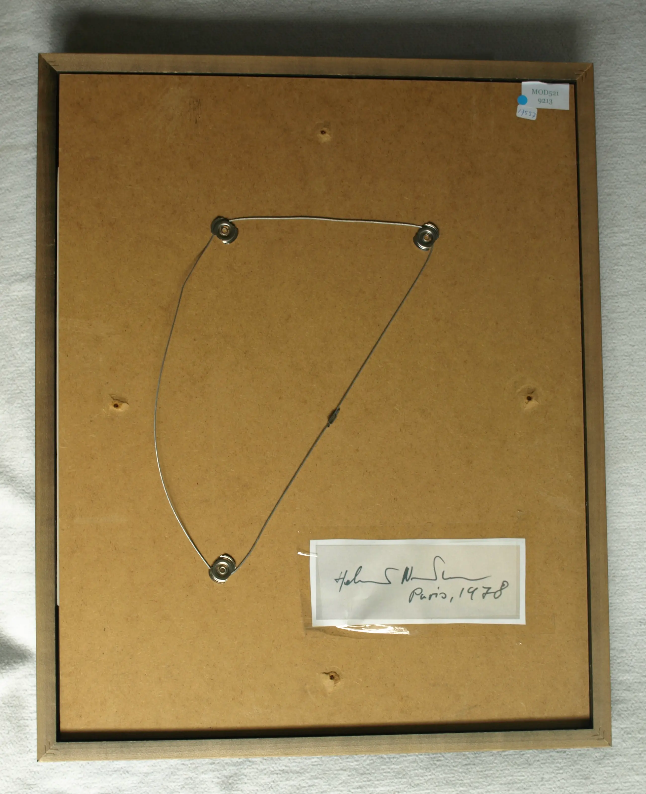 De foto is in goede staat. De kleuren zijn iets vervaagd. De zwarte houten lijst heeft slijtplekken en kleine beschadigingen met verfverlies. Zie ook de foto’s voor een eigen indruk. Kan zo aan de muur.