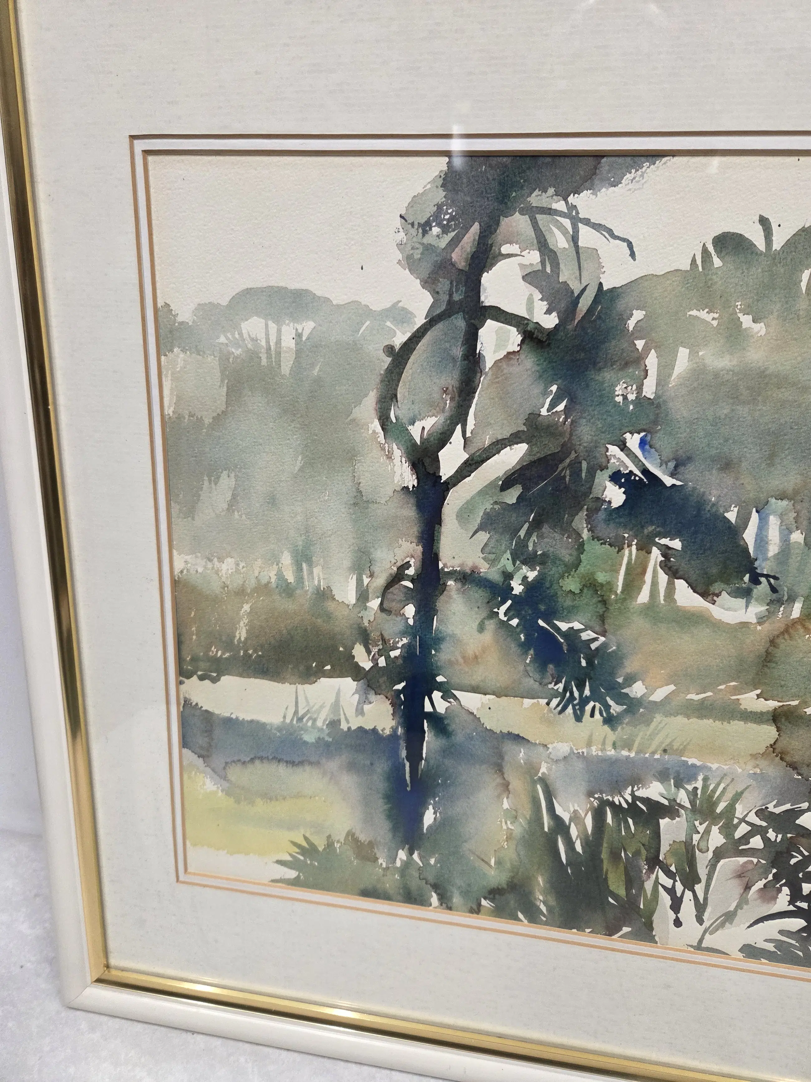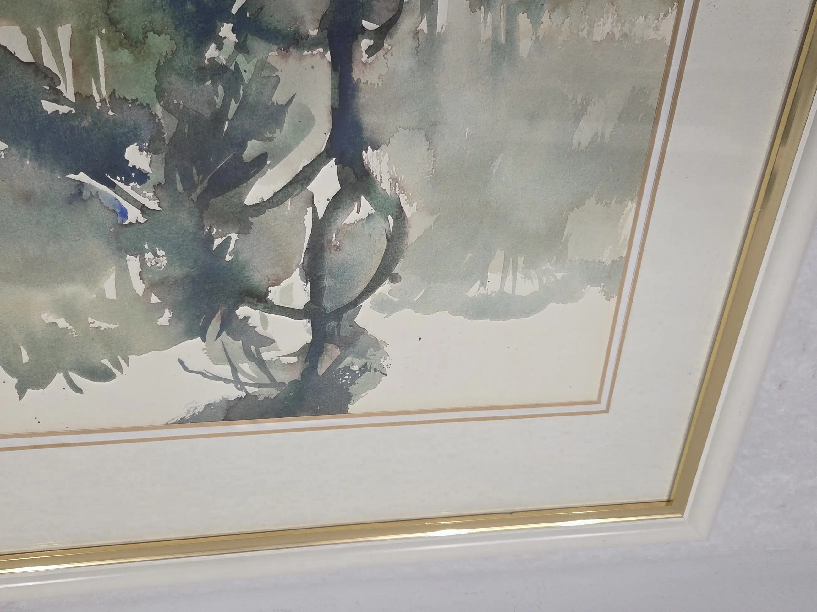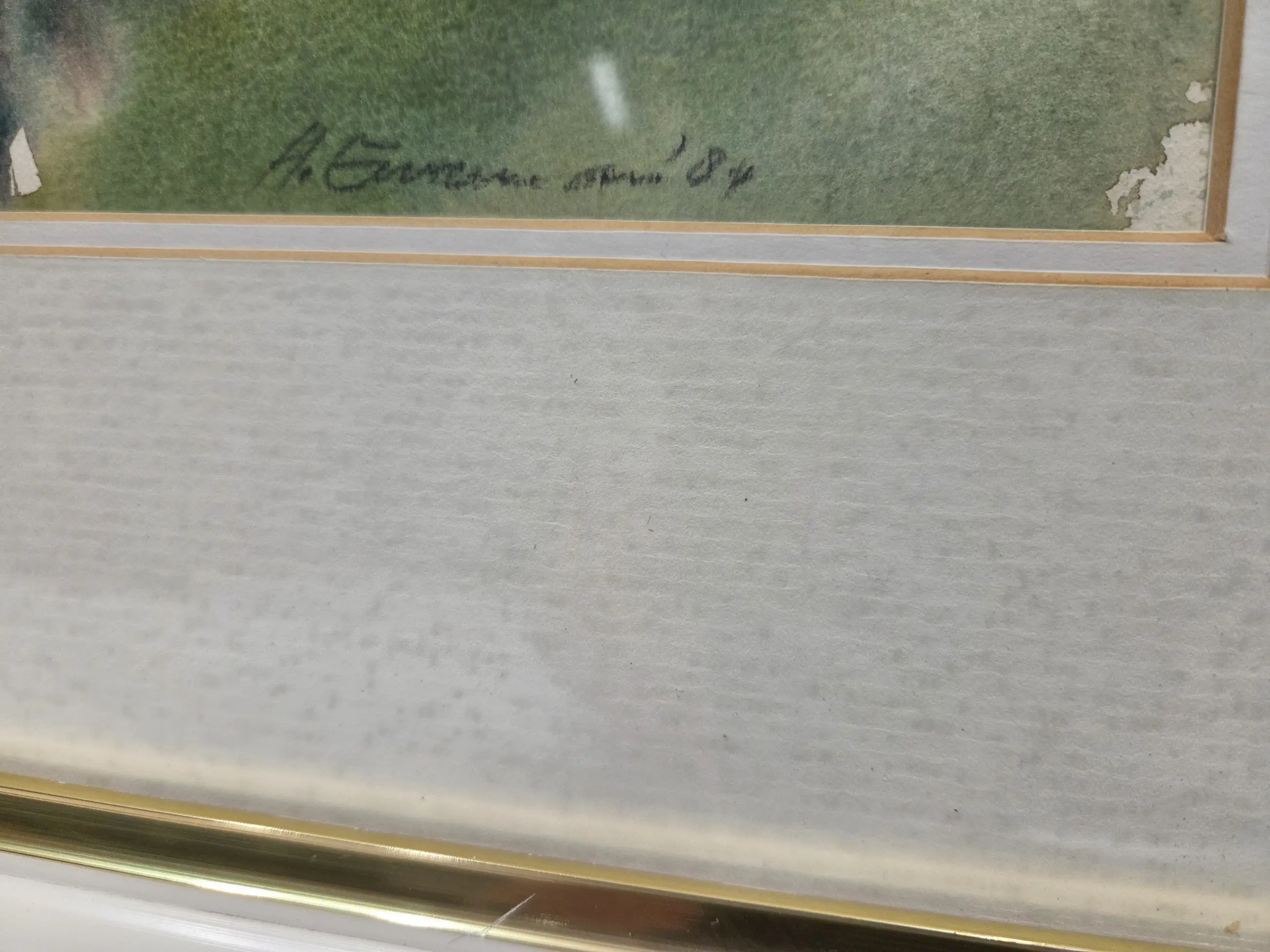Ingelijst achter glas in een passe-partout