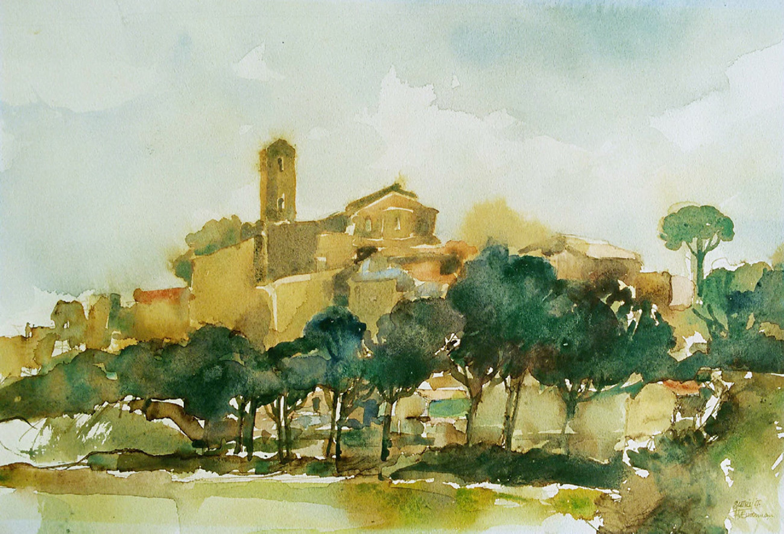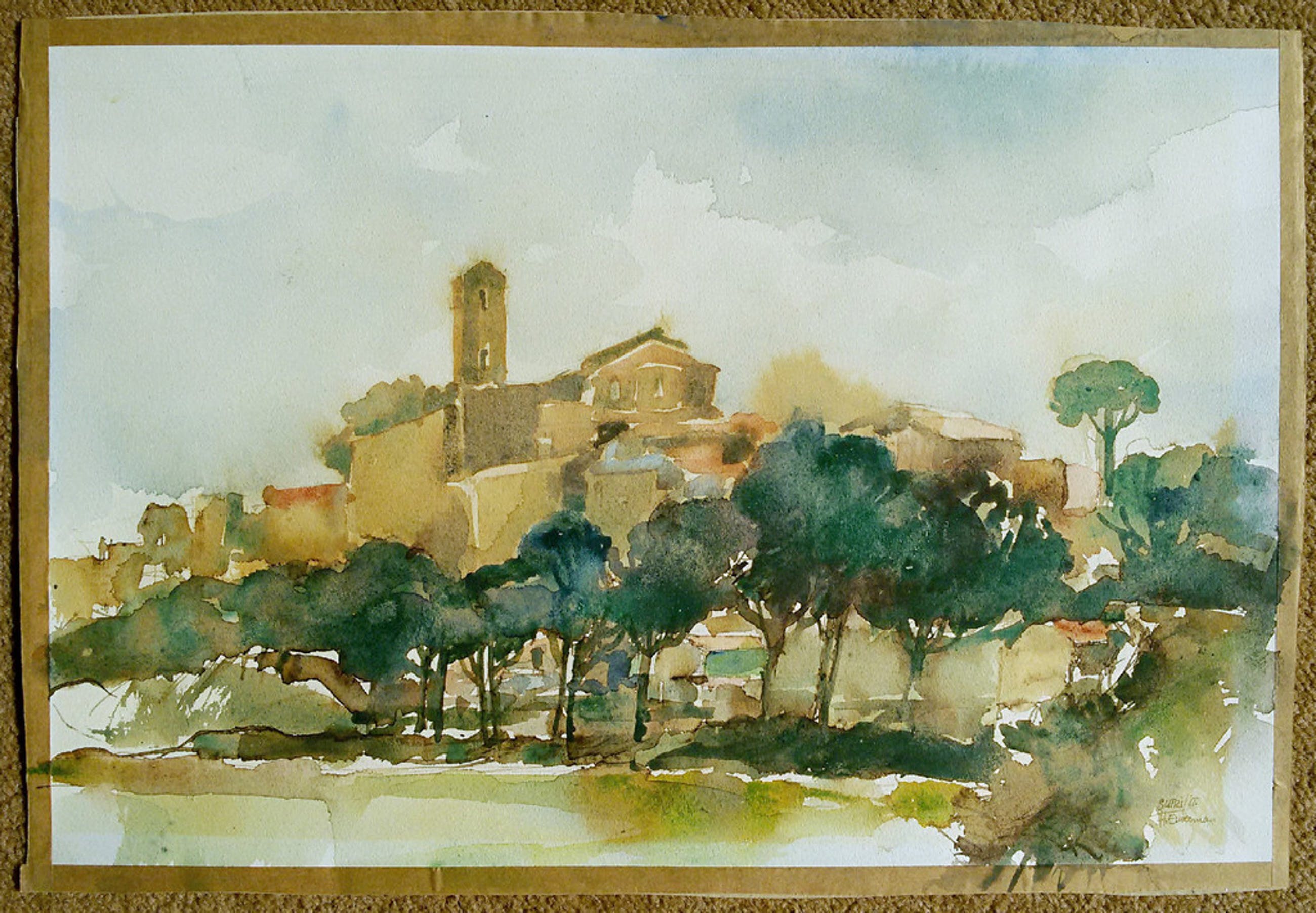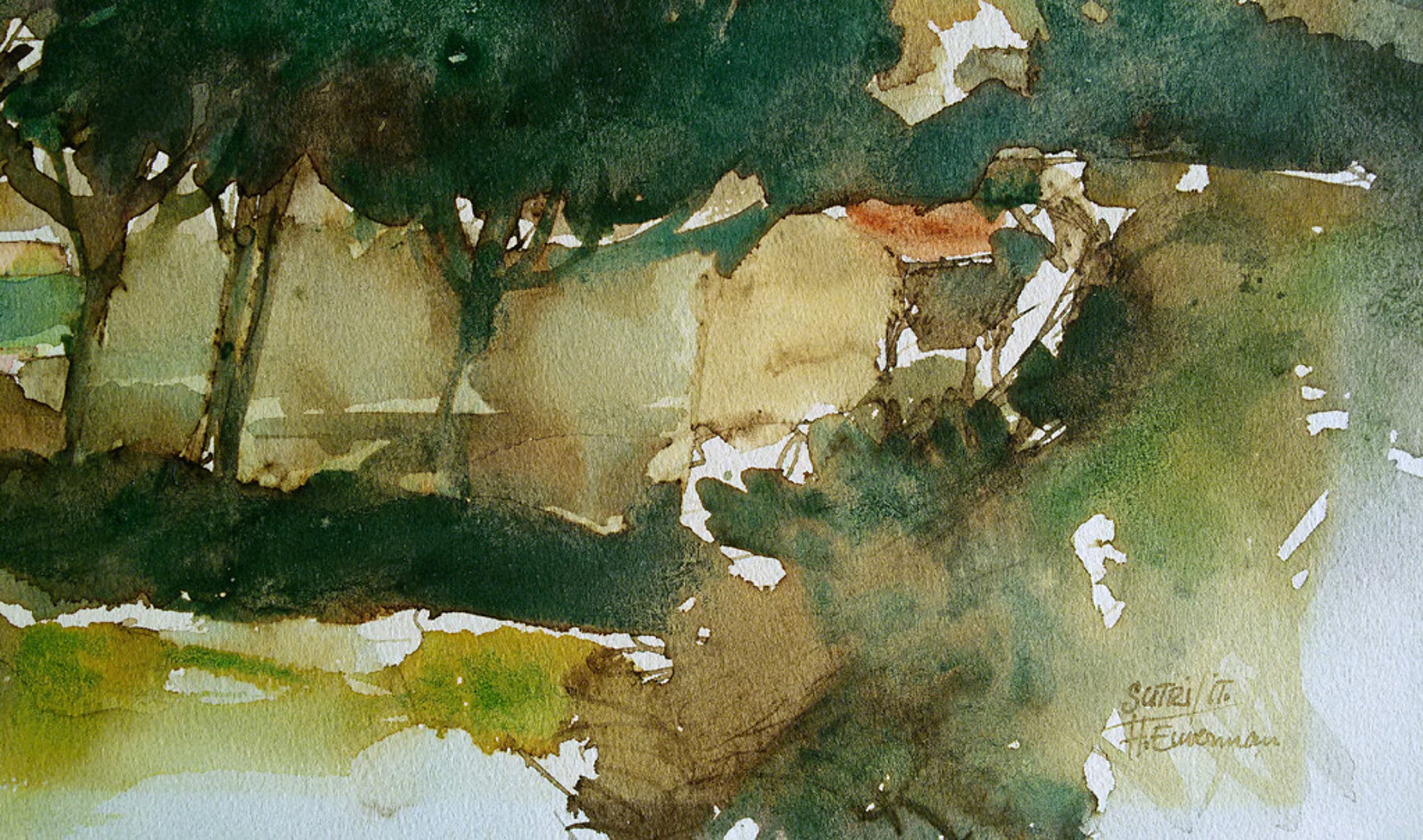 Prachtige aquarel van Hen Euverman. Gesigneerd en getiteld rechtsonder. Afkomstig uit de kunstcollectie van ABNAMRO, in goede conditie. Blad heeft ingelijst gezeten want er zitten tape-resten langs de randen en het blad is wat verkleurd binnen het voormalige passe-partout. Goed ingelijst met passe-partout een bijna perfect werk.