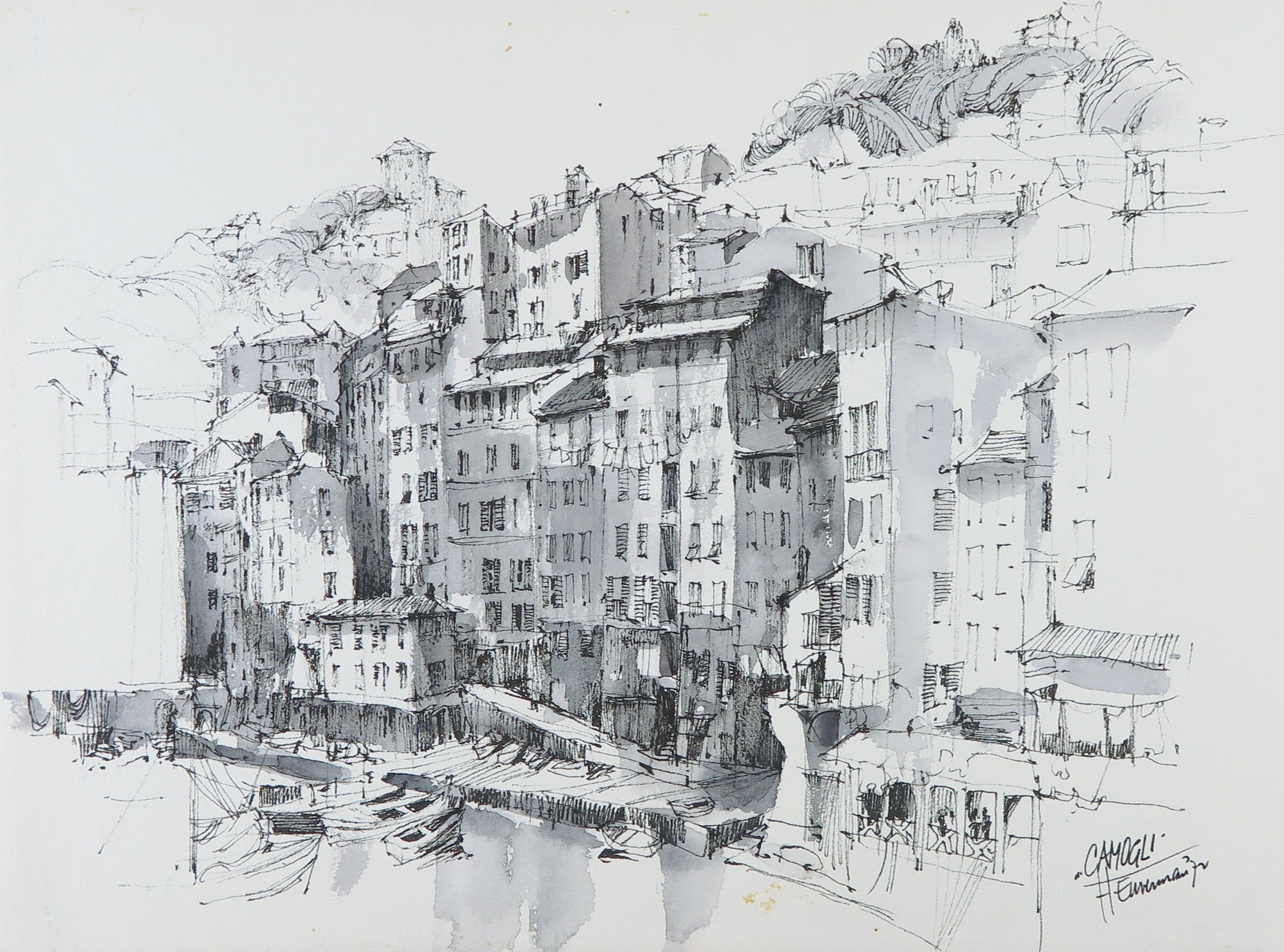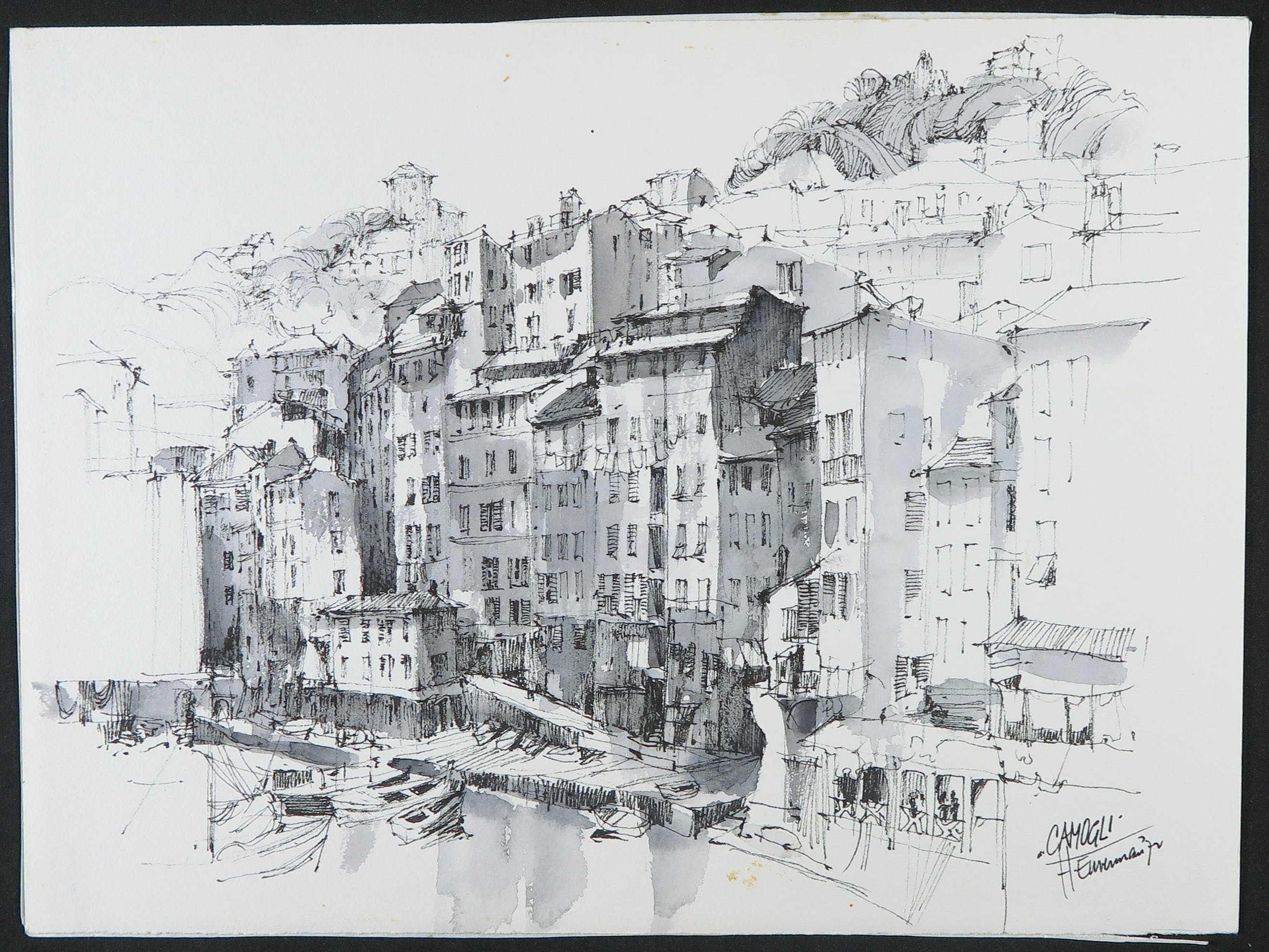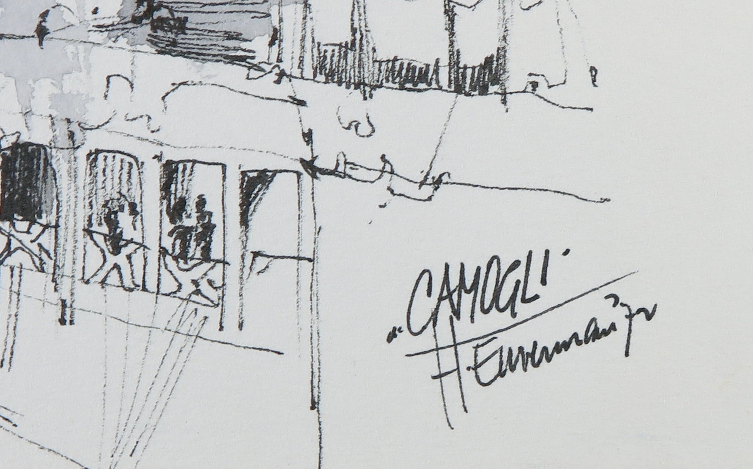 | Goede conditie. Paar gelige vlekjes langs de randen van de tekening. Op de achterzijde tape-resten die aan de voorkant zichtbaar uitsteken. | |||||||||||