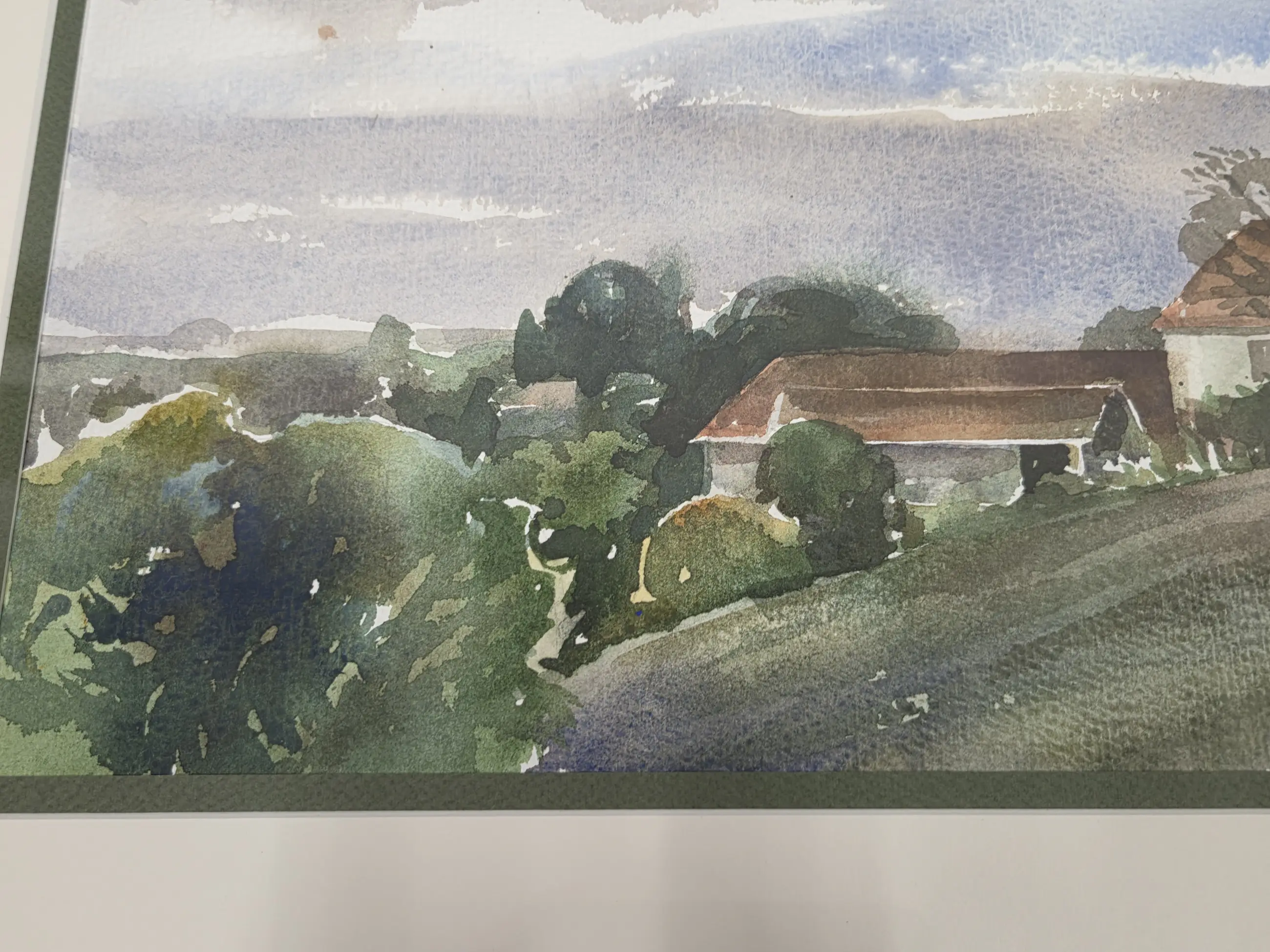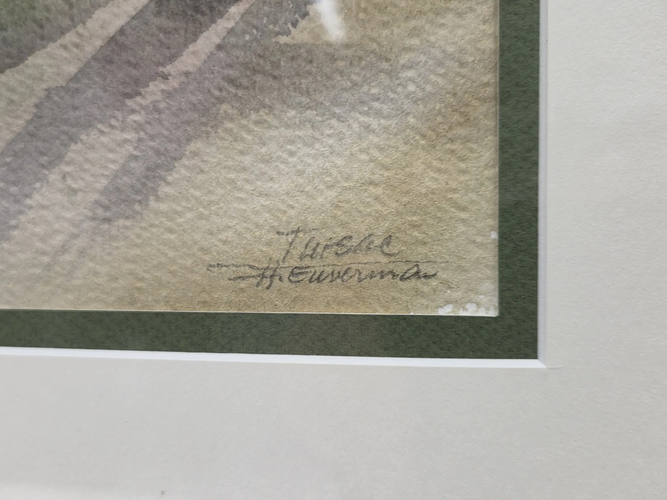 Ingelijst achter glas in een passe-partout