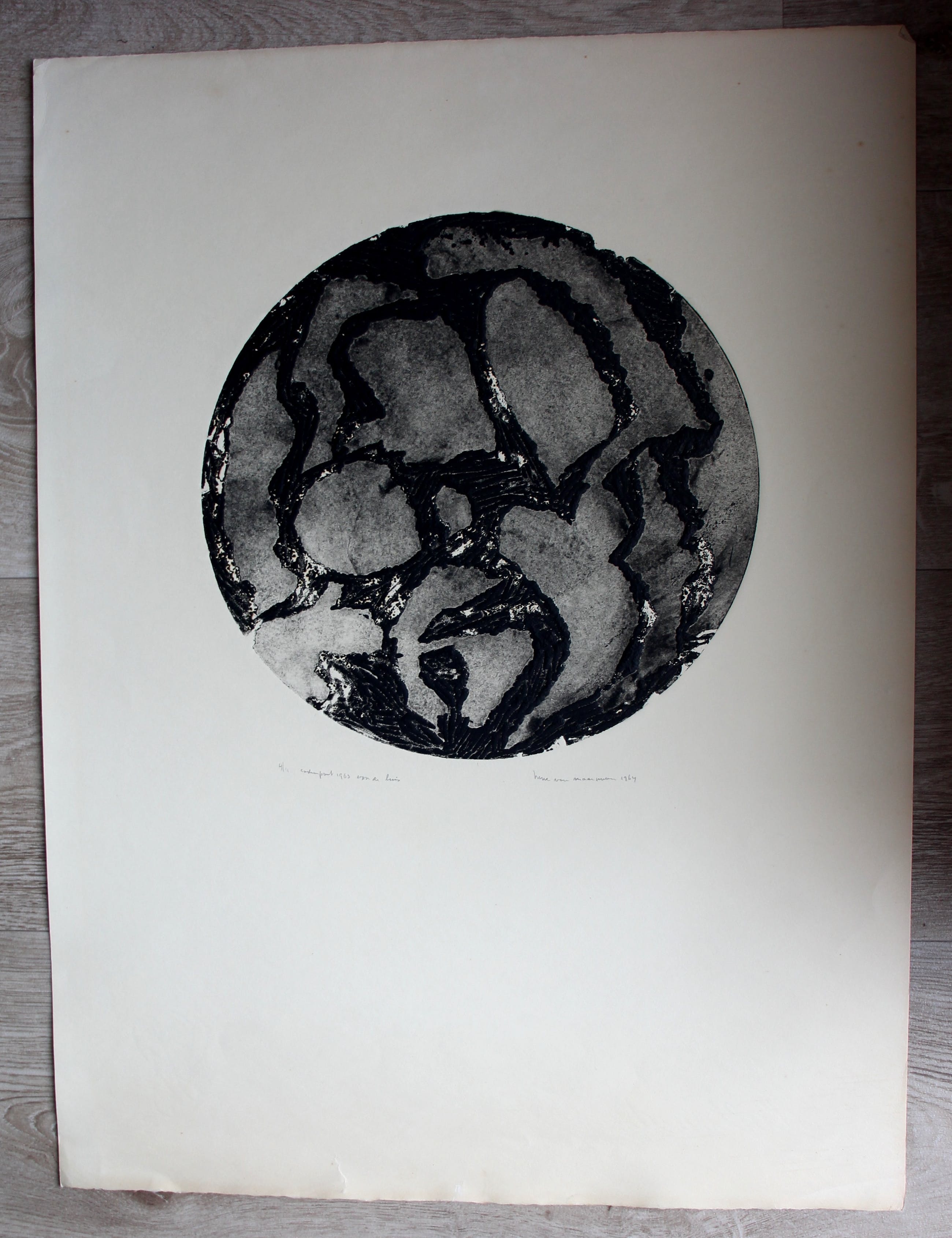 Ets van Henc van Maarseveen. Titel: Cadeauprent 1963 voor de Luis. Nummer: 4/11. Afmetingen blad: h76 x b54 cm. Afmetingen voorstelling: H49 x b39 cm. De ets is rechtsonder, met potlood, gesigneerd door de kunstenaar. De authenticiteit van dit werk wordt volledig gegarandeerd. Een certificaat van echtheid kan, op aanvraag, worden gemaild.