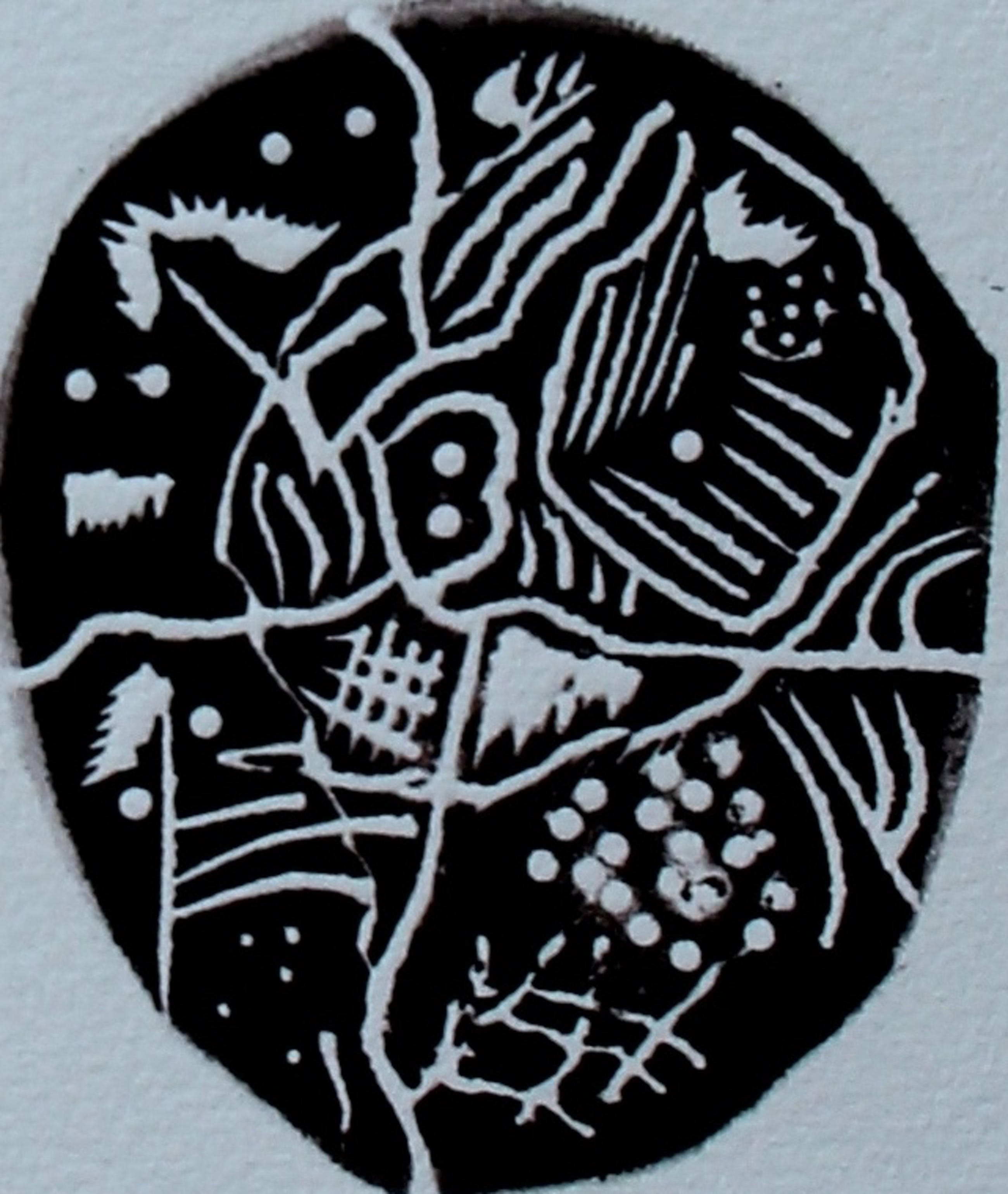 Linoleumsnede van Henk van Maarseveen uit 1965. Afmetingen blad: H20 x b20cm. Afmetingen voorstellingen: H8 x b7 cm. Het werk is rechts onderaan gesigneerd door de kunstenaar. De authenticiteit van dit werk wordt volledig gegarandeerd. Een certificaat van echtheid kan, op verzoek, worden gemaild.