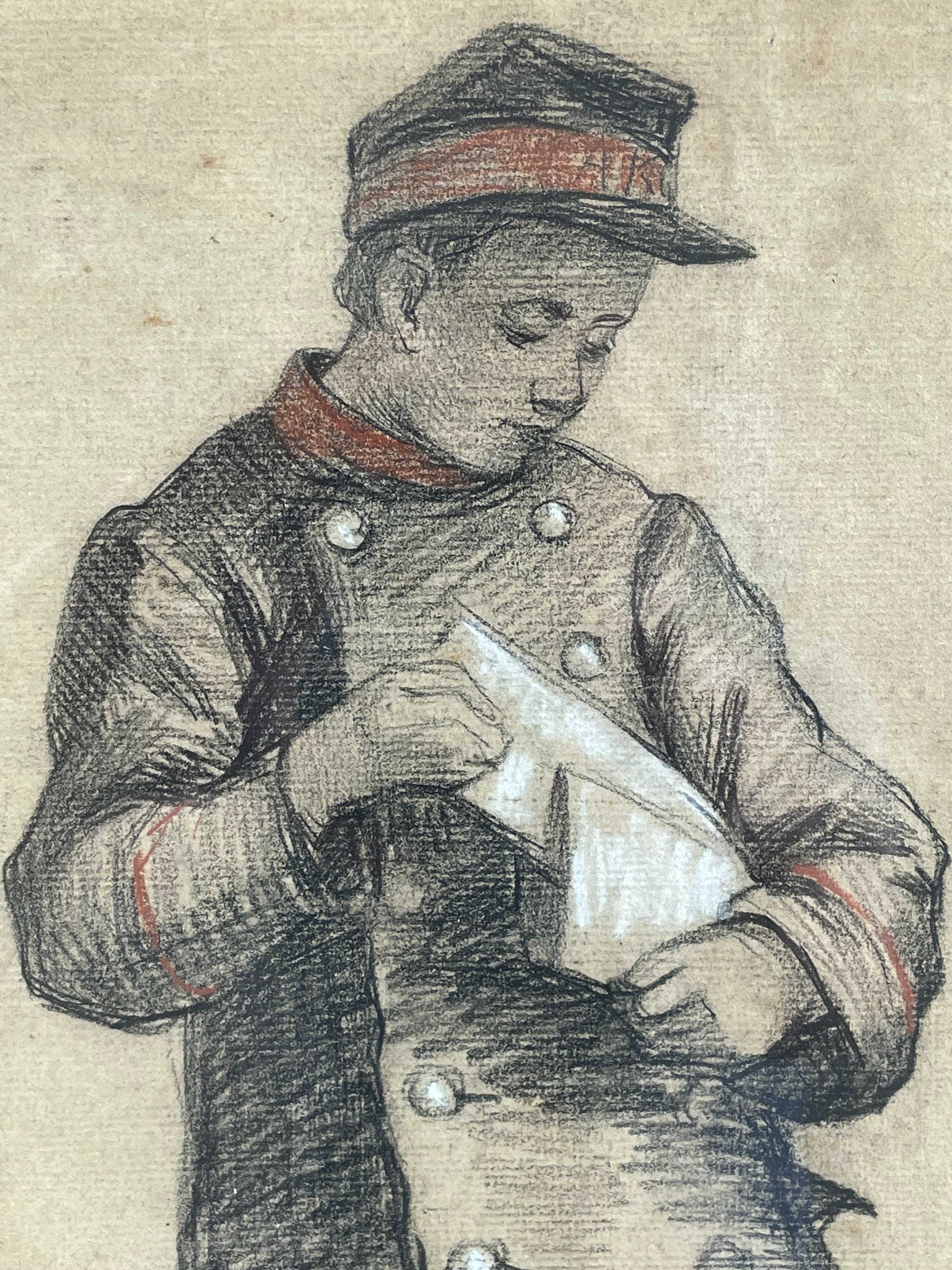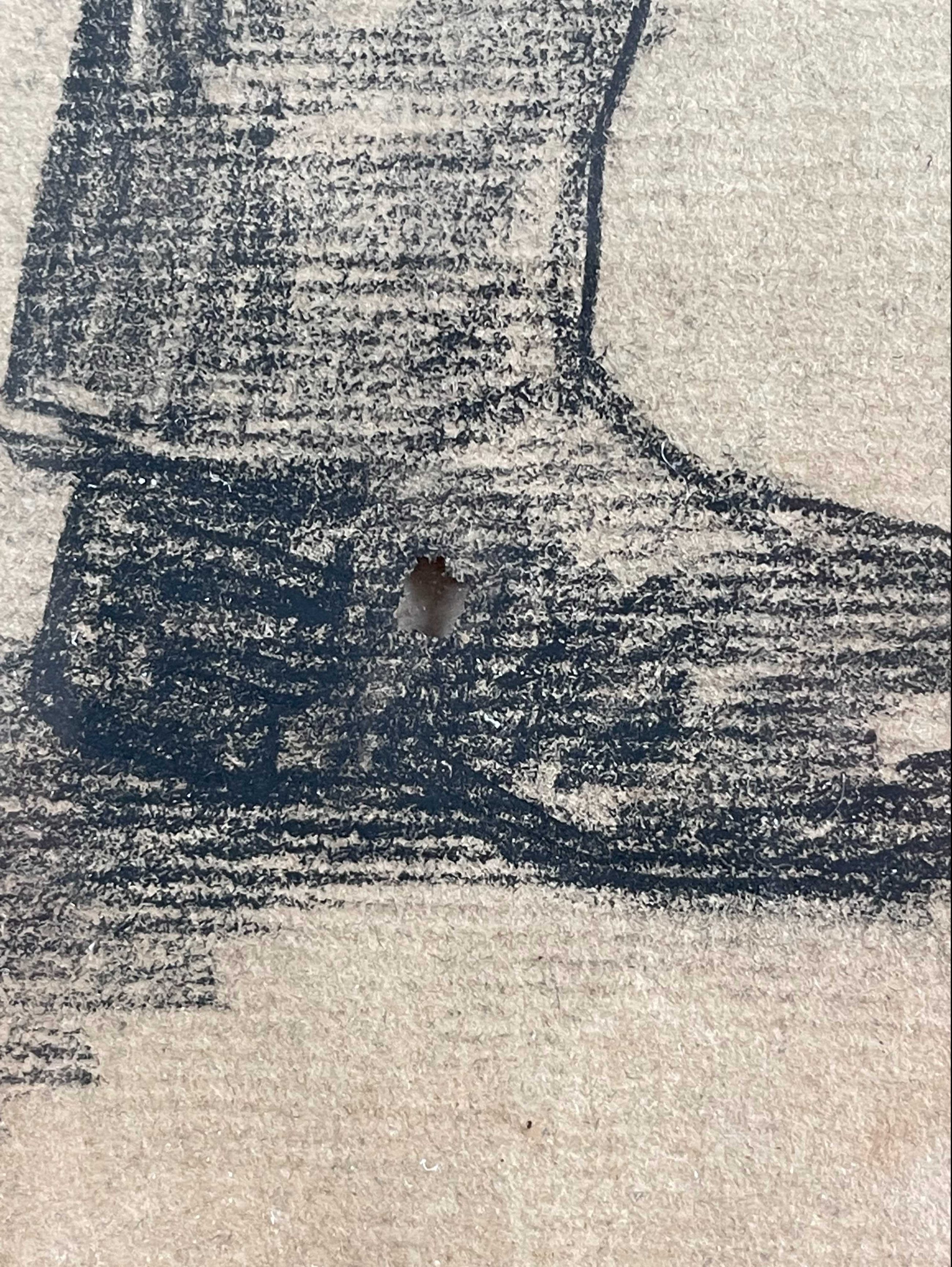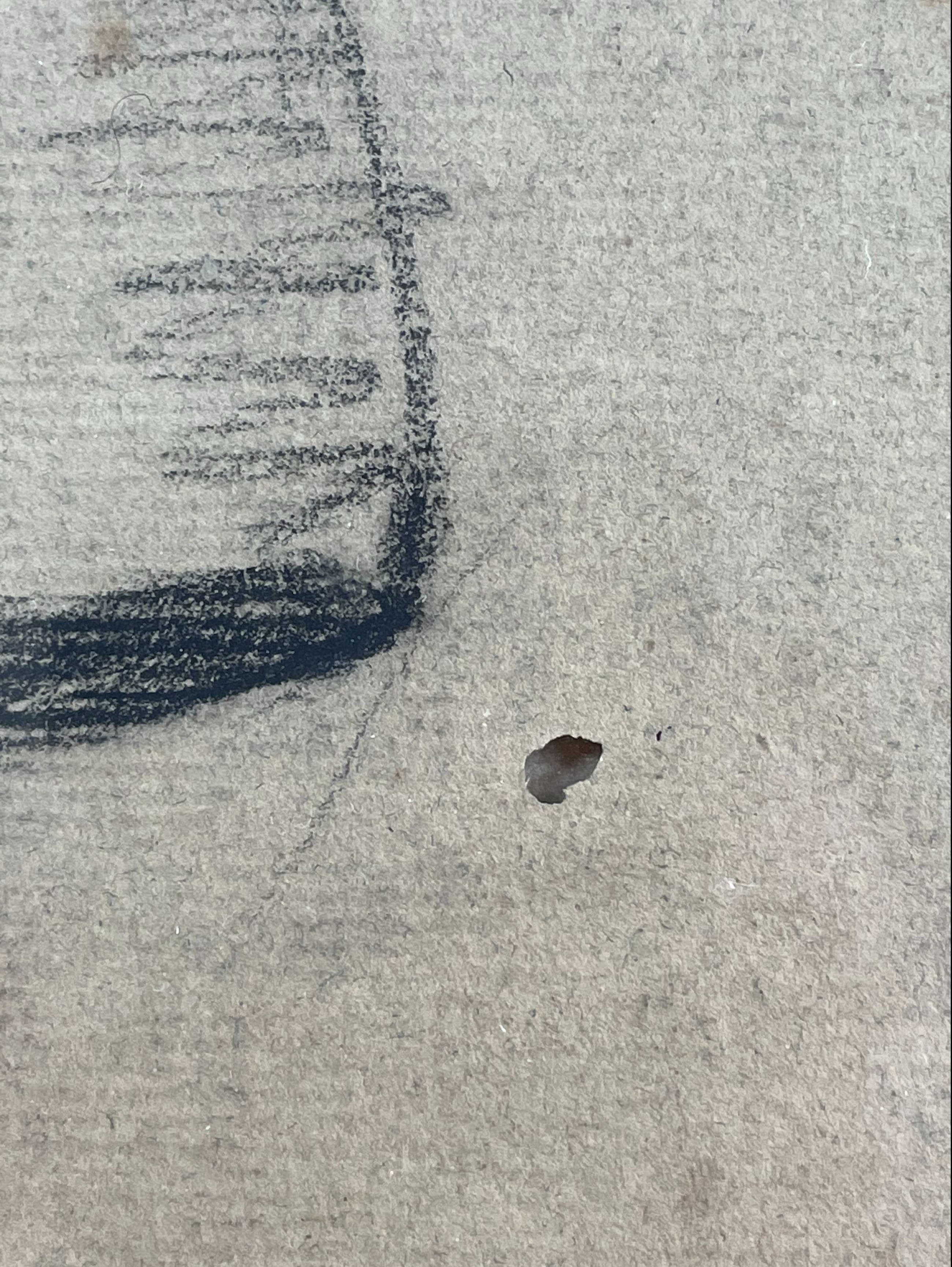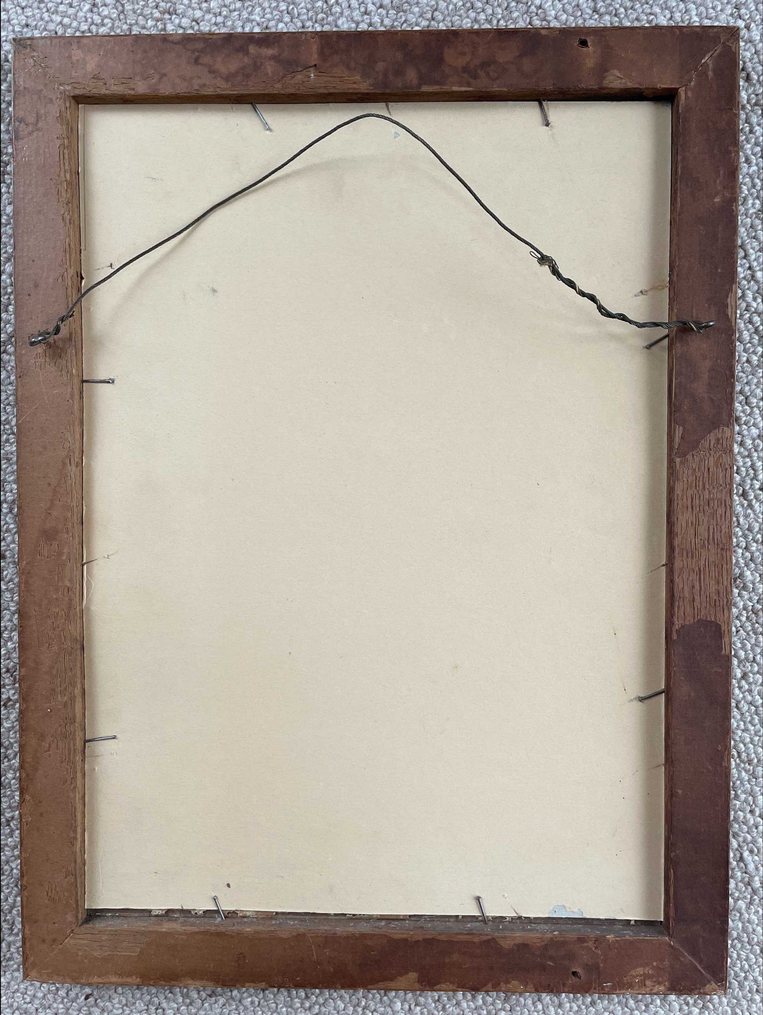 Het jaartal van de tekening is onbekend. Het werk is uitgevoerd in zwart, wit en terracotta kleur. Het werkje is eenvoudig maar heeft een fijne uitstraling en is gevat is een passende, originele, houten lijst. Handgesigneerd.