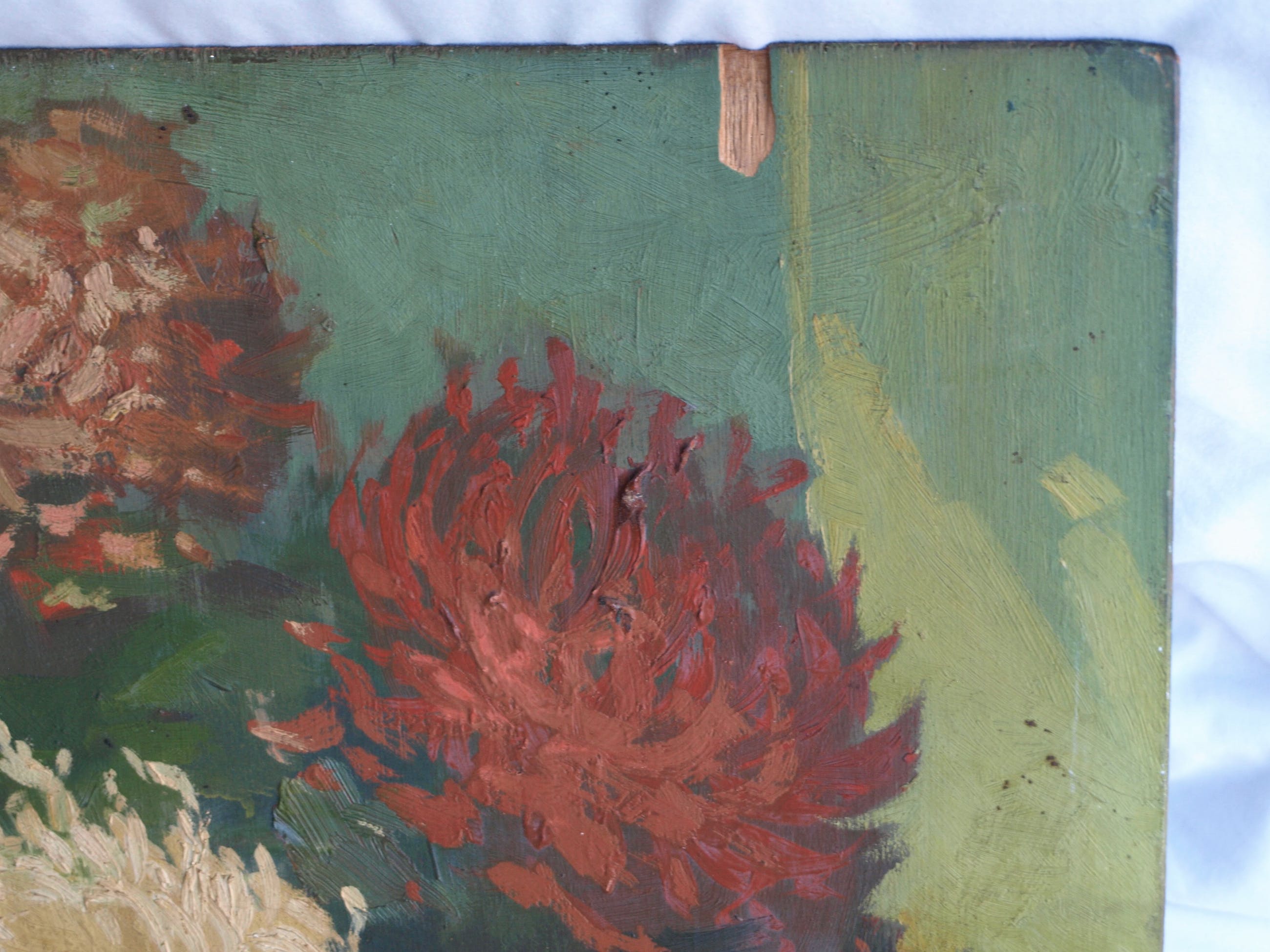 -Olieverf op een houten paneel.
