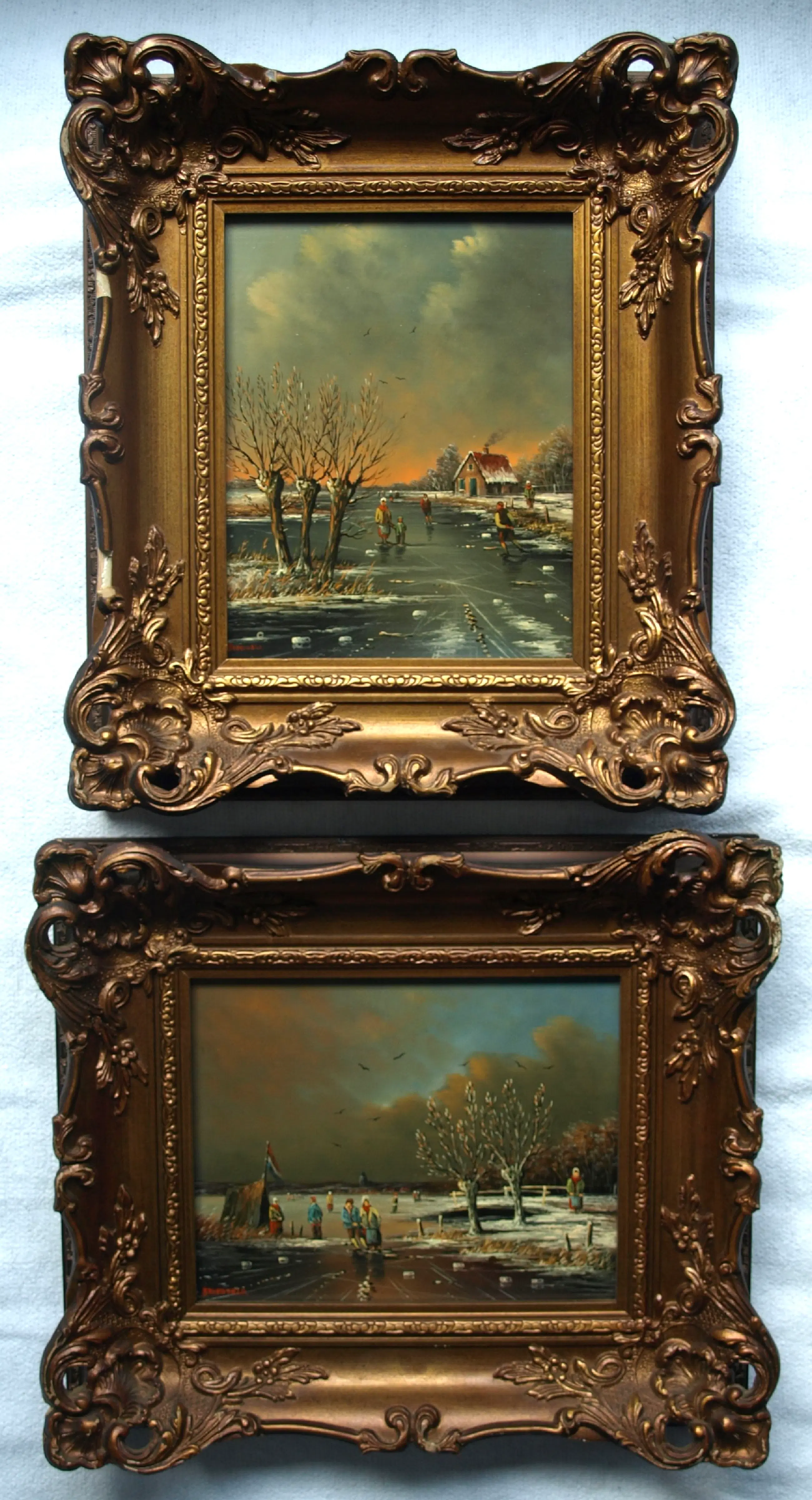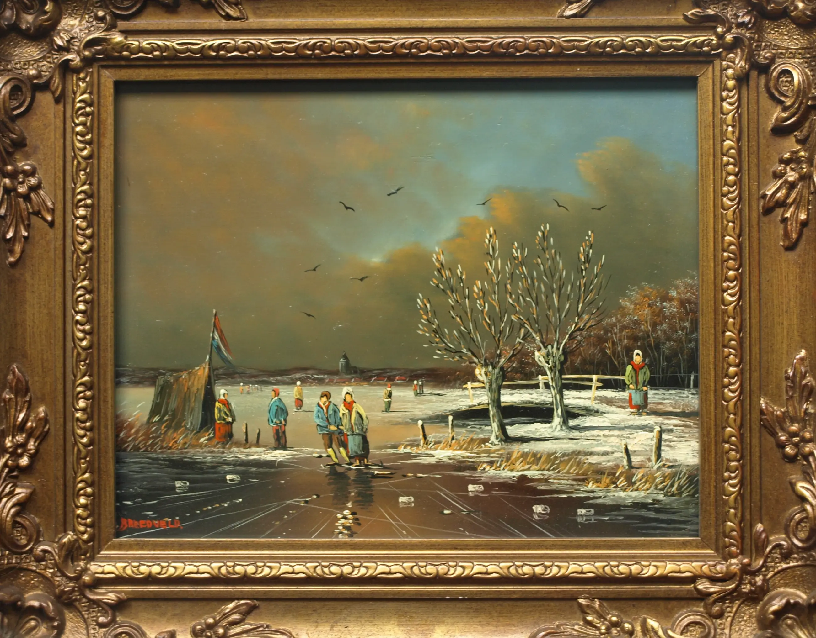 2 Ingelijste schilderijen van de Nederlandse kunstenaar Hendrik Breedveld (1918-1999). -Techniek: Olieverf op paneel, ingelijst in een houten lijst met sierrand. -Beide schilderijen zijn gesigneerd linksonder. -Jaartal onbekend. -Afmetingen per schilderij: Lijst, 39 x 34 x 5 cm. Paneel, 25 x 20 cm. Beeld, 23½ x 18½ cm. -Conditie: In goede staat met wat slijtplekjes. De houten lijsten hebben slijtplekken en beschadigingen aan de sierrand. Zie ook de foto’s voor een eigen indruk.