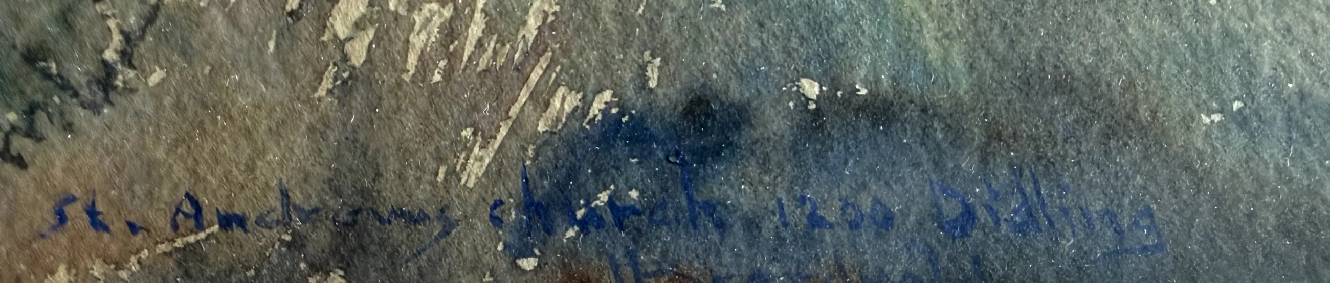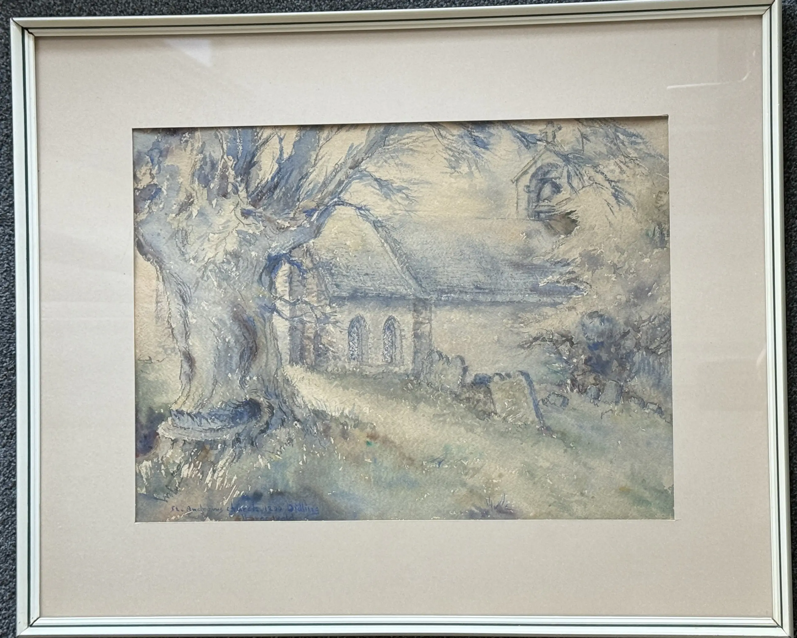 Leuk aquarel van Hendrik Breedveld van de St. Andrews Church 1200 Didling.