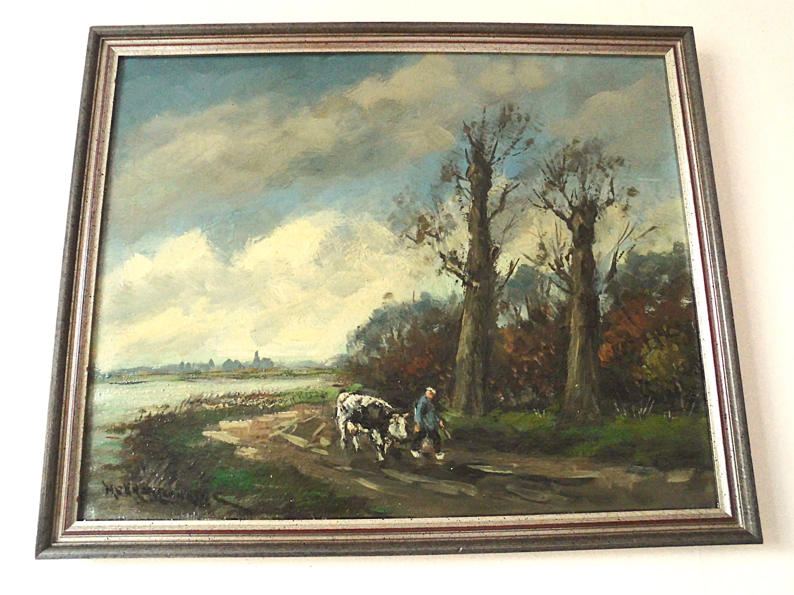 H.C. Kranenburg [1917-1997] "Boer met koe op landweg"