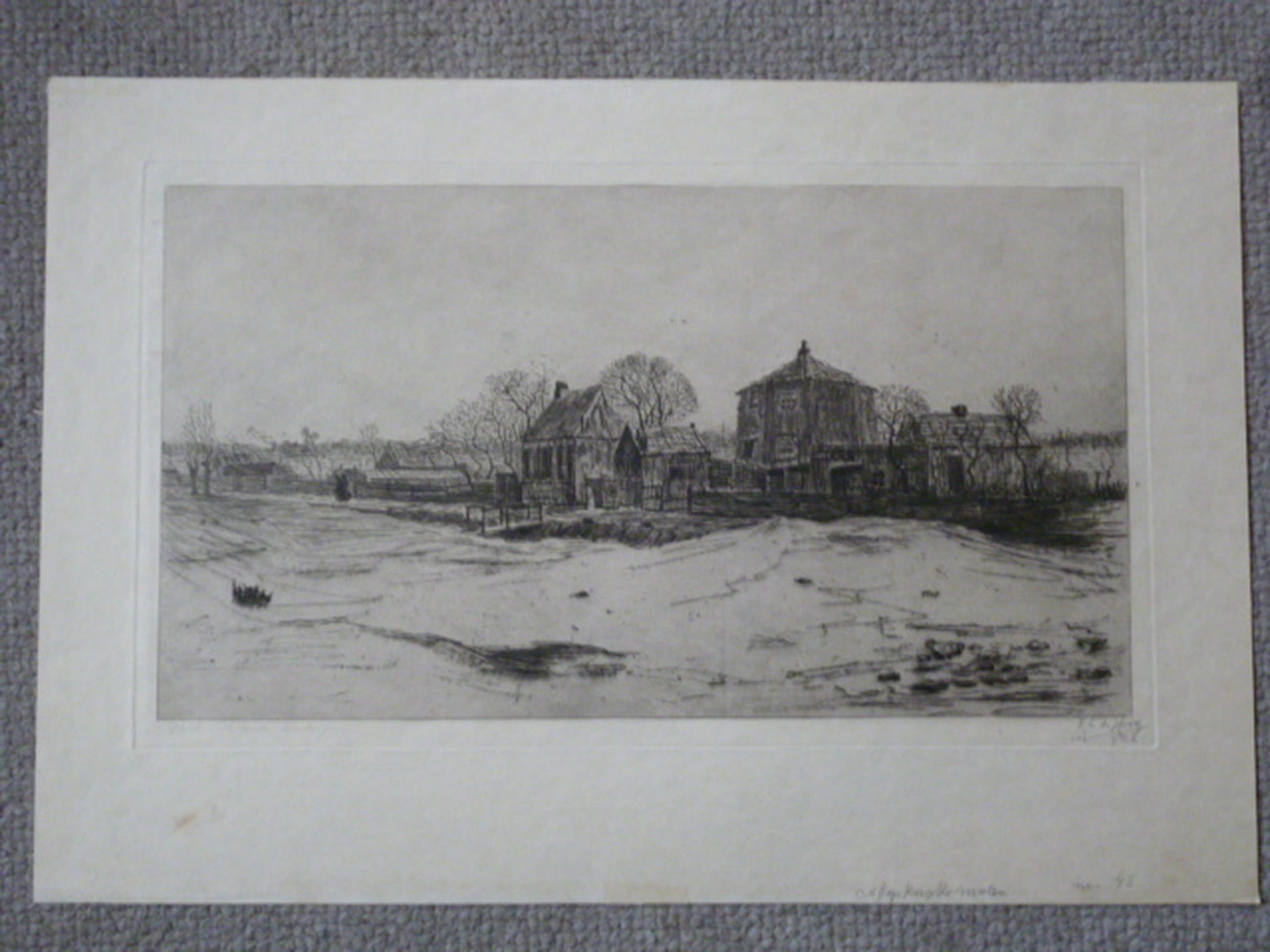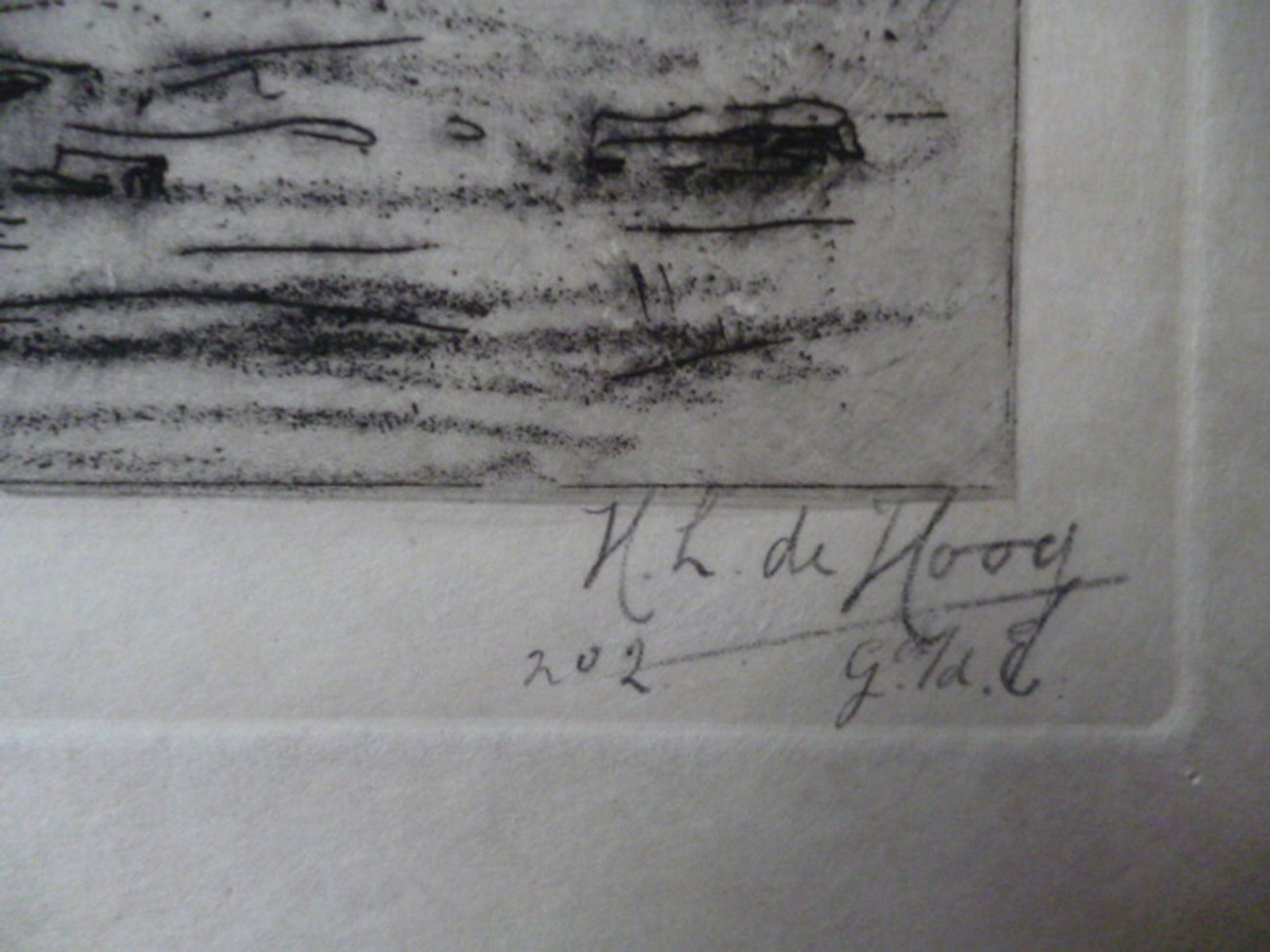 Ets, potloog gesigneerd en genummerd 2 rechtsonder. Getiteld linksonder.