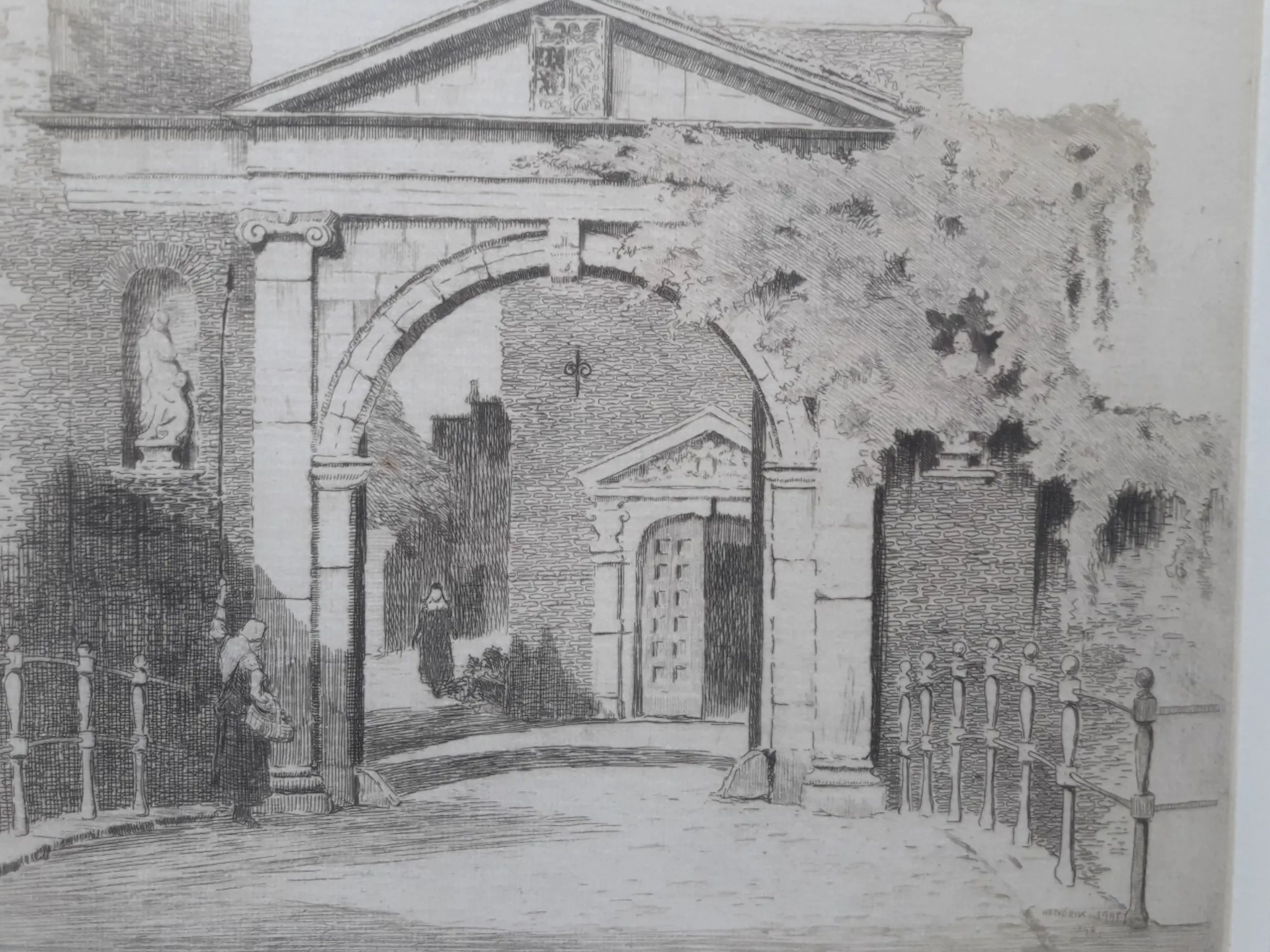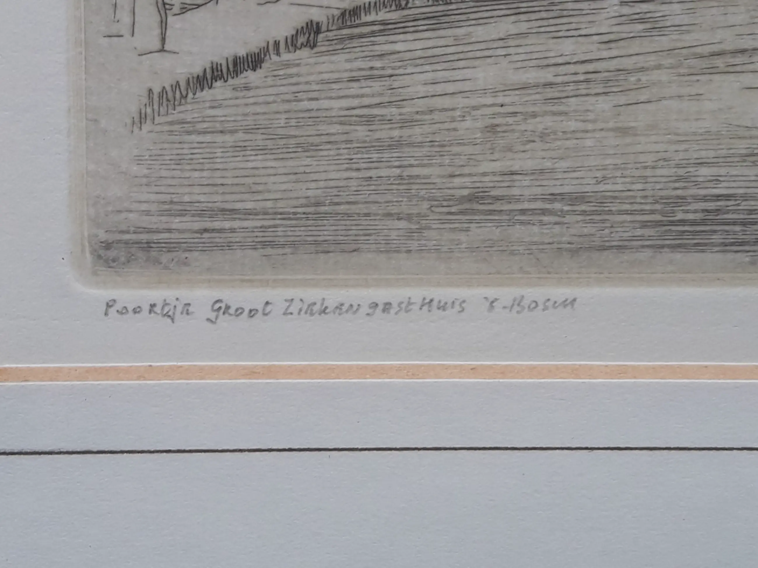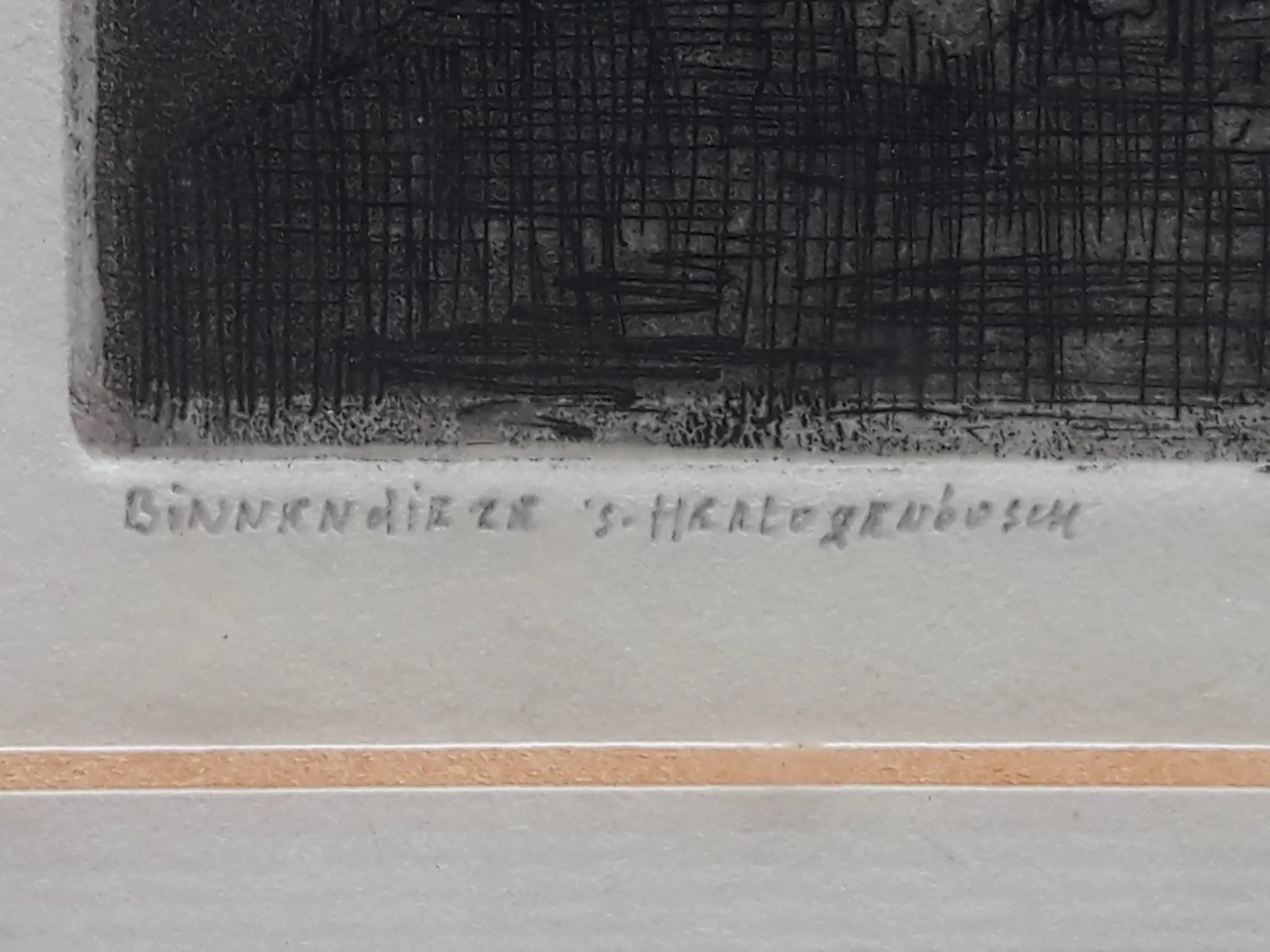 Gedrukt bij kunsthandel Hendrik de Laat in s'-Hertogenbosch. 2 postume drukken van zijn werk. De eerste is poortje groot ziekengasthuis en de 2e is binnendieze, beiden te s'Hertogenbosch. Worden verzonden in een op maat gemaakte kist om beschadiging te voorkomen.