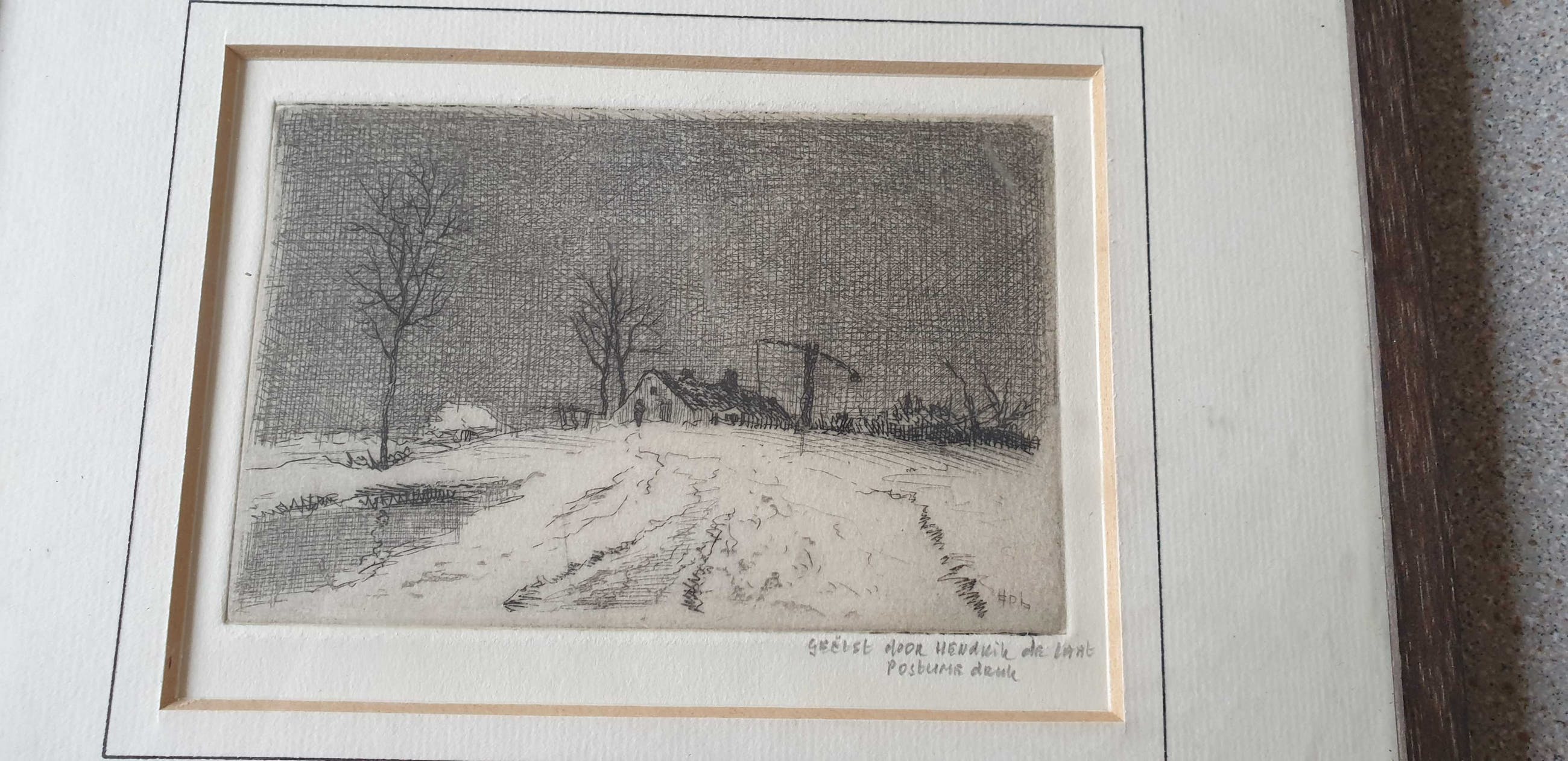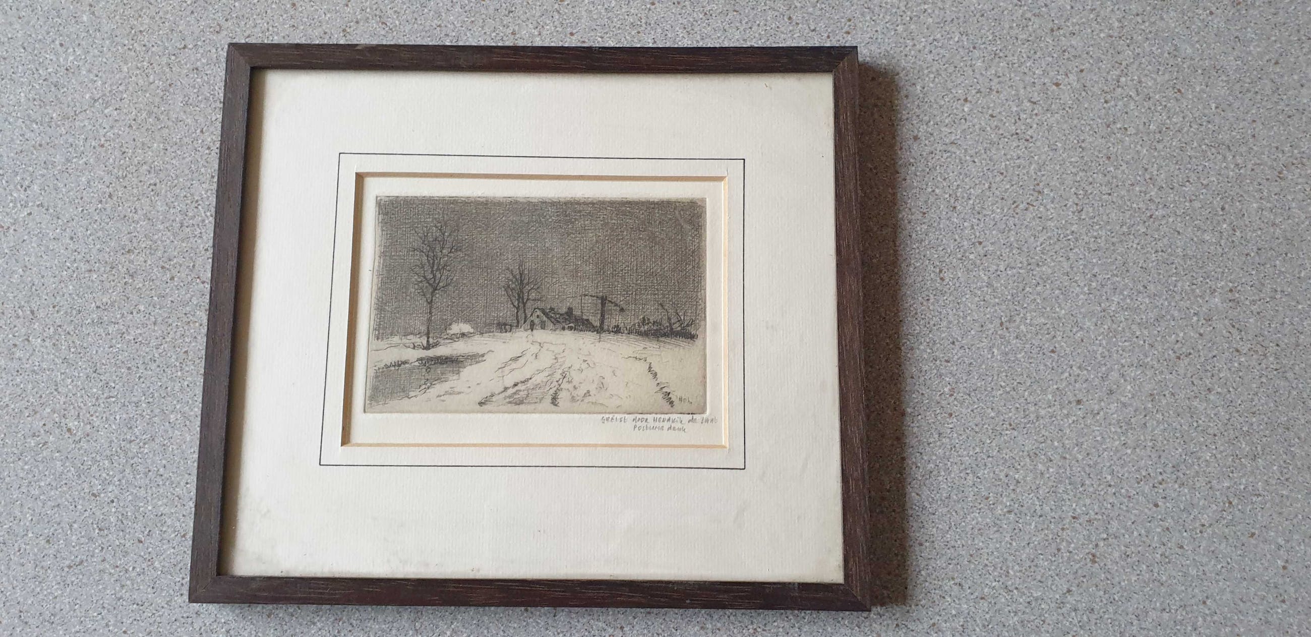 Geëtst kunstwerk door Hendrik de Laat. Titel van het werk is onbekend.