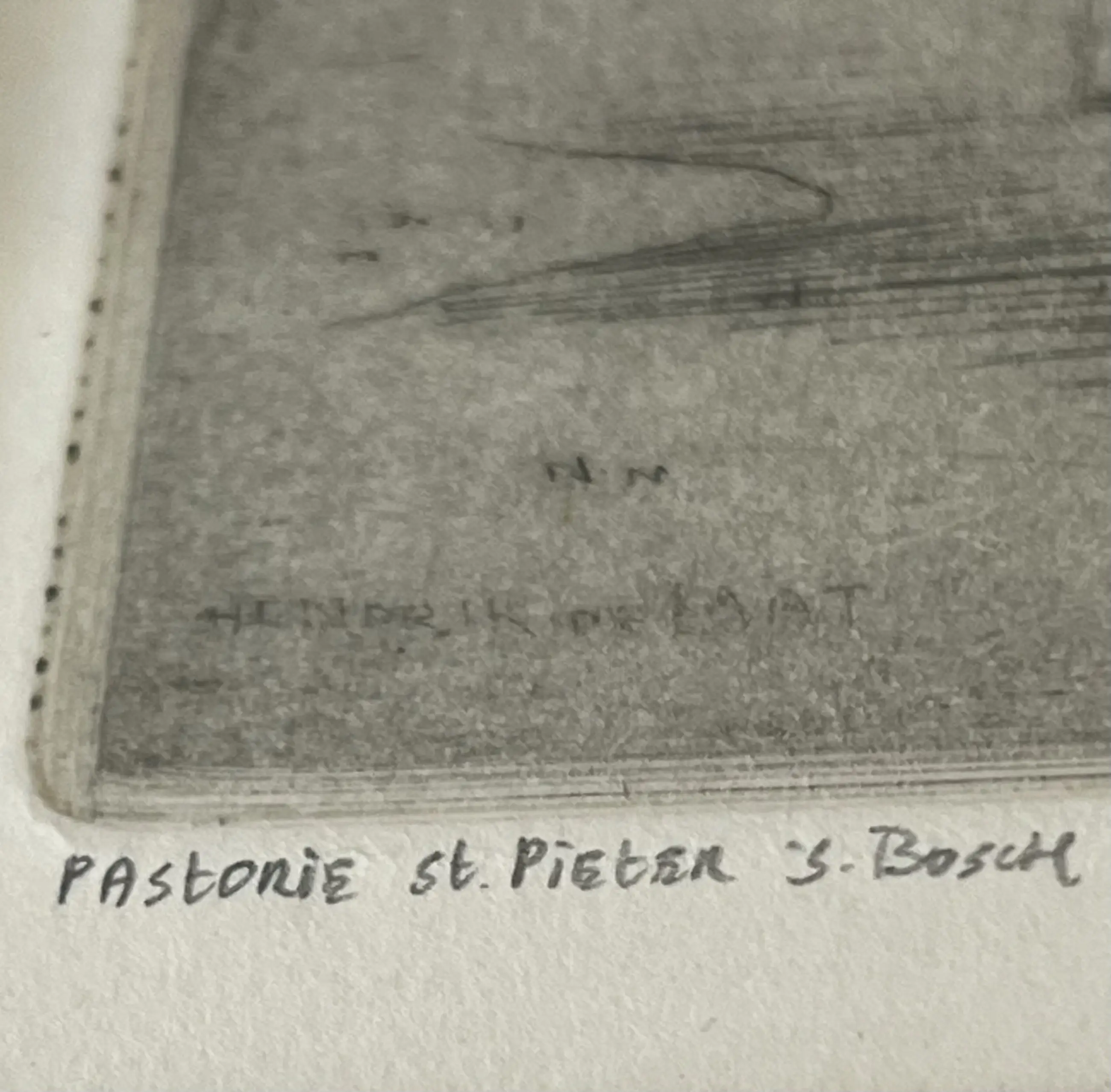 Hendrik de Laat 1900-1980 Nederlandse artiest Geëtst Postume dank Pastorie st Pieter Den Bosch Ingelijst bij Kunsthandel De Laat in s’Bosch 40/32 cm inclusief lijst 19/27 de ets