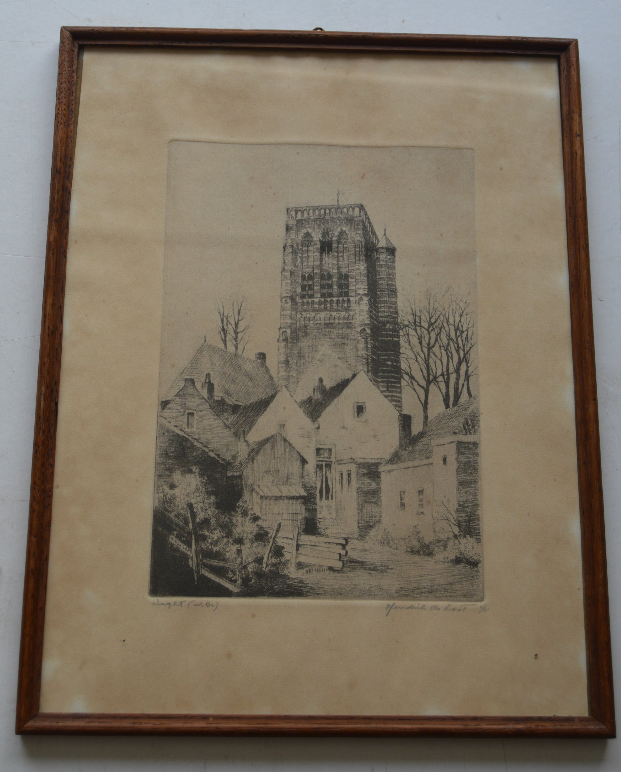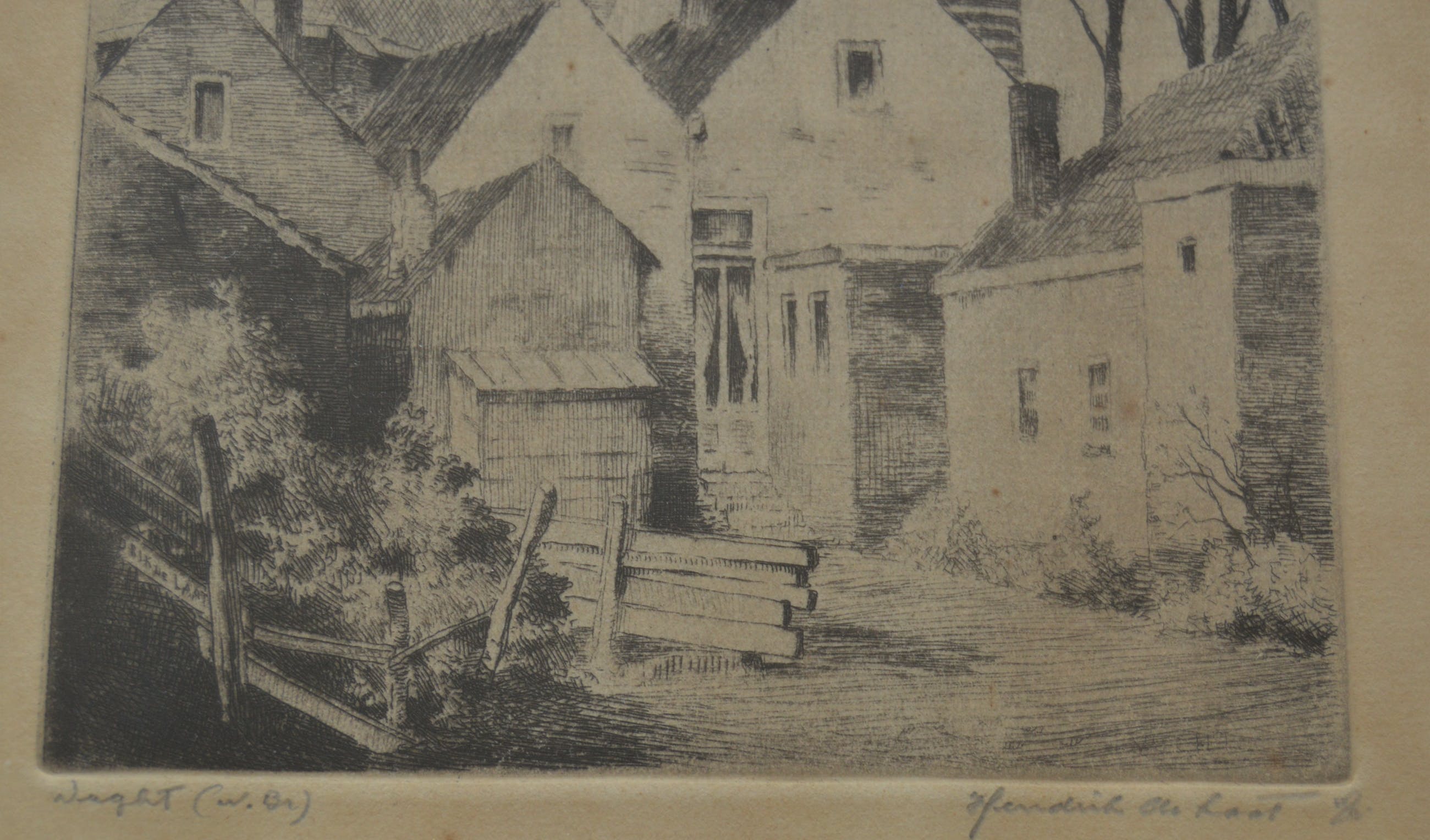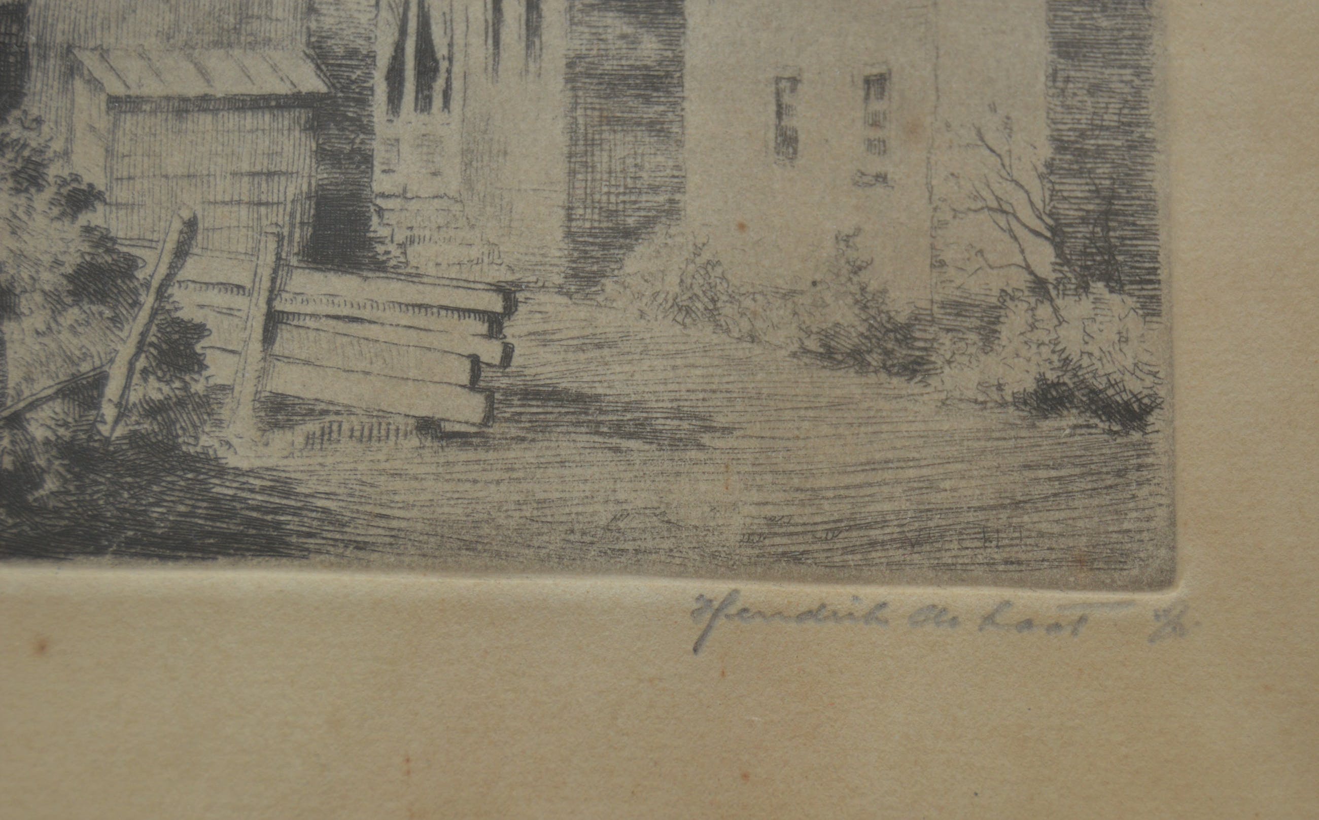 Ets door Hendrik de laat getiteld 'Vught' Ingelijst achter glas. {lichte verkleuring}