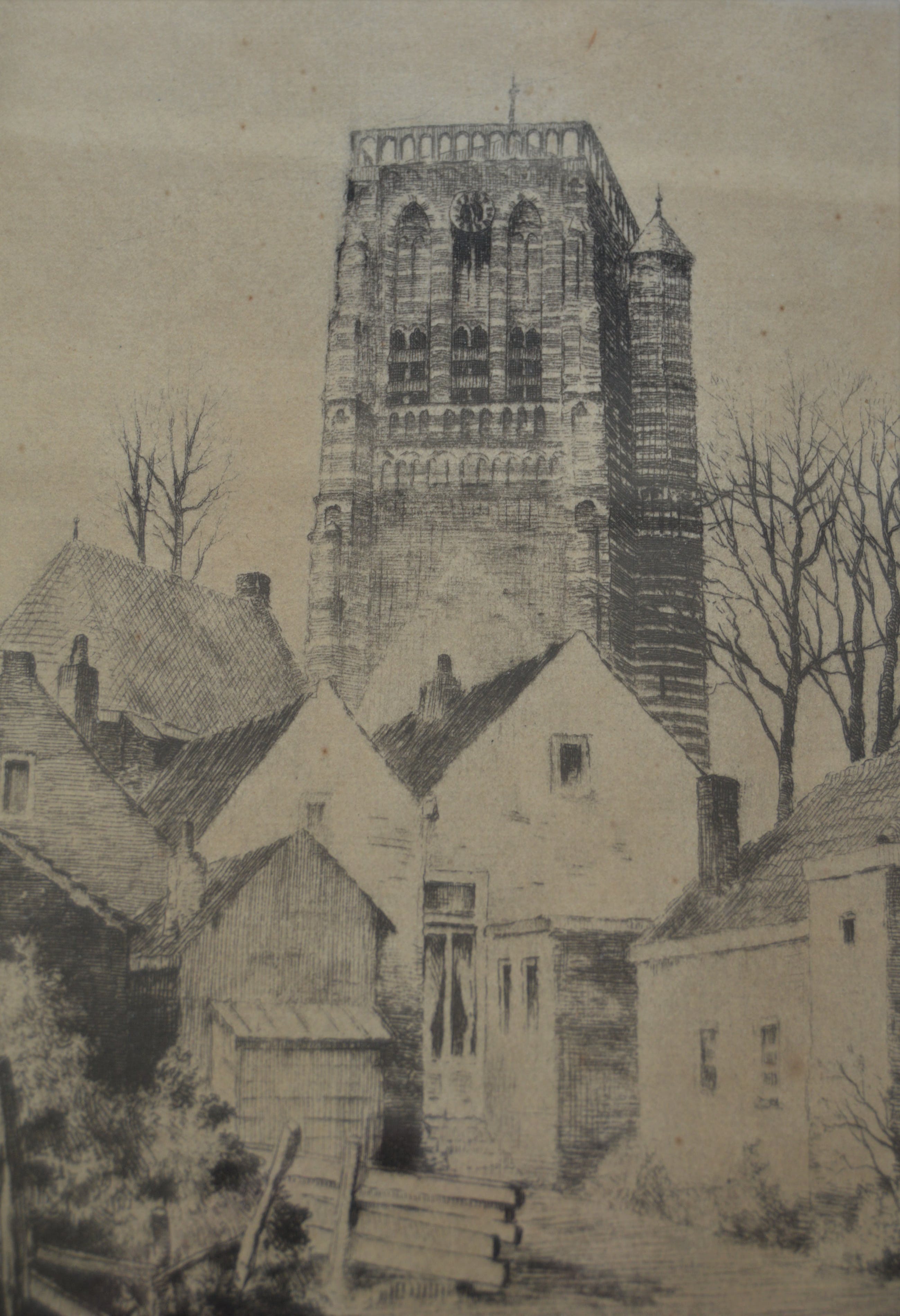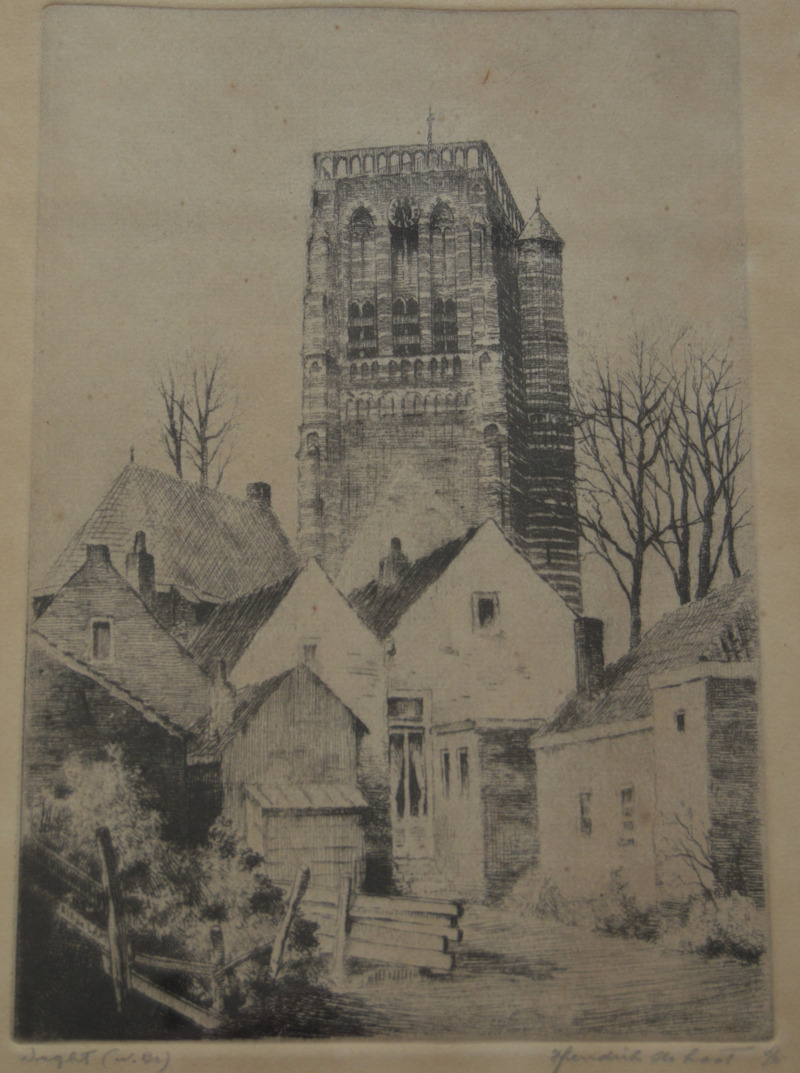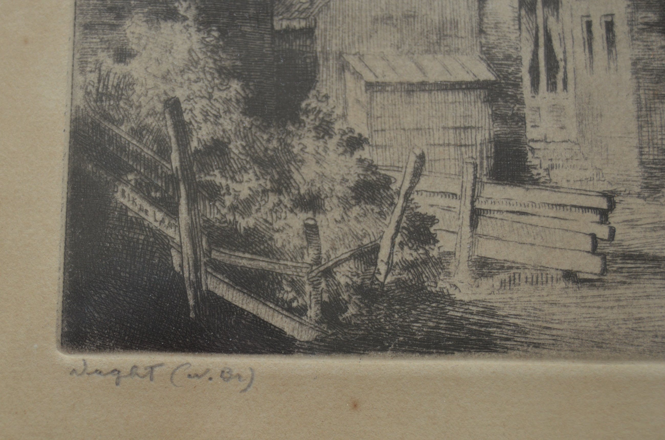 Ets door Hendrik de laat getiteld 'Vught' Ingelijst achter glas. {lichte verkleuring}