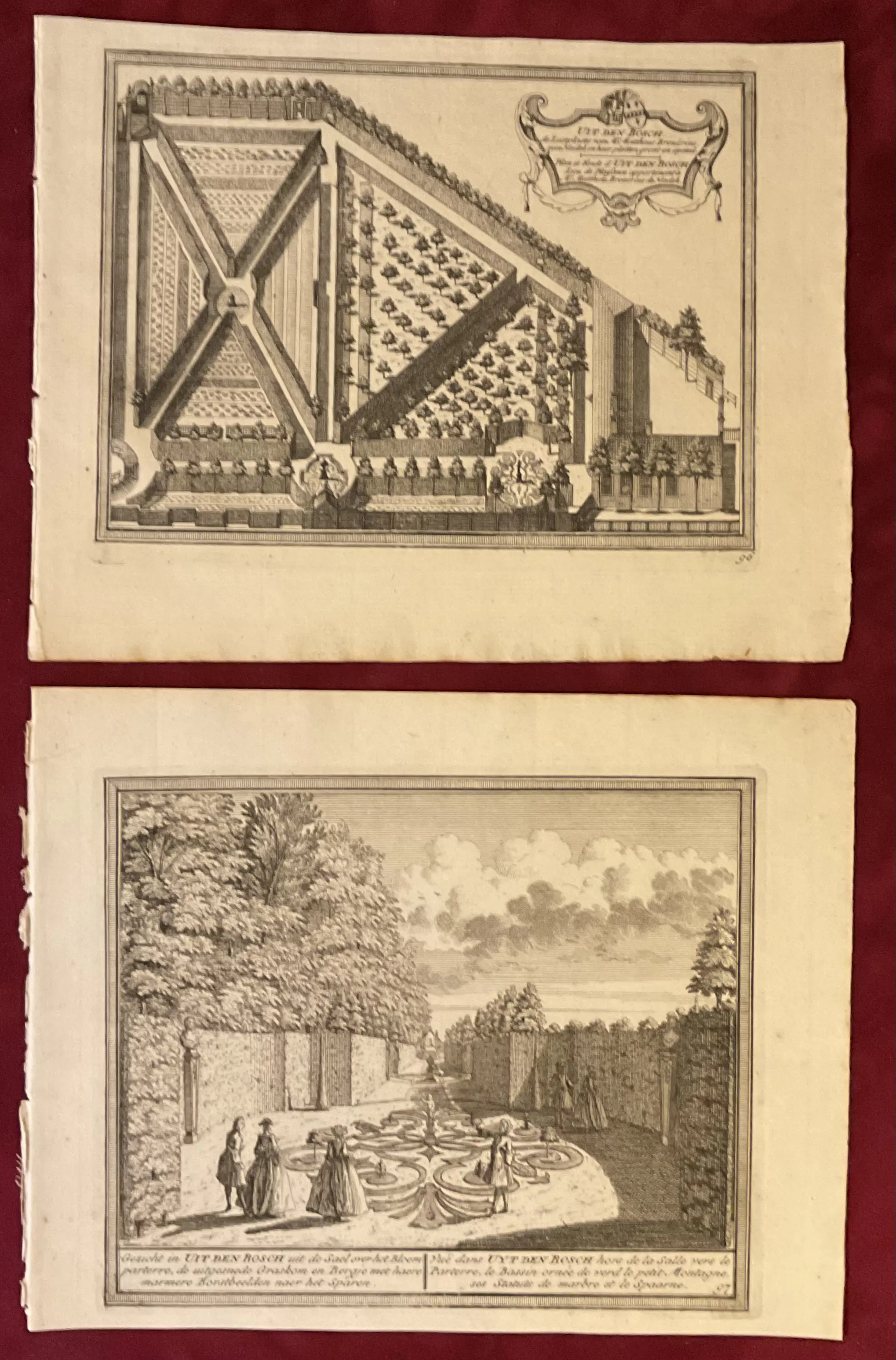 Set van twee originele kopergravures uit Het Zegepralend Kennemerland.
