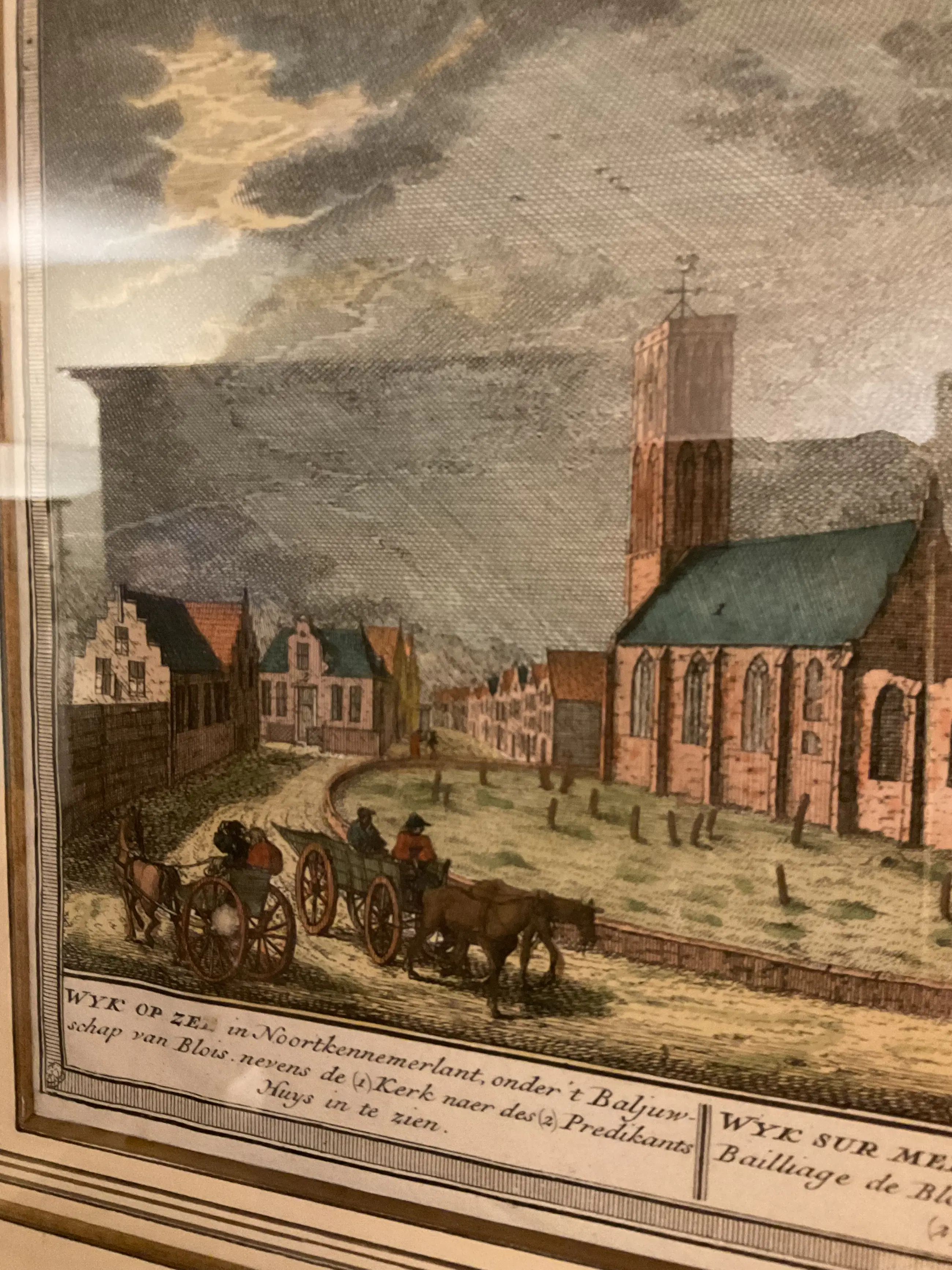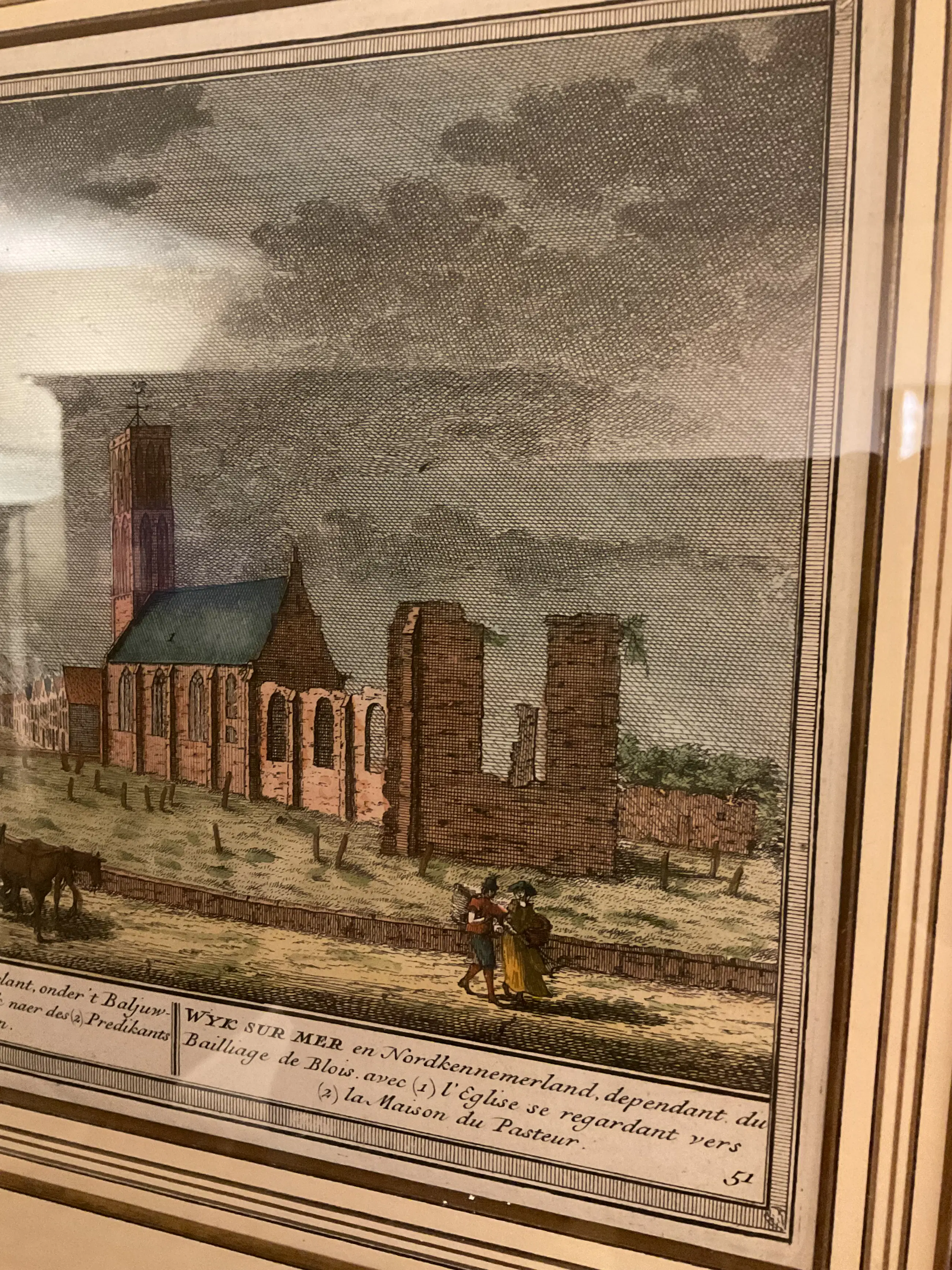 Handgekleurde kopergravure uit Het Zegepralend Kennemerland Keurig gelijst.