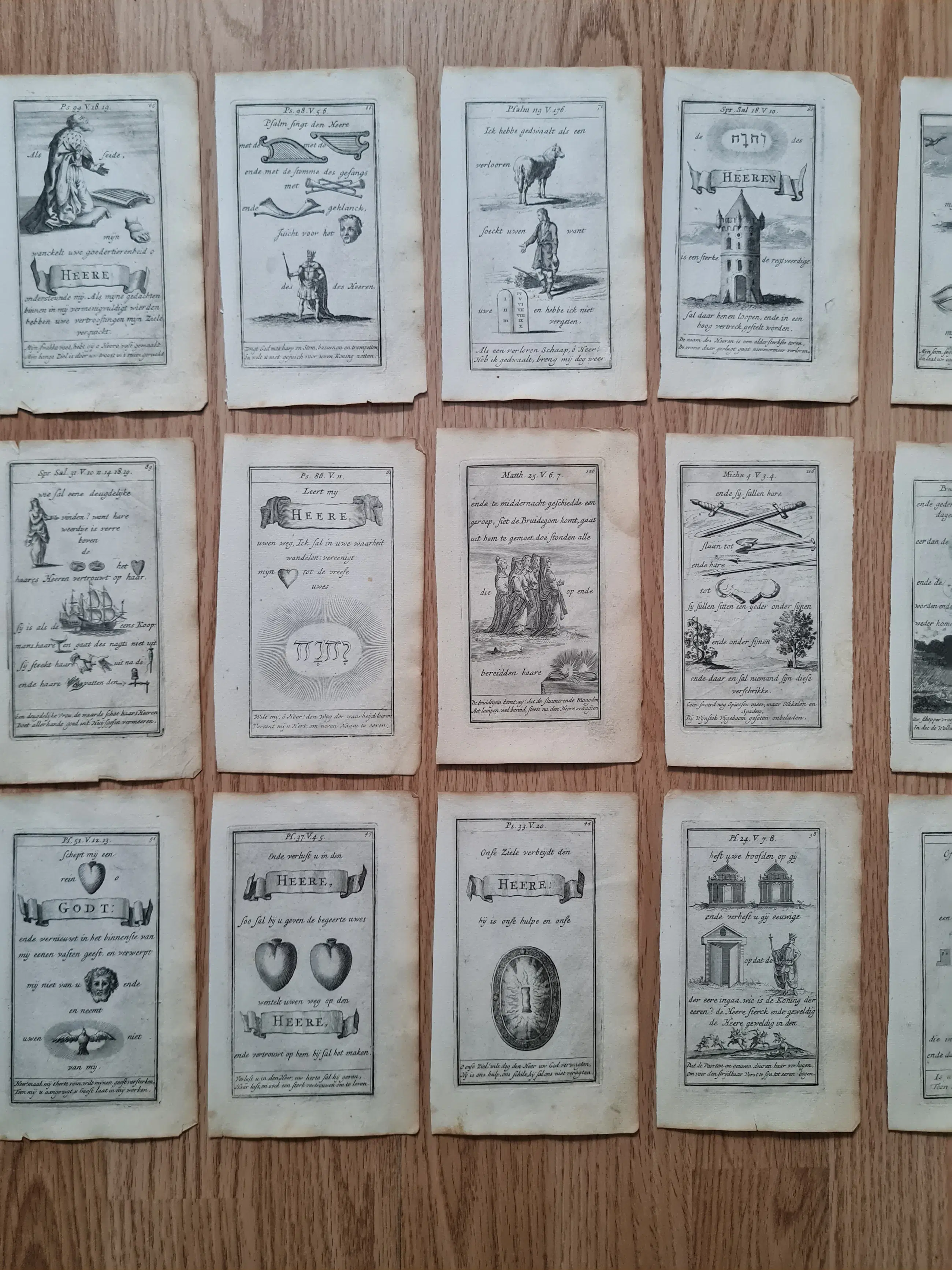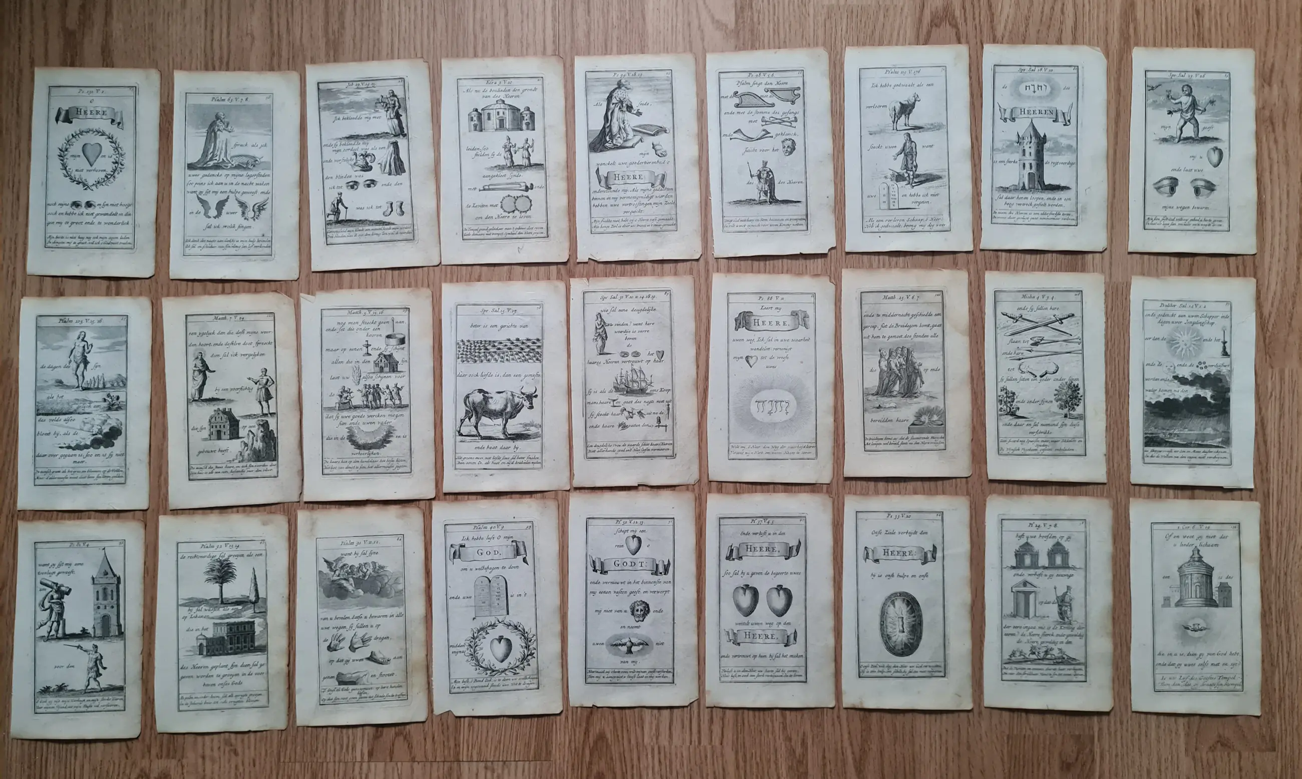 Hendrik Hondius - Groot lot van 27 gravures, Bijbelse rebus puzzels