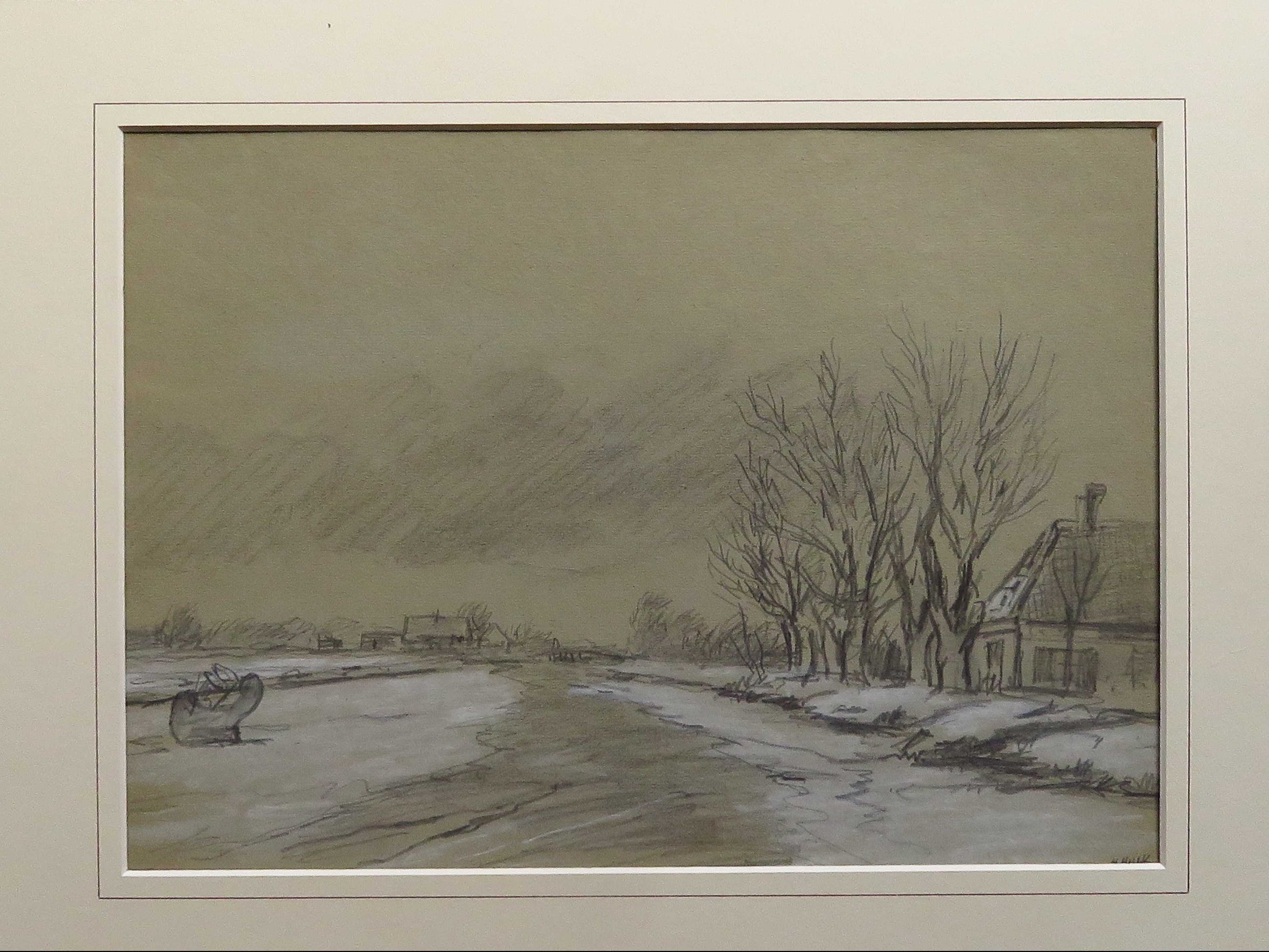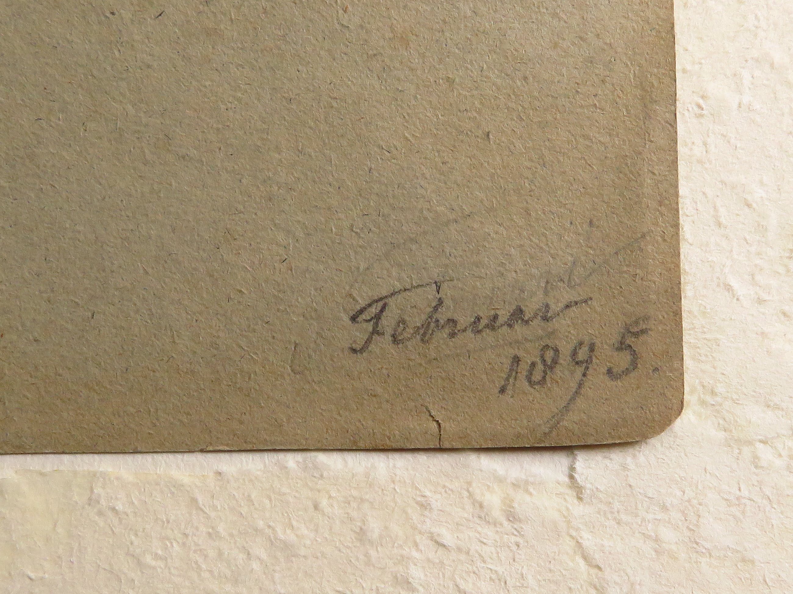 De tekening heeft een passe-partout en aan de achterzijde karton. Deze zijn aan de bovenkant aan elkaar geplakt met tape.