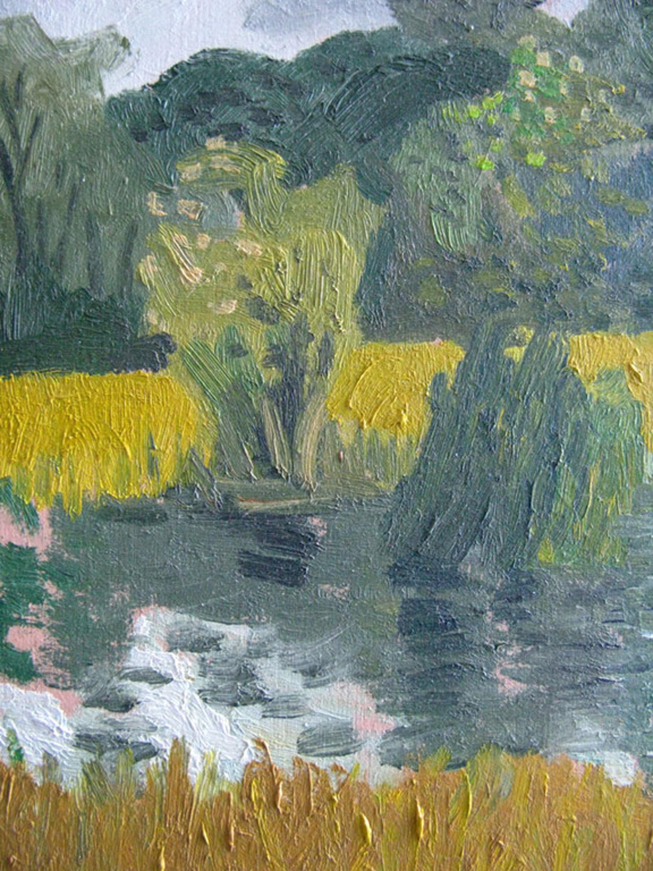 Een impressie van een nazomerse wandeling is op dit paneel vastgelegd. De afmeting is 24 x 18 en wordt zonder lijst aangeboden. De kunstenaar heeft linksonder het werk gesigneerd. De conditie van het paneel is uitstekend. Het paneel wordt aangetekend verzonden via PostNL