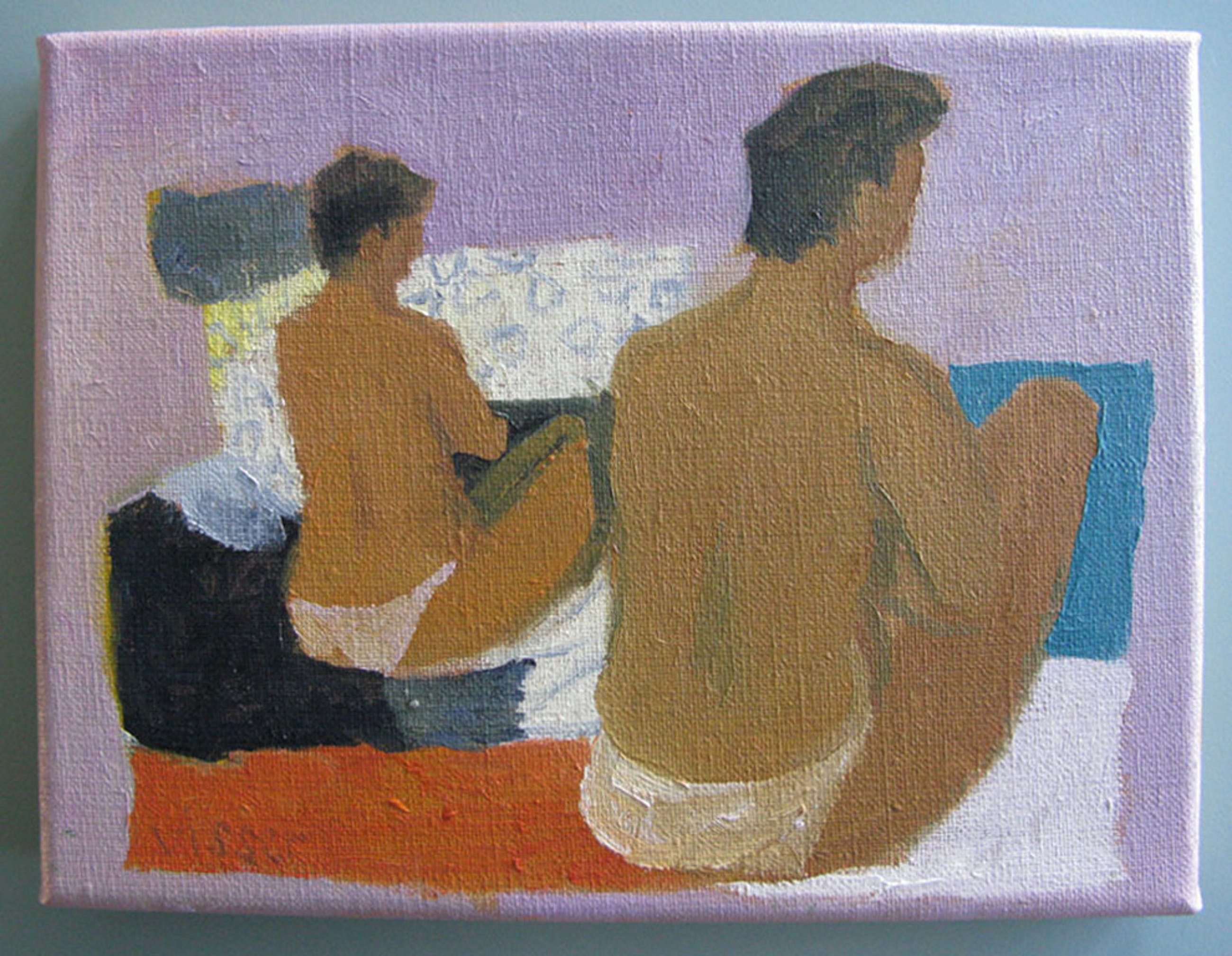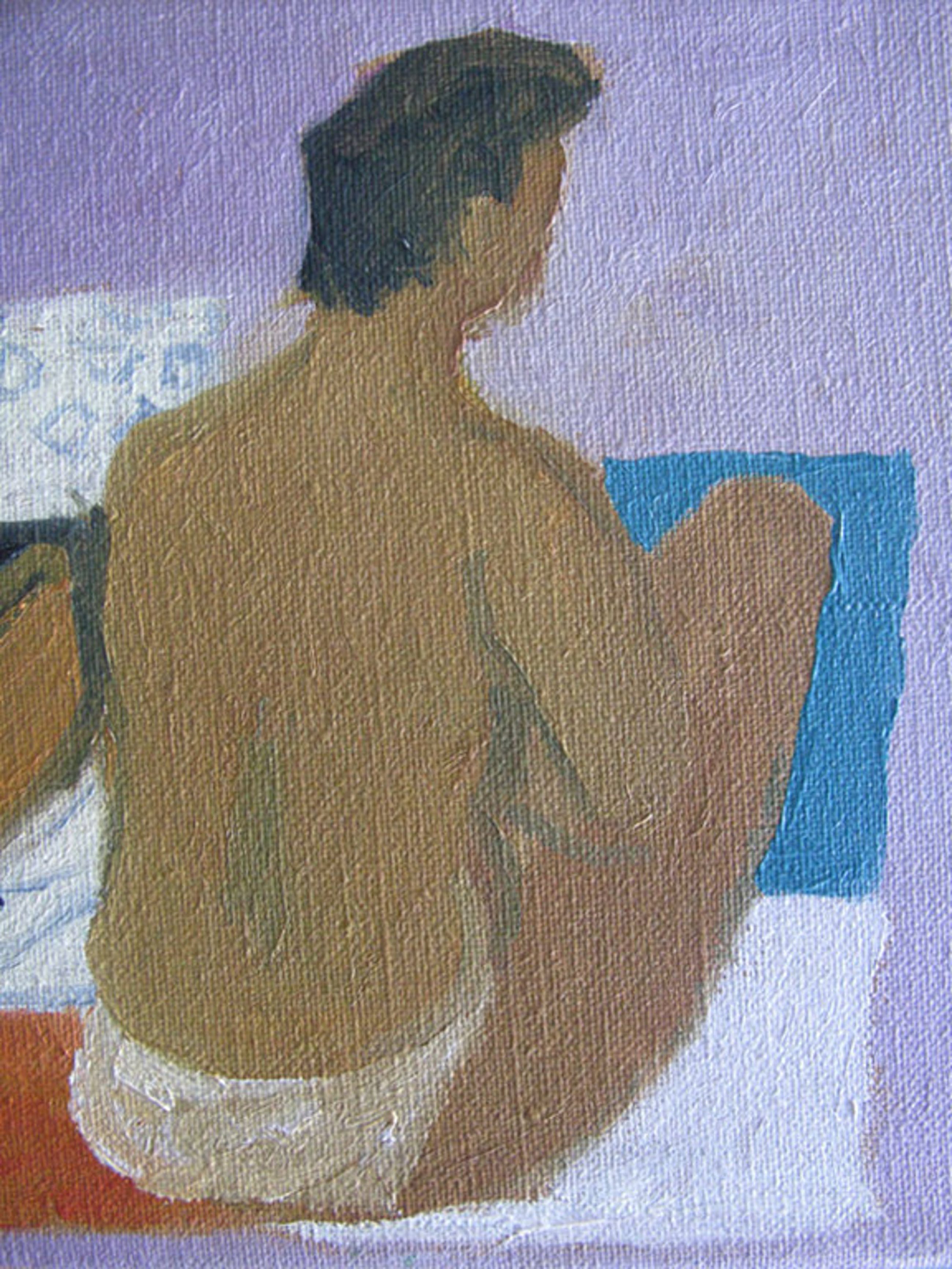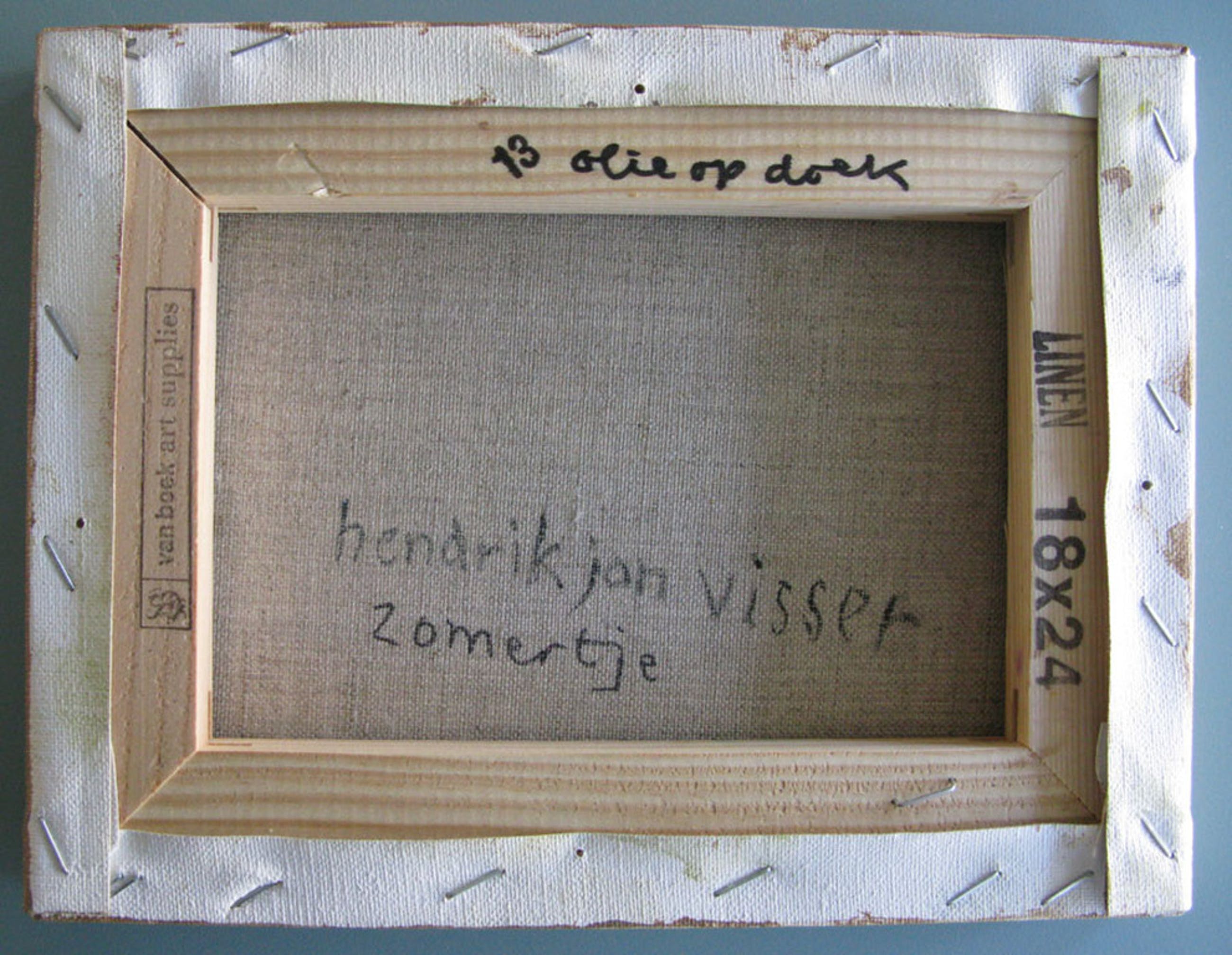 Een klein schilderstuk (afmeting 18 x 24) waar de badgasten in een enigzins abstracte achtergrond zijn geplaatst. Het werk wordt zonder lijst aangeboden en de conditie is uitstekend. De kunstenaar heeft het werk linksonder in het rode vlak gesigneerd. De verzending geschiedt aangetekend via PostNL.