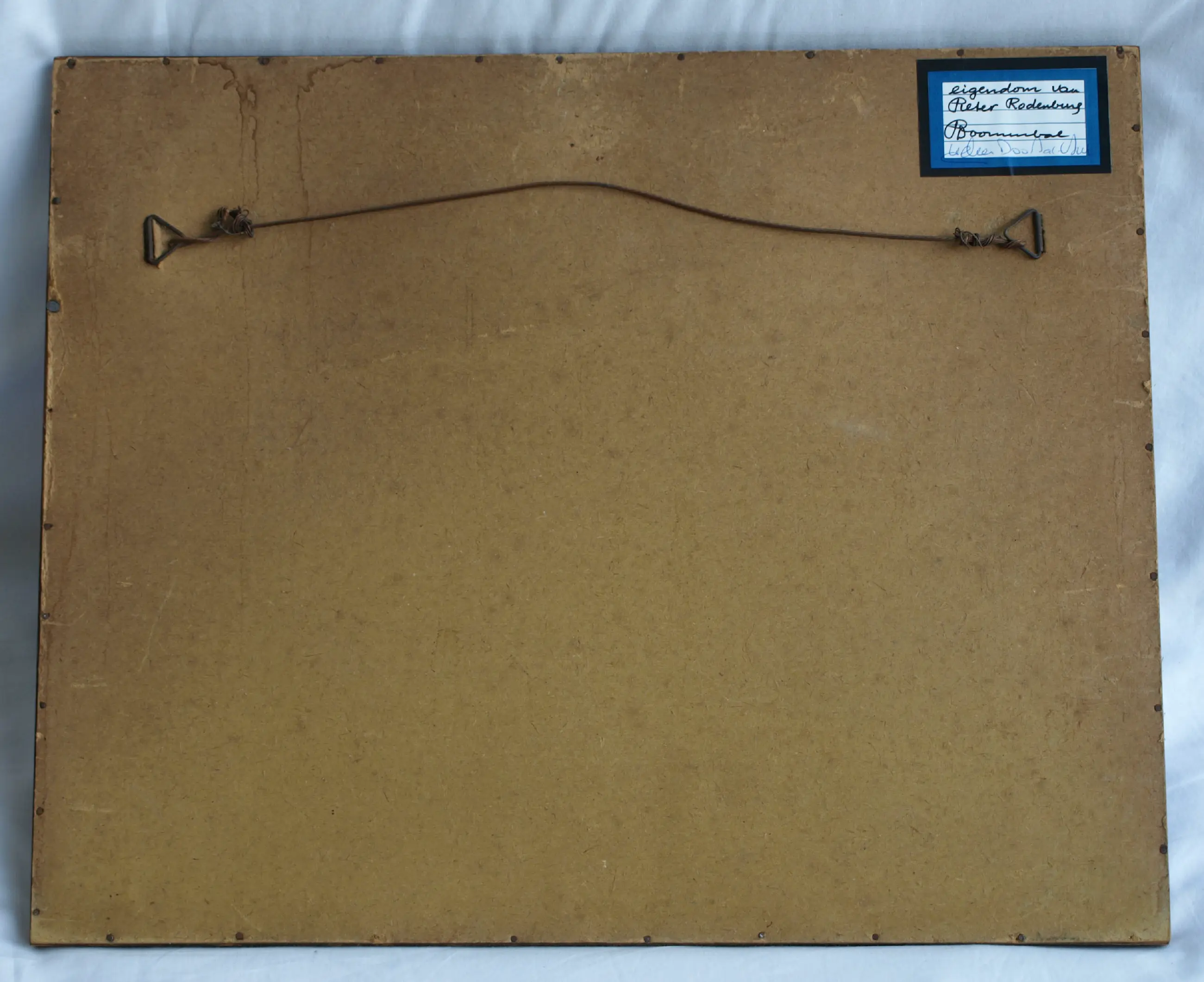 | In goede staat. Het papier van de litho is verkleurd door de tand des tijds. De lijst heeft slijtplekjes. Zie ook de foto’s voor een eigen indruk. Kan zo aan de muur. | |||||||||||