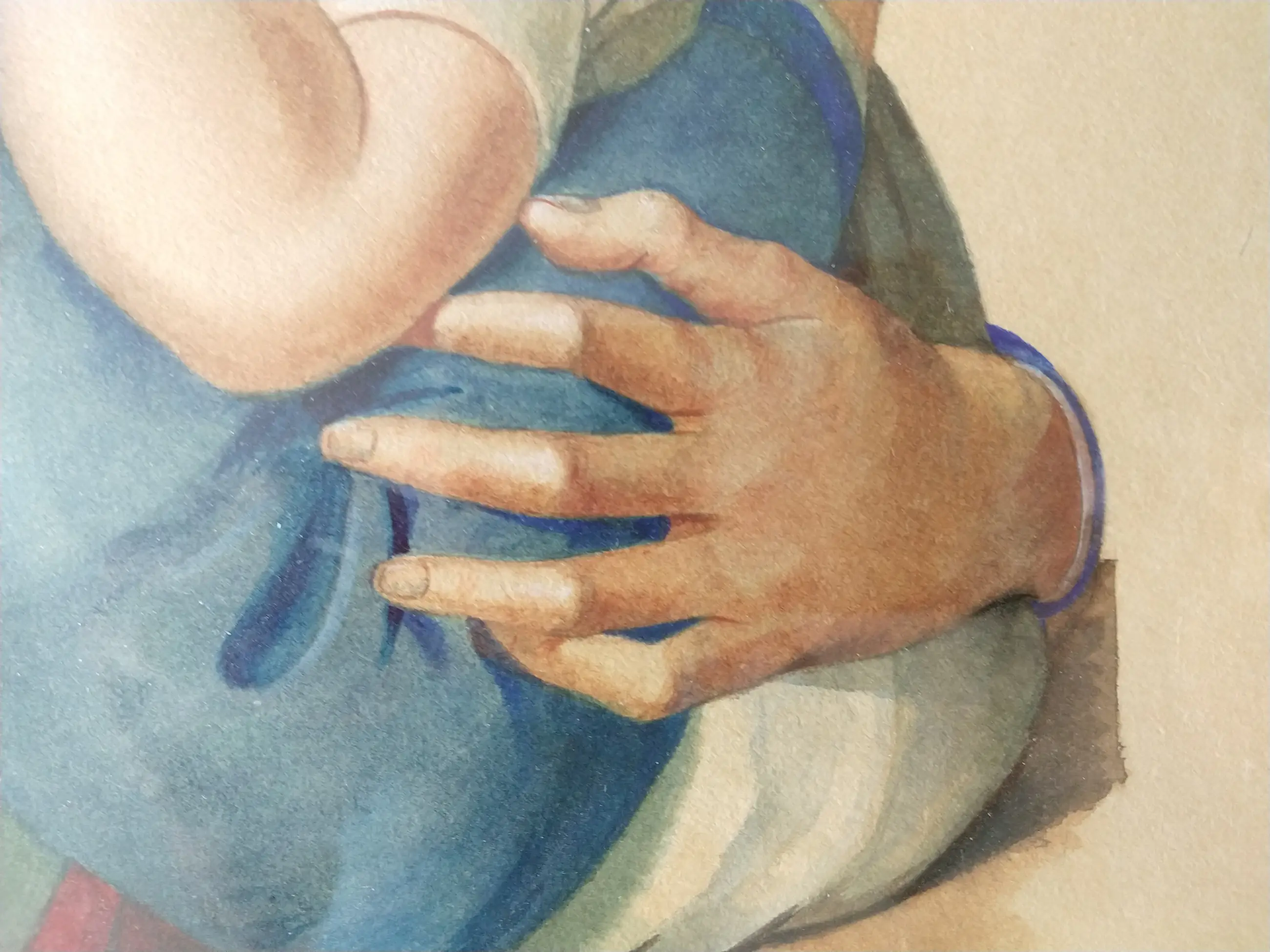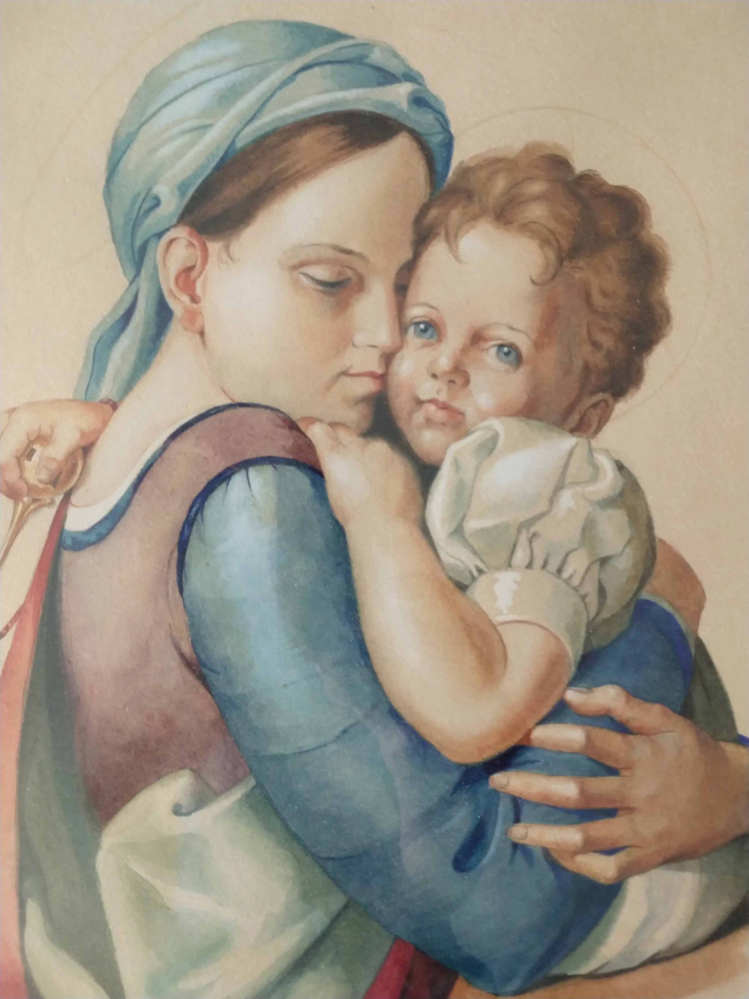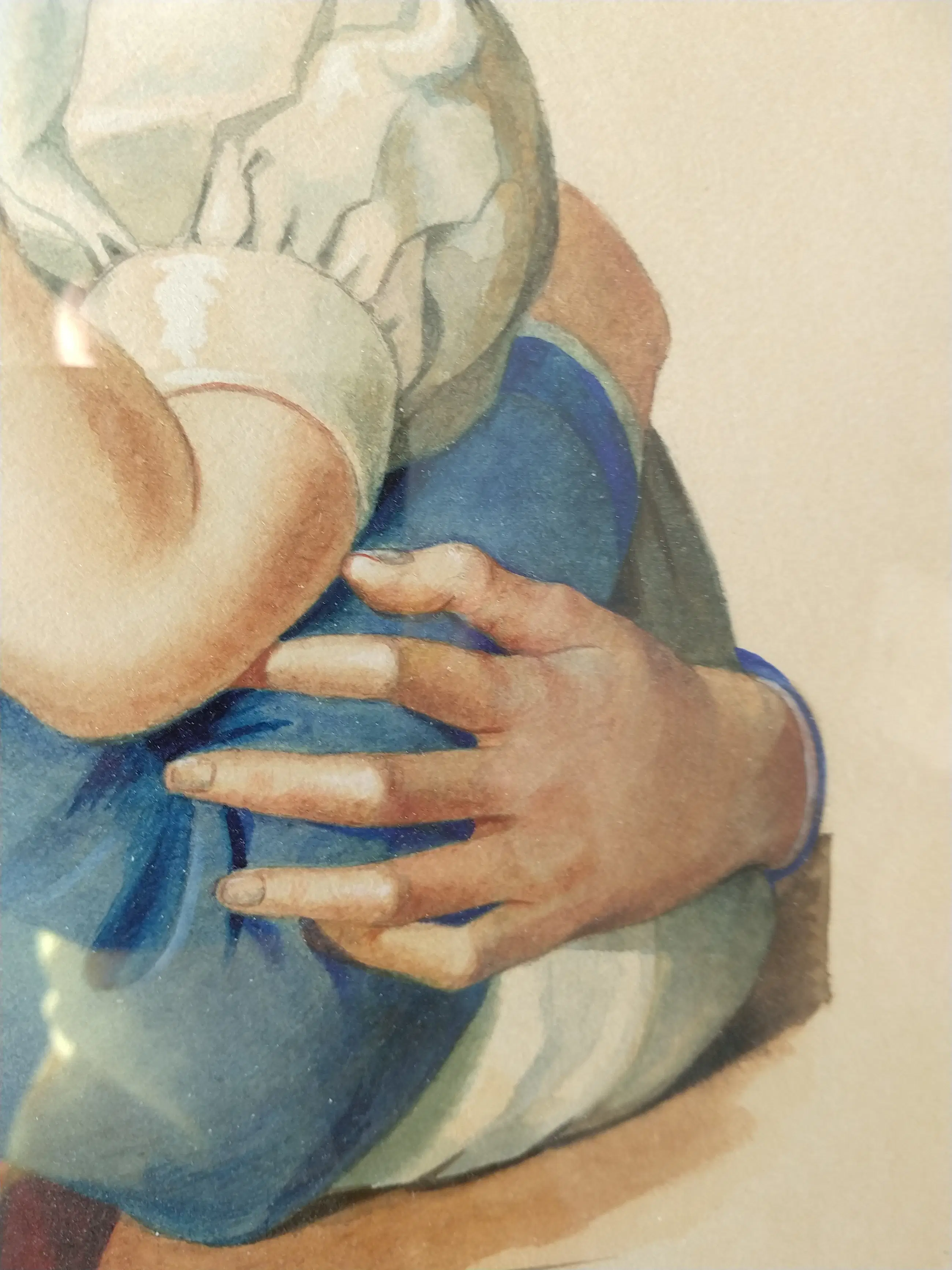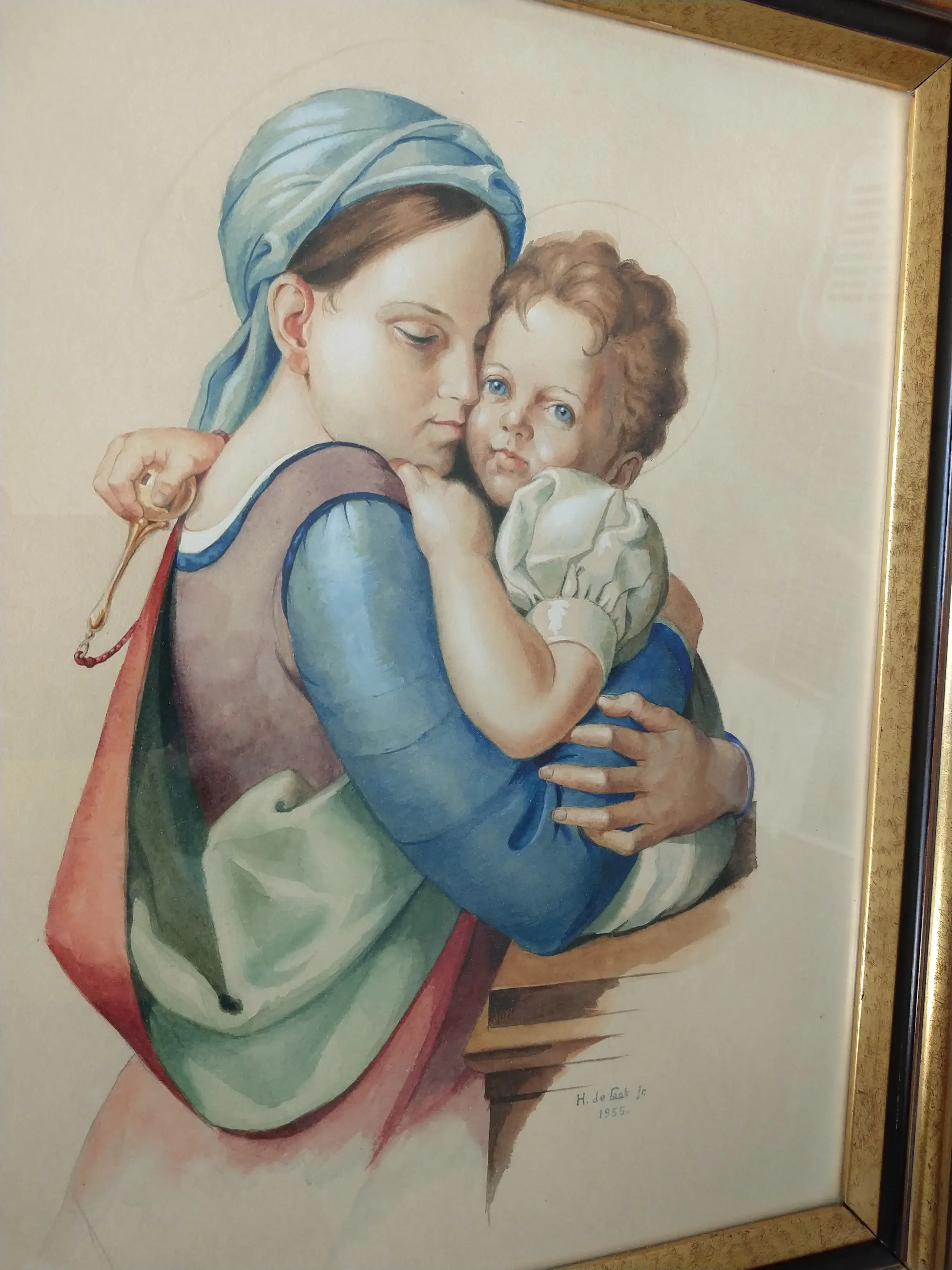 H.C. de Laat jr. (1932-1995). Moeder met kind. Subliem zeer realistisch geschilderde aquarel. Gesigneerd en gedateerd 1955. Afmeting inclusief lijst 65x55 cm. De aquarel is in zeer goede staat. de lijst is in goede staat met ouderdomssporen. Zeer verfijnde aquarel van een moeder met kind van Henk de Laat junior.