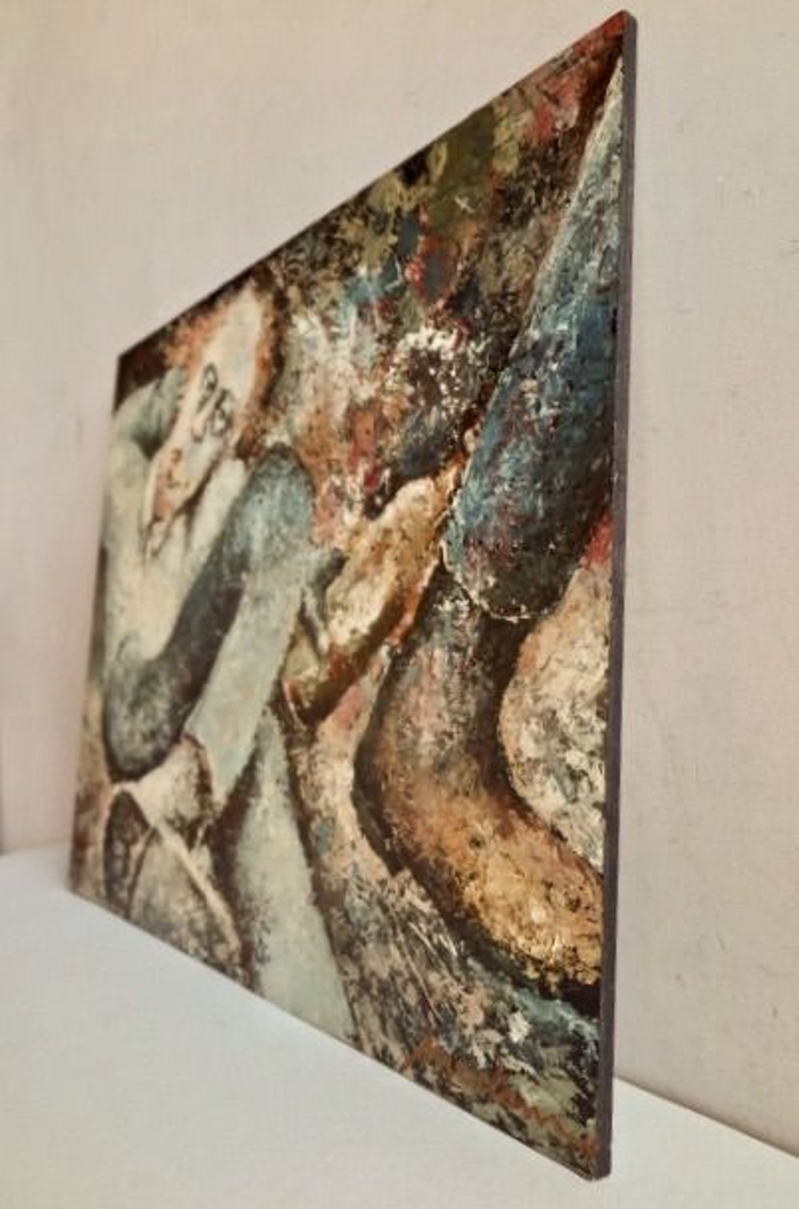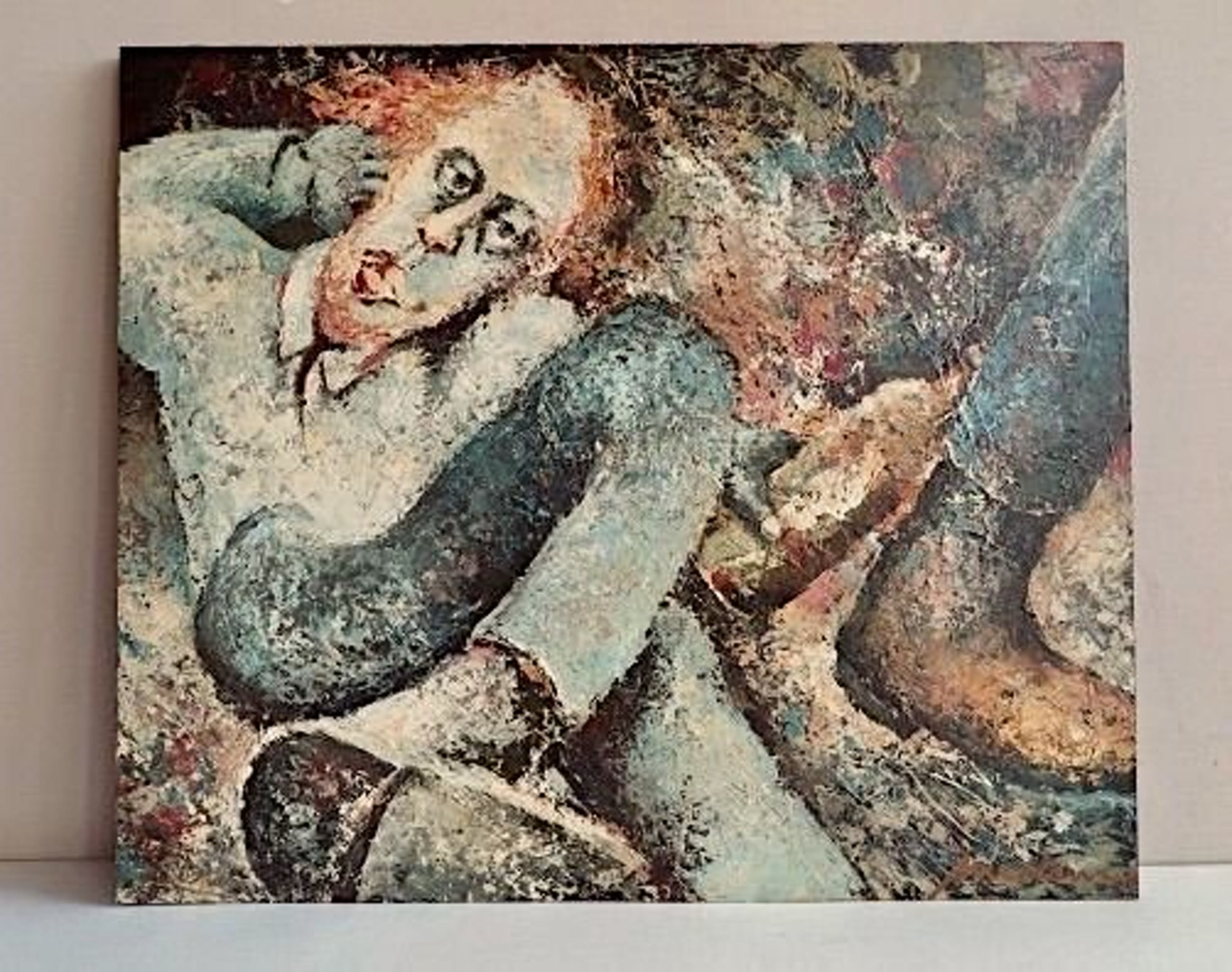 Op stevig paneel, aan alle kanten zwart meegeschilderd. Kan zo strak aan de muur. Een lijst is daarom niet nodig.