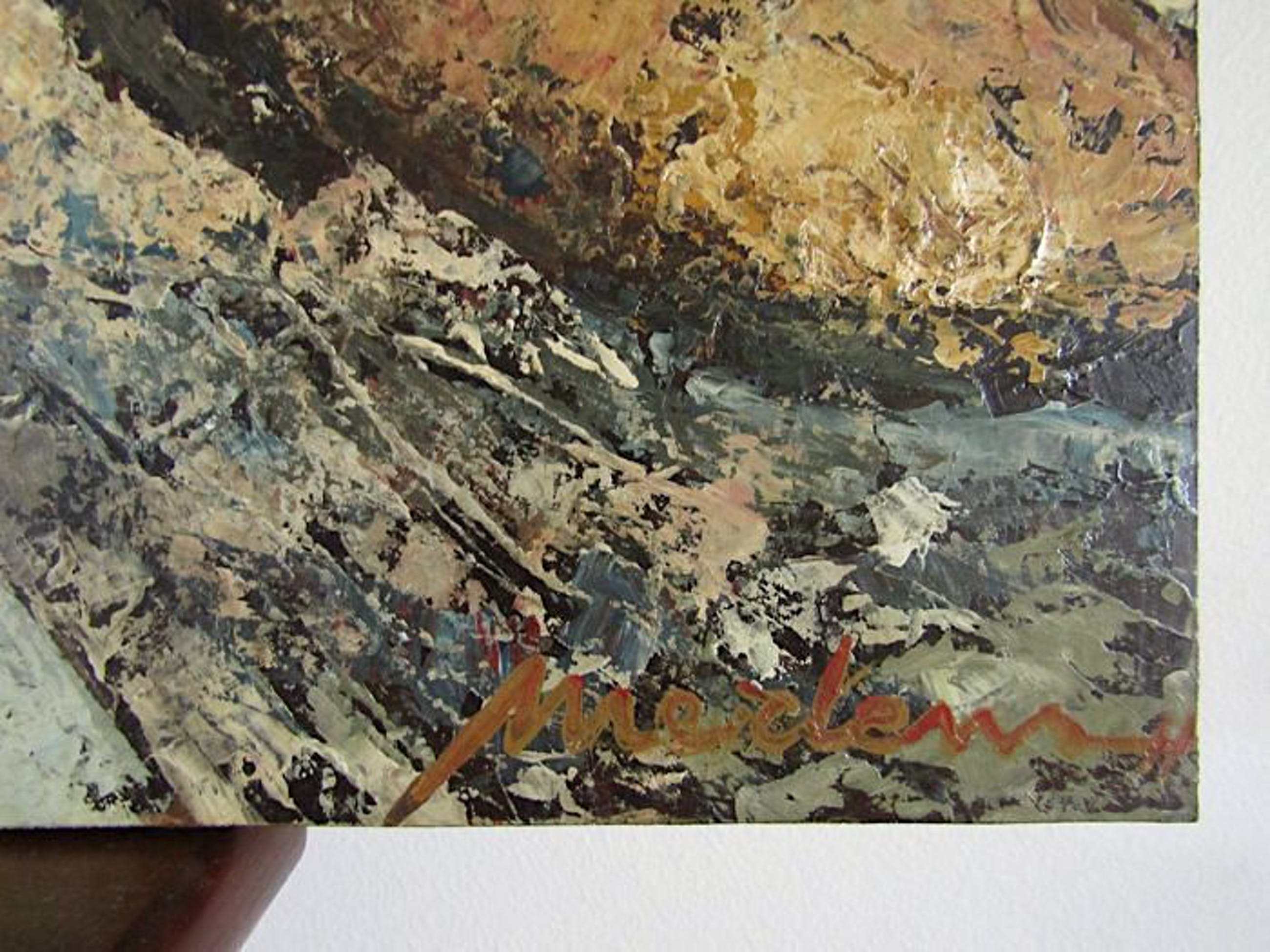 Fraai humoristisch doch realistisch werk van de Belgische kunstenaar Mertens (Aalst 1952 / Aalster School). Bijzonder fraai impressionistisch geschilderd met door de kunstenaar eigen gemaakte verf. Mertens werkt volgens het principe van de 'oude meesters' dat wil zeggen zelf eigen verf maken en gelaagd schilderen. Hierdoor ontstaat er een fabelachtig kleureffect, dieptewerking en een levendige uitstraling. Hij schildert vooral surrealistisch.