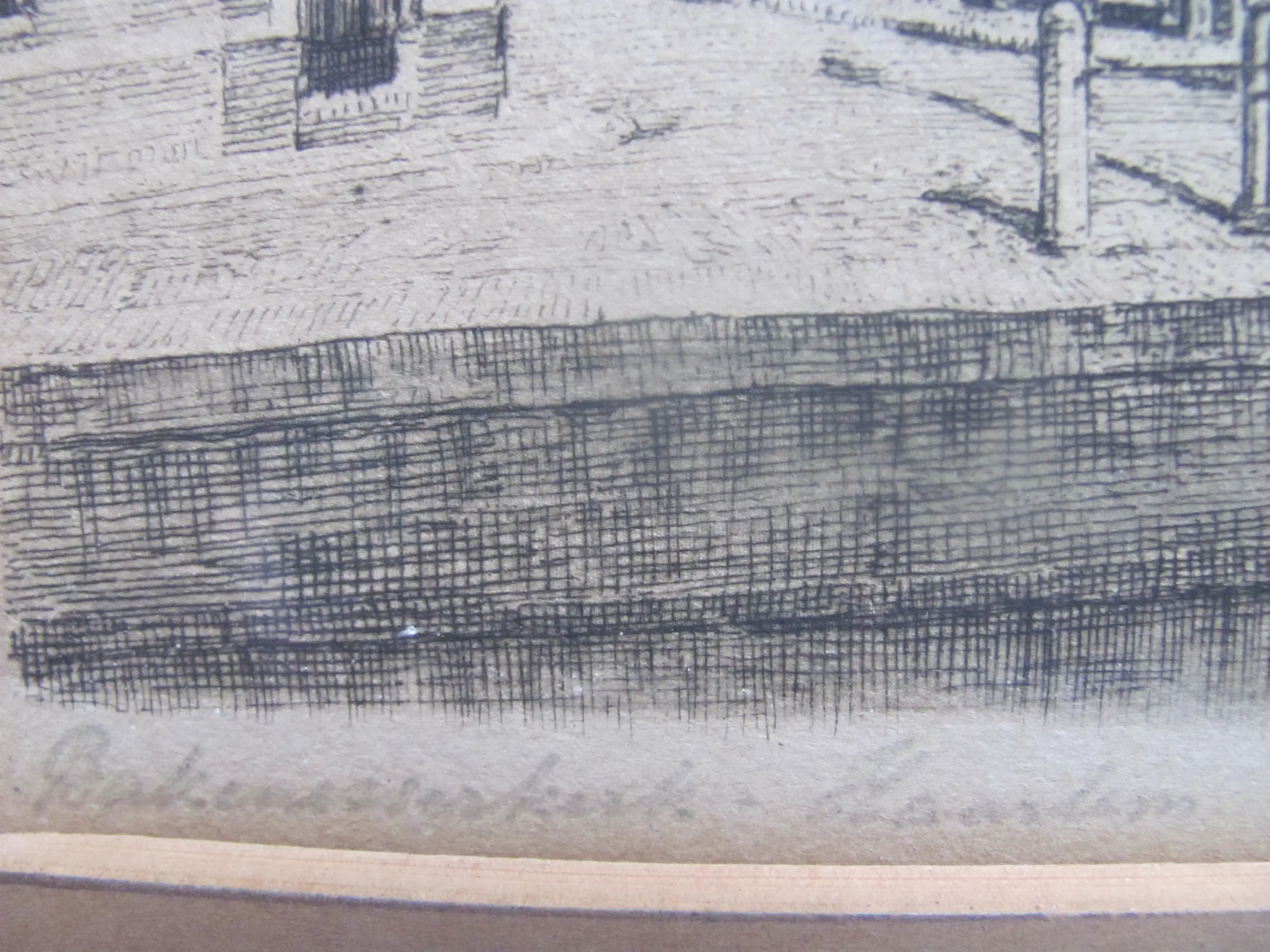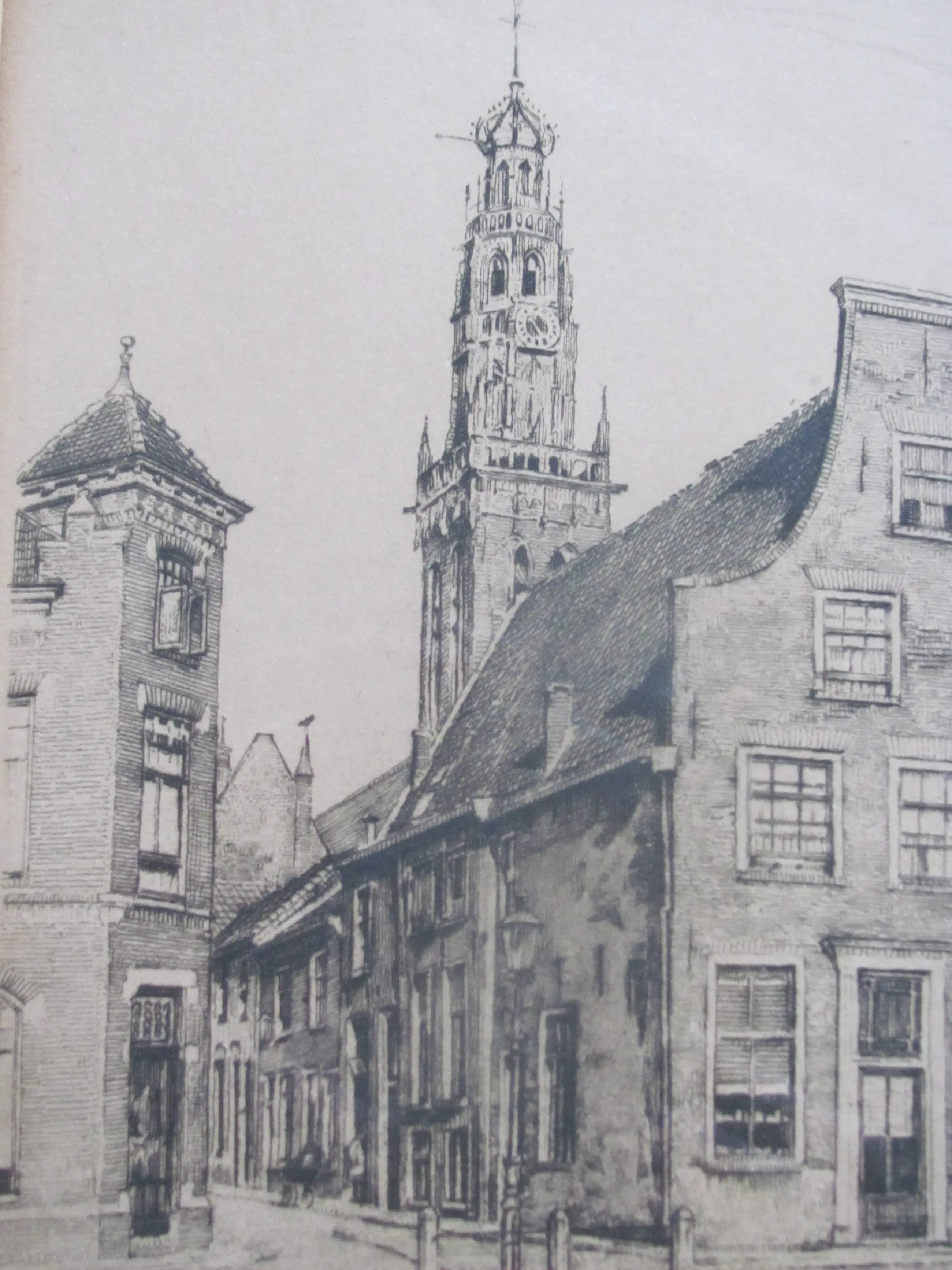 Ets van de Bakenesserkerk in Haarlem. Rechtsonder gesigneerd door Georg Keens (pseudoniem Hendrik Seegers). Linksonder met potlood: Bakenesserkerk Haarlem.
