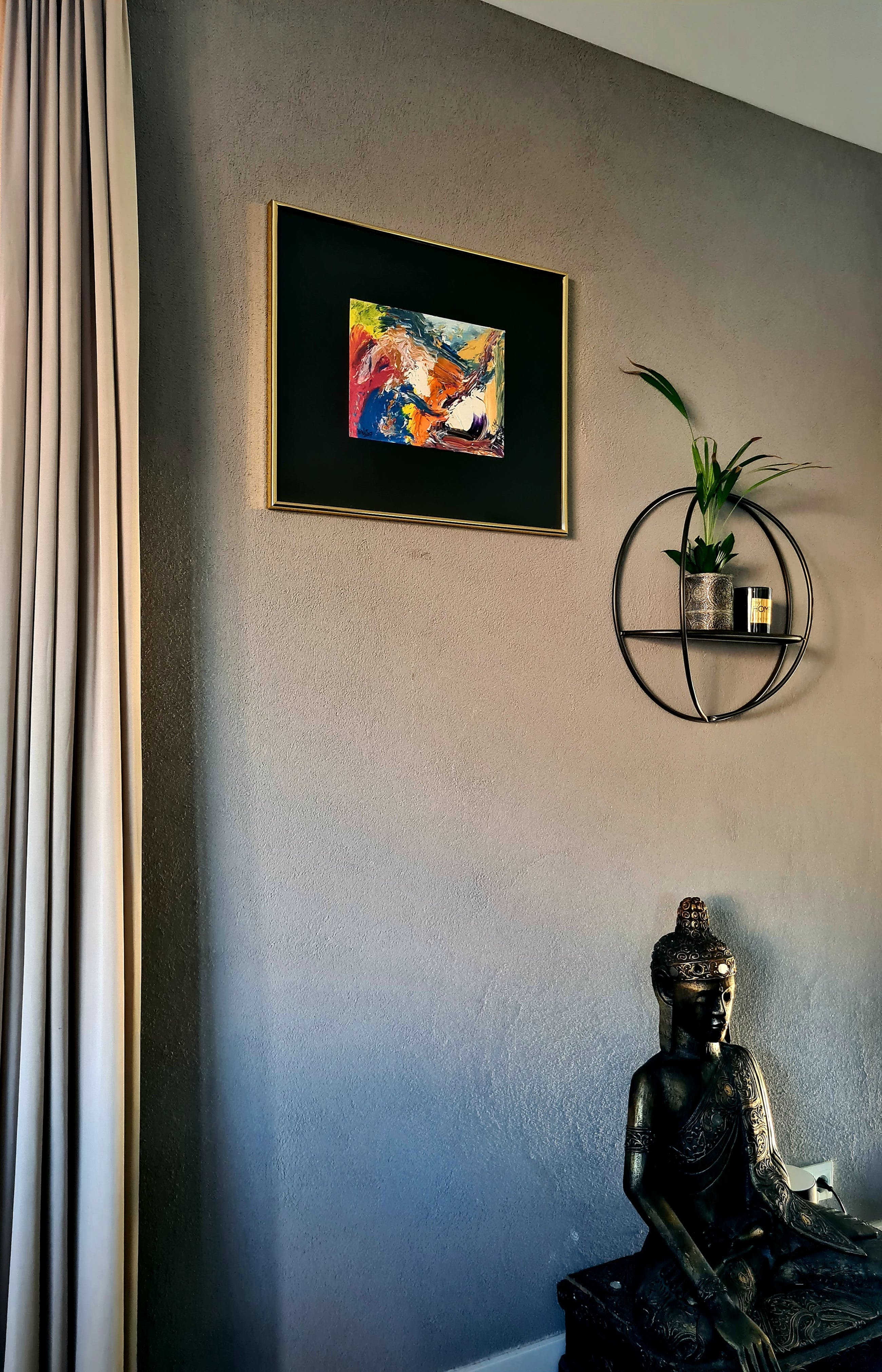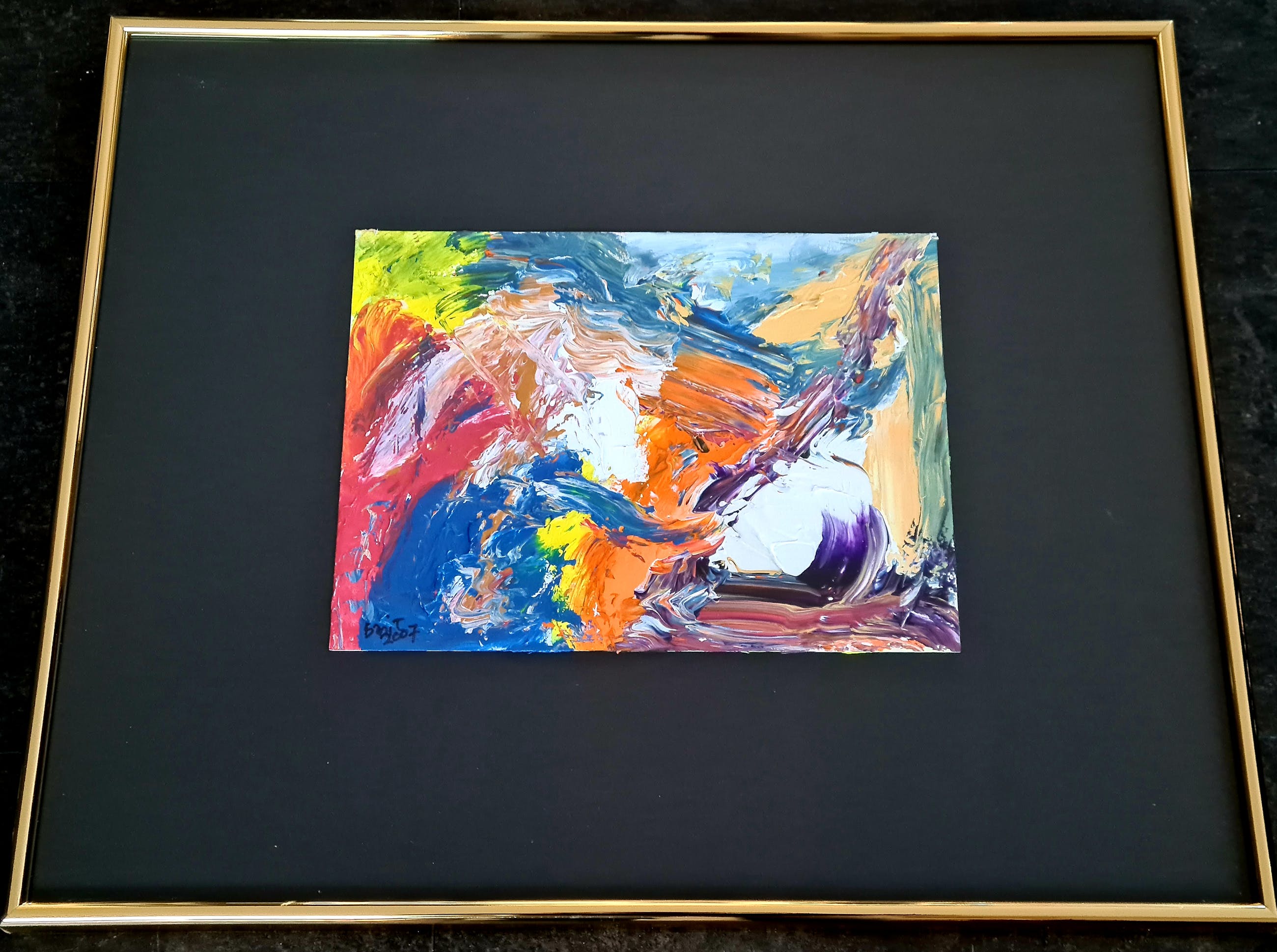 Kleurrijk werk van Smit, prachtig gelijst en kan zo aan de muur;