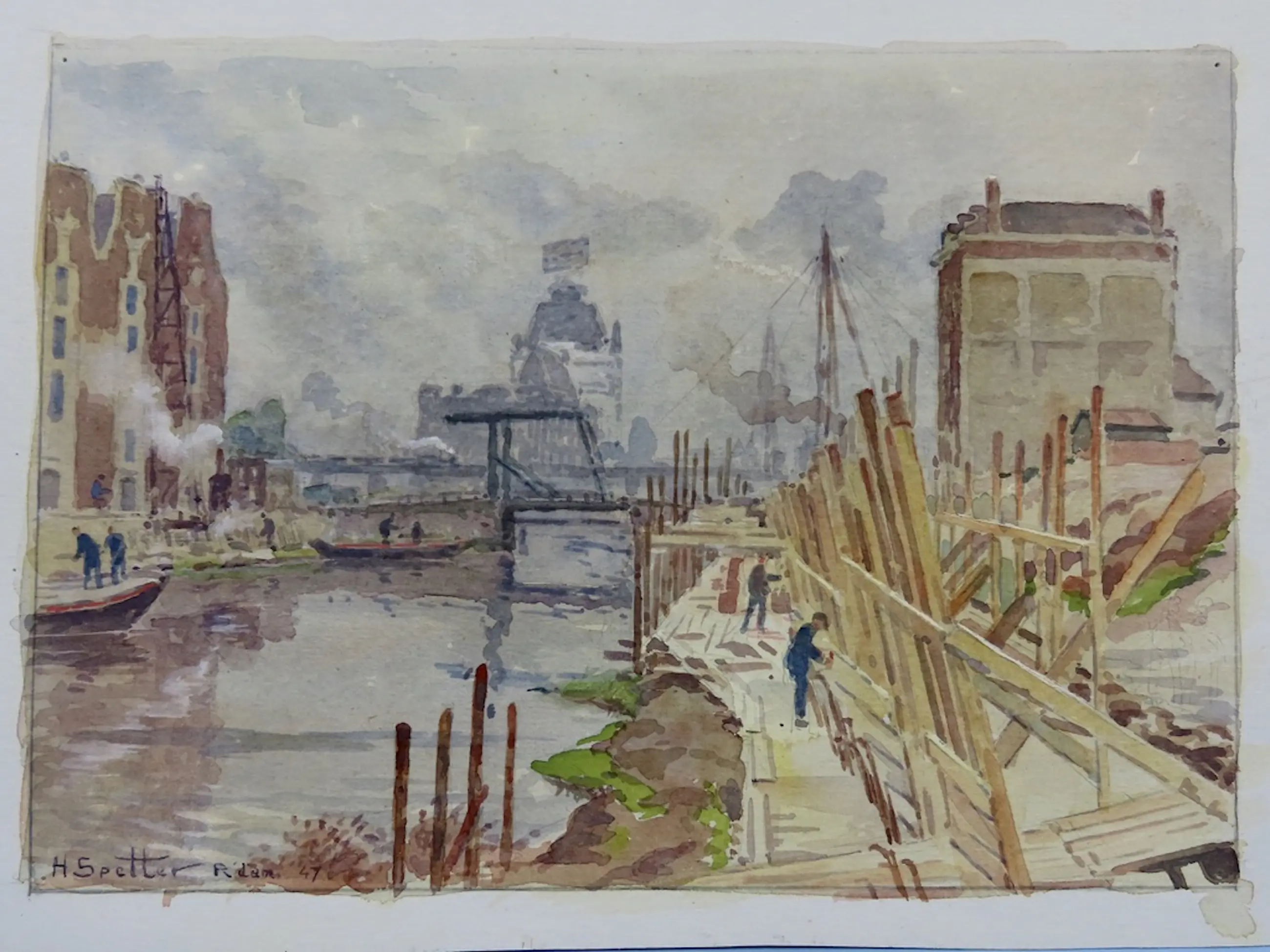 Nog steeds een zeldzame en beroemde aquarel van Rotterdam.