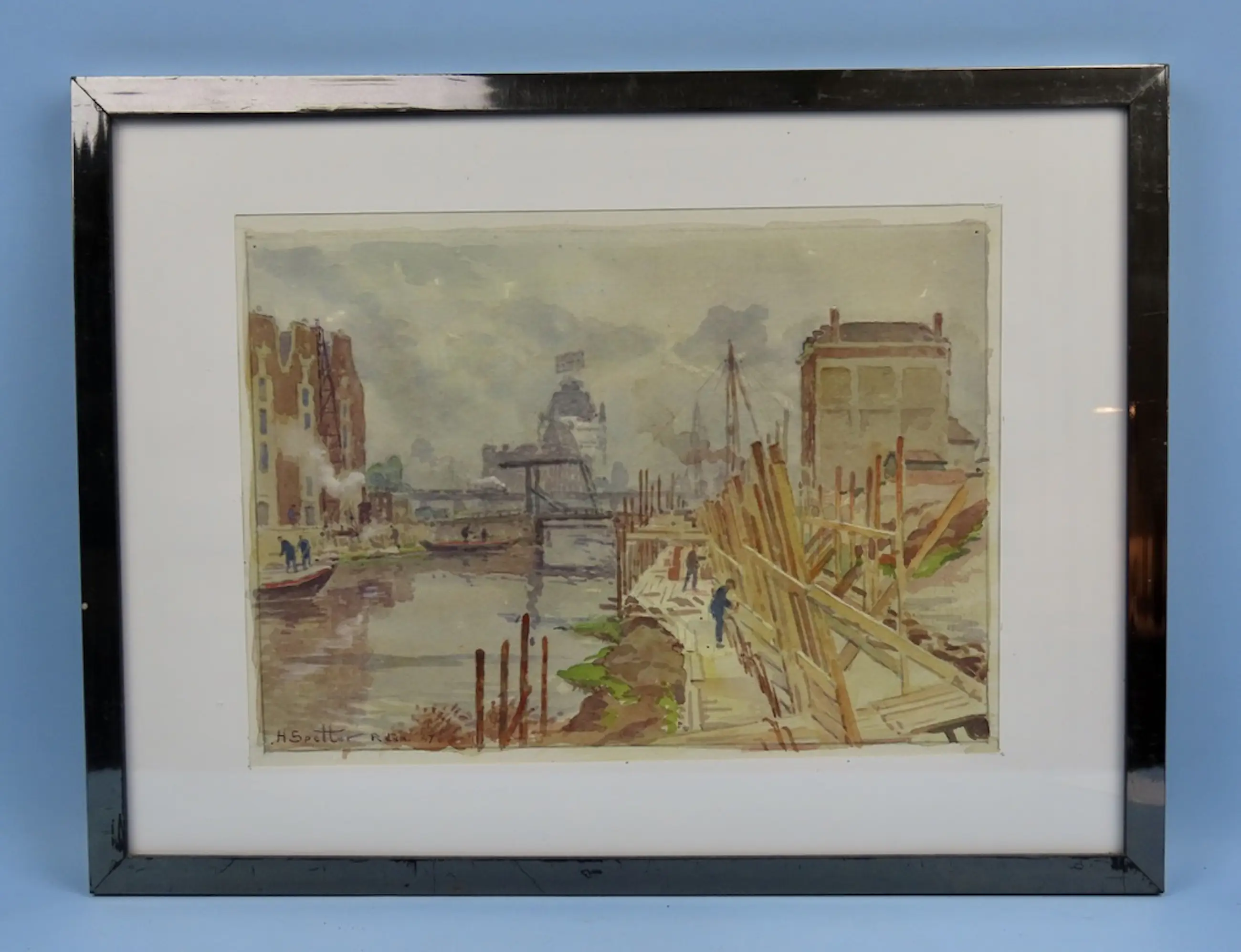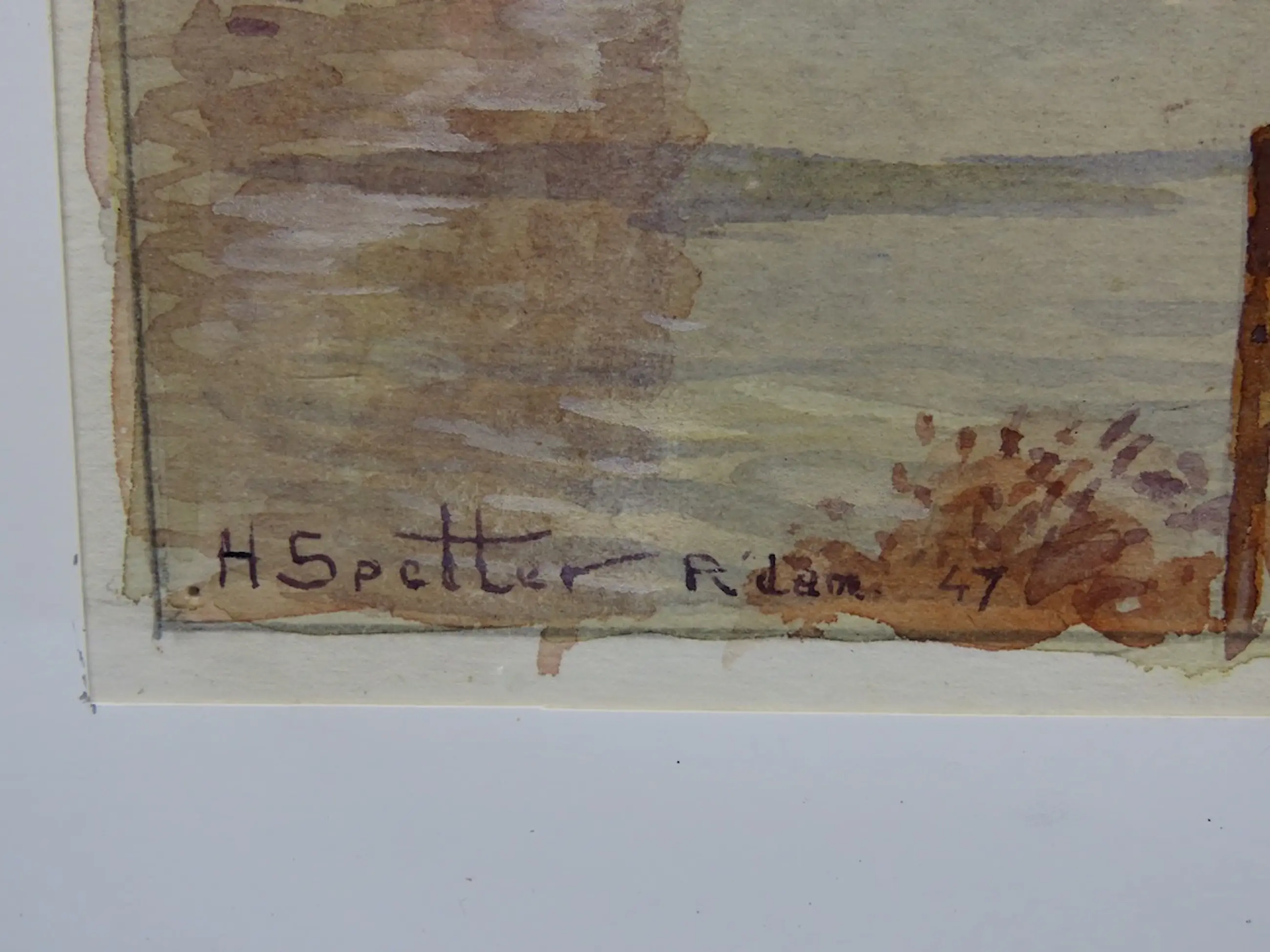 Een fraai en bijzonder werk uit 1947 van de Nederlandse kunstenaar Hendrik Spetter (1902-1985). Op deze aquarel staat de haven van Rotterdam afgebeeld met daarop Het Witte Huis te Rotterdam. Het Witte Huis is in 1897 in Rotterdam gebouwd naar voorbeeld van Amerikaanse wolkenkrabbers. Het was destijds het hoogste kantoorgebouw van Europa. Het heeft in 1940 als een van de weinige gebouwen in het stadscentrum het bombardement op Rotterdam doorstaan.
