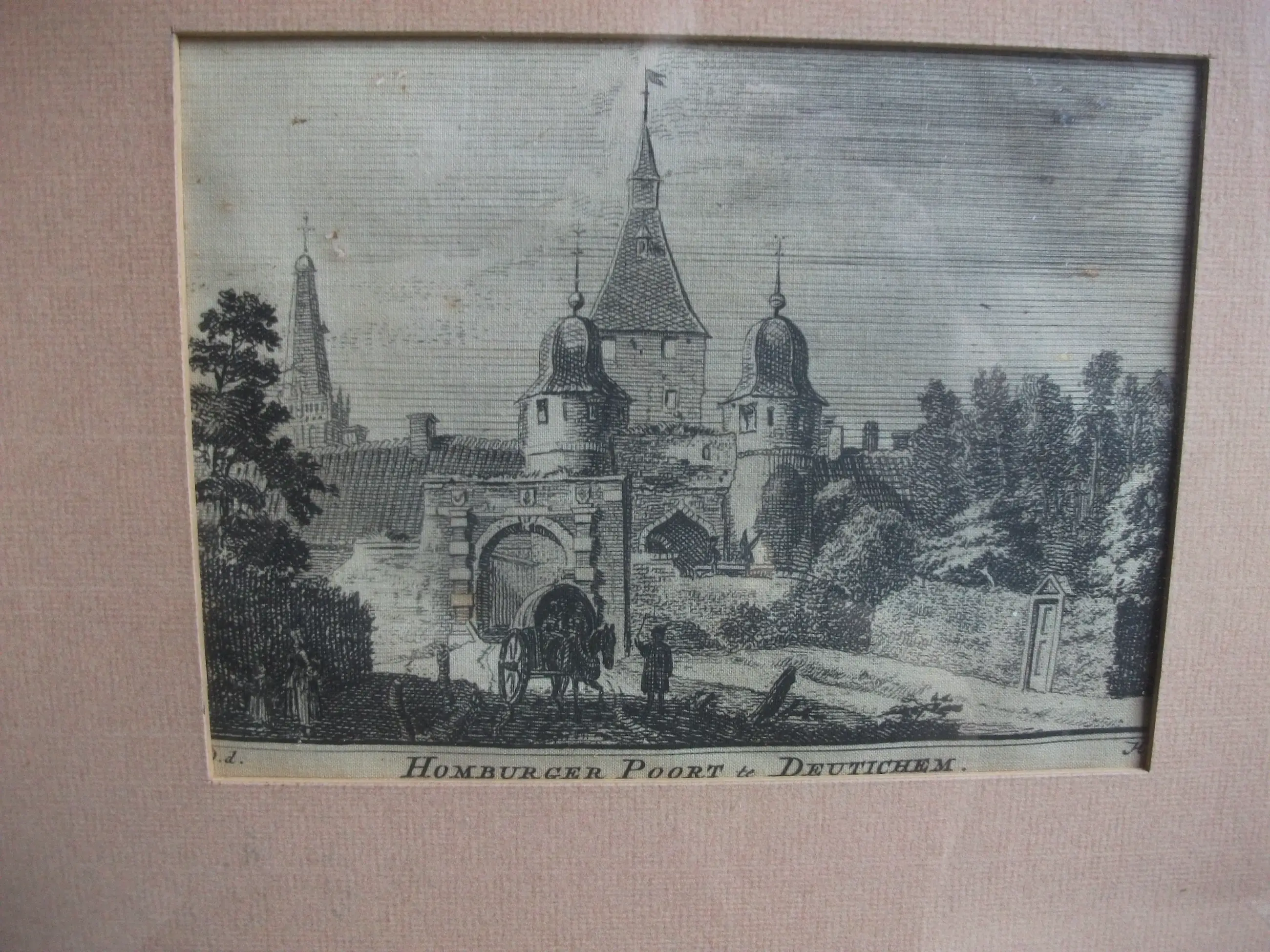 Twee gravures van DOETINCHEM ,van H Spilman naar tekening van Jan de Beijer,apart ingelijst,voorstelling GRUITPOORT, en HOMBURGERPOORT,uit Het verheerlijkt Nederland.