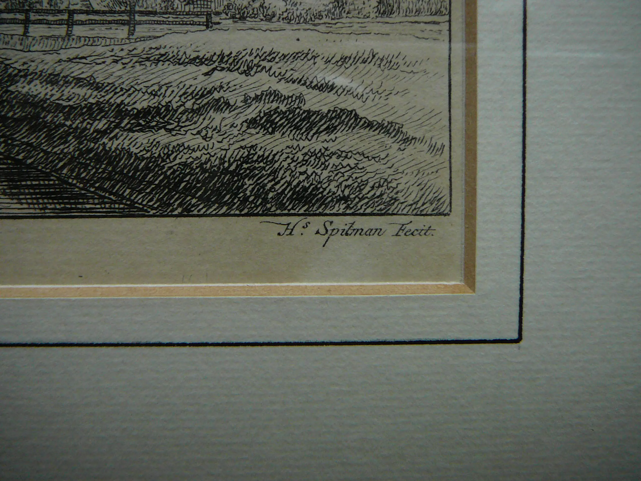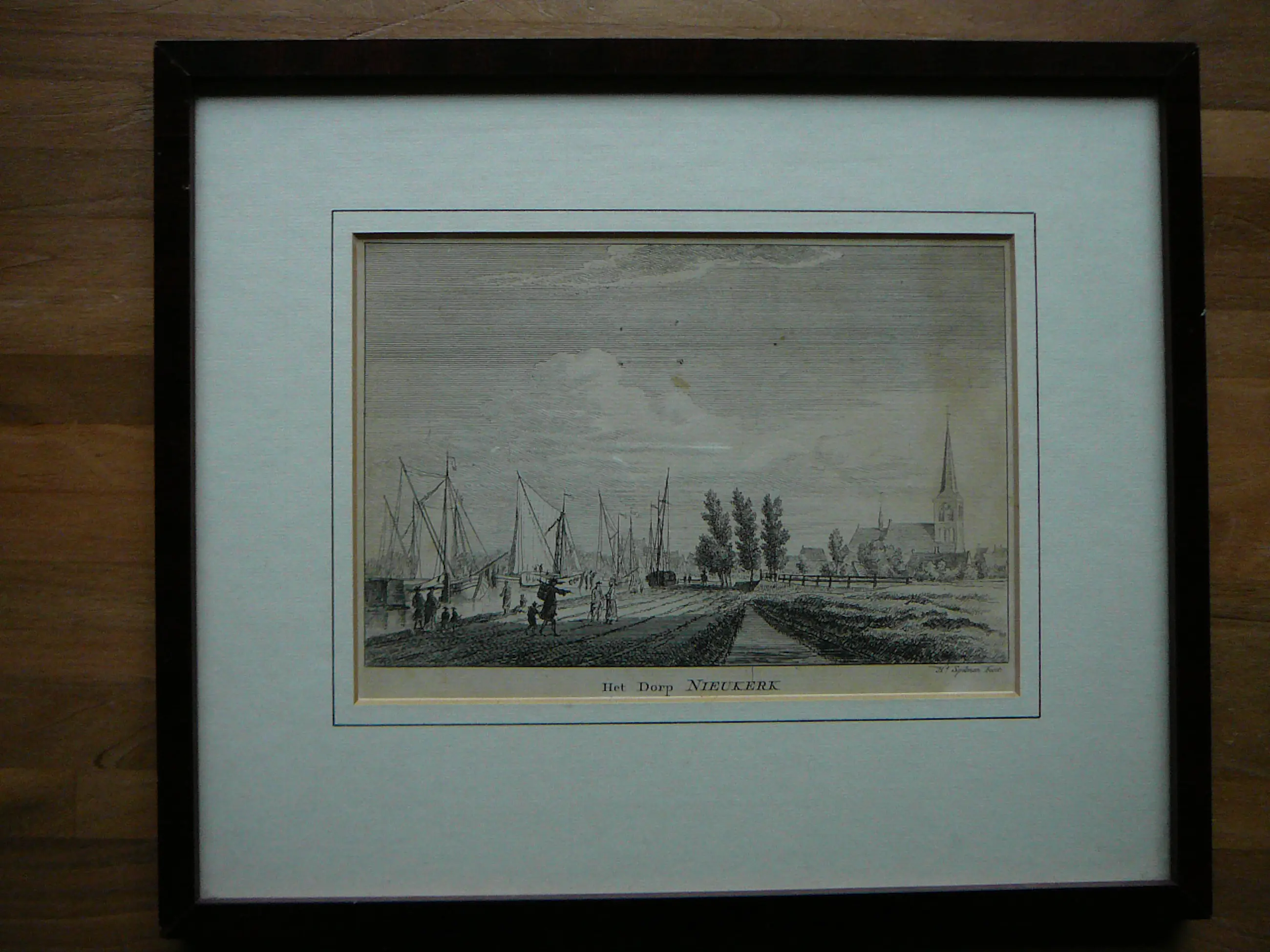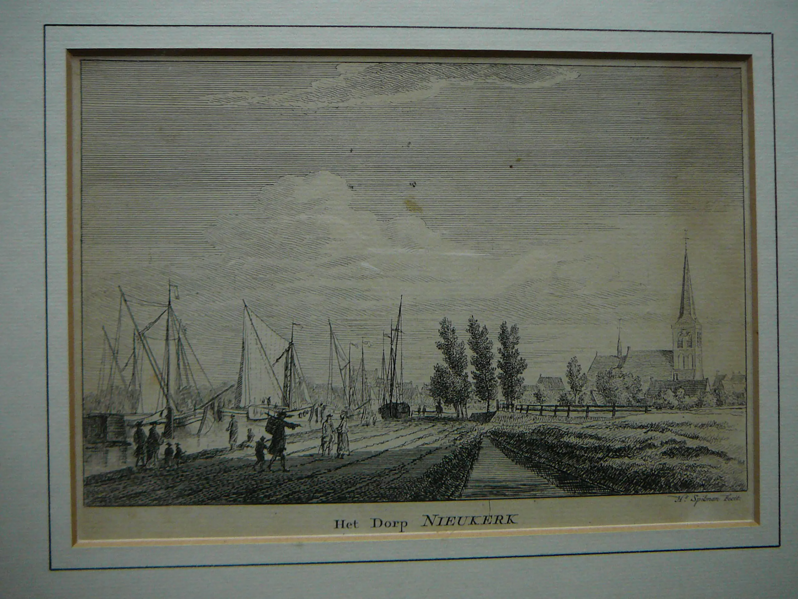 Zeer mooie originele ets van Het Dorp Nijkerk door Hendrik Spilman rond 1750