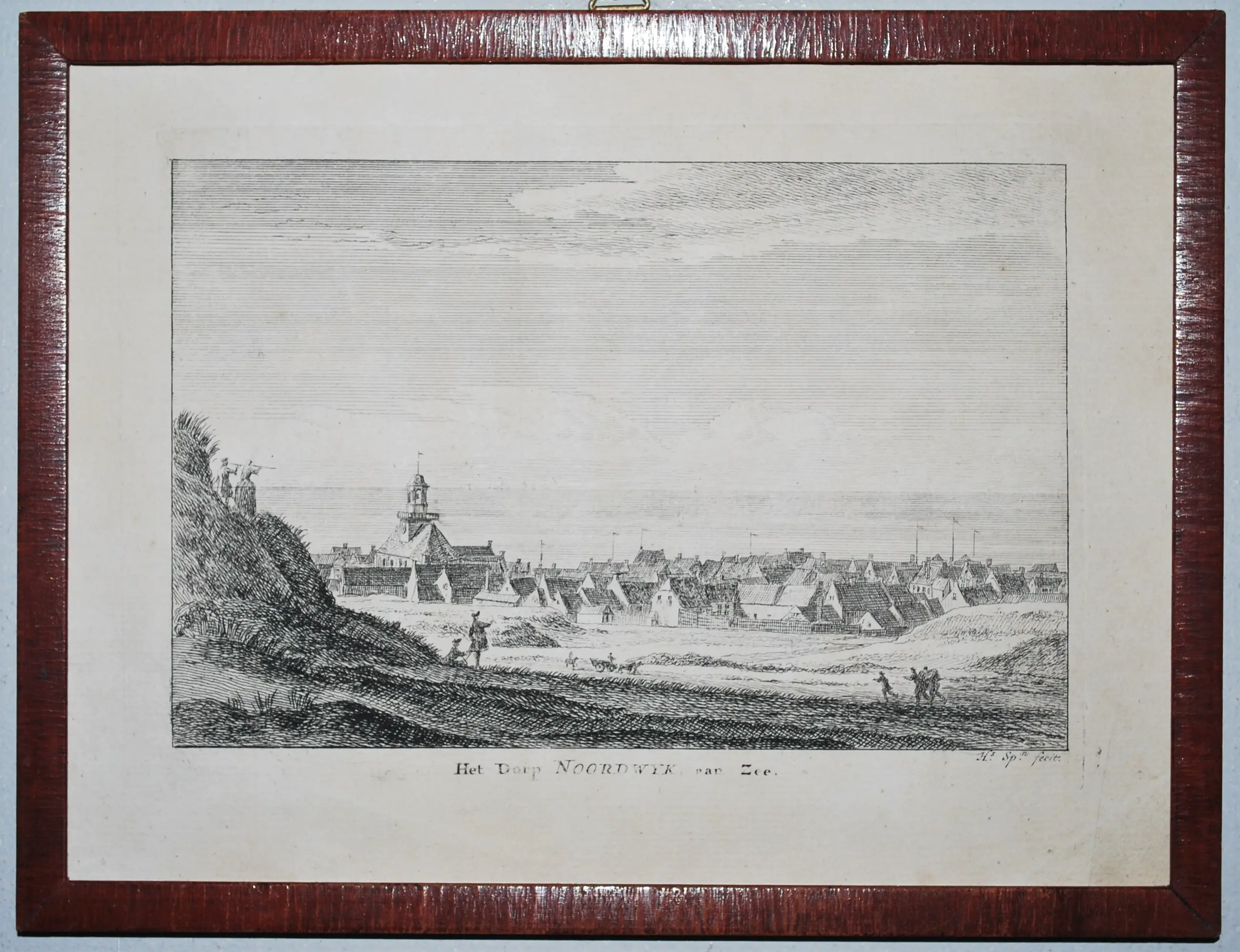 Het losse blad (17.5x23 cm) is geplaatst achter glas.