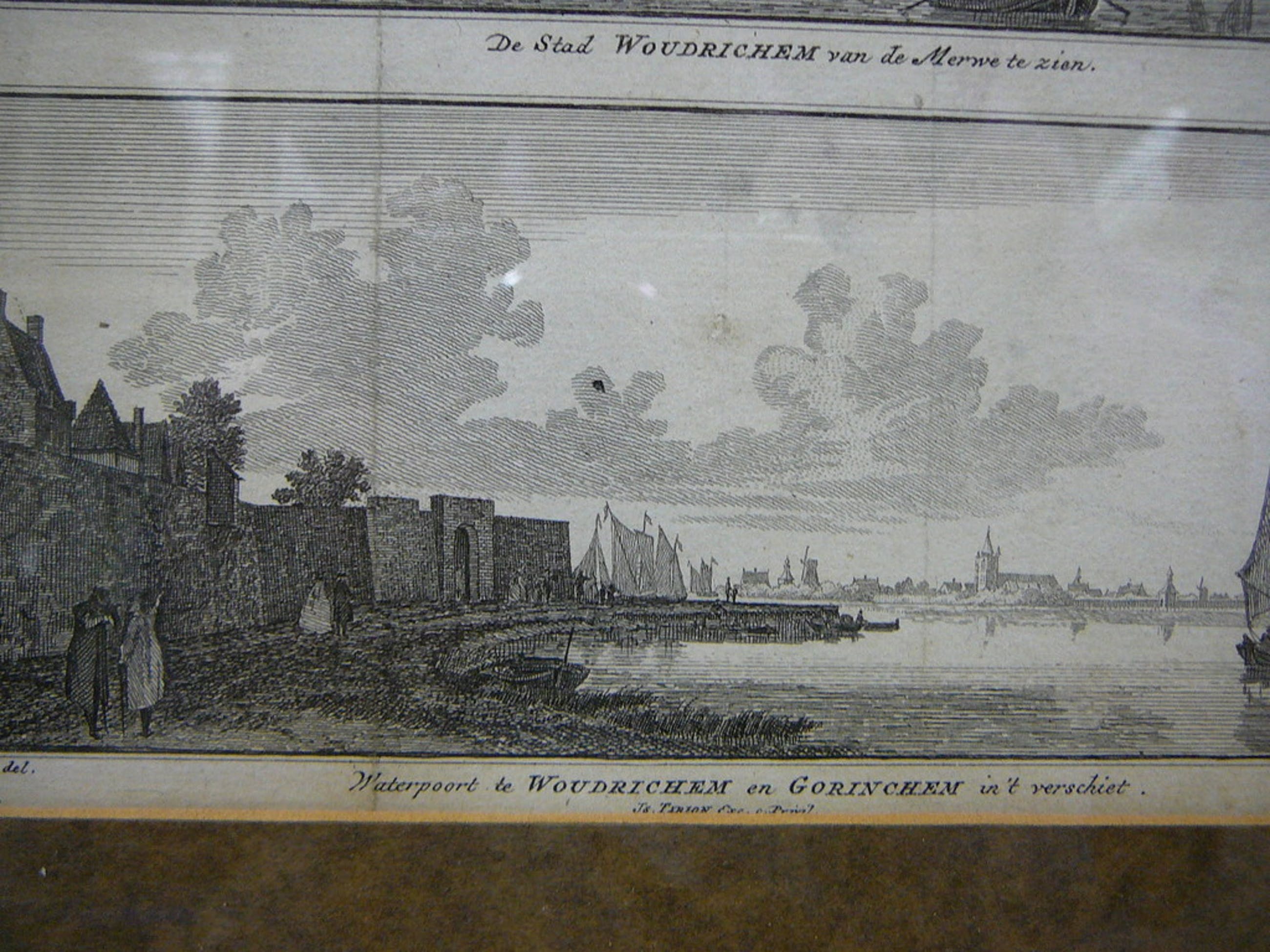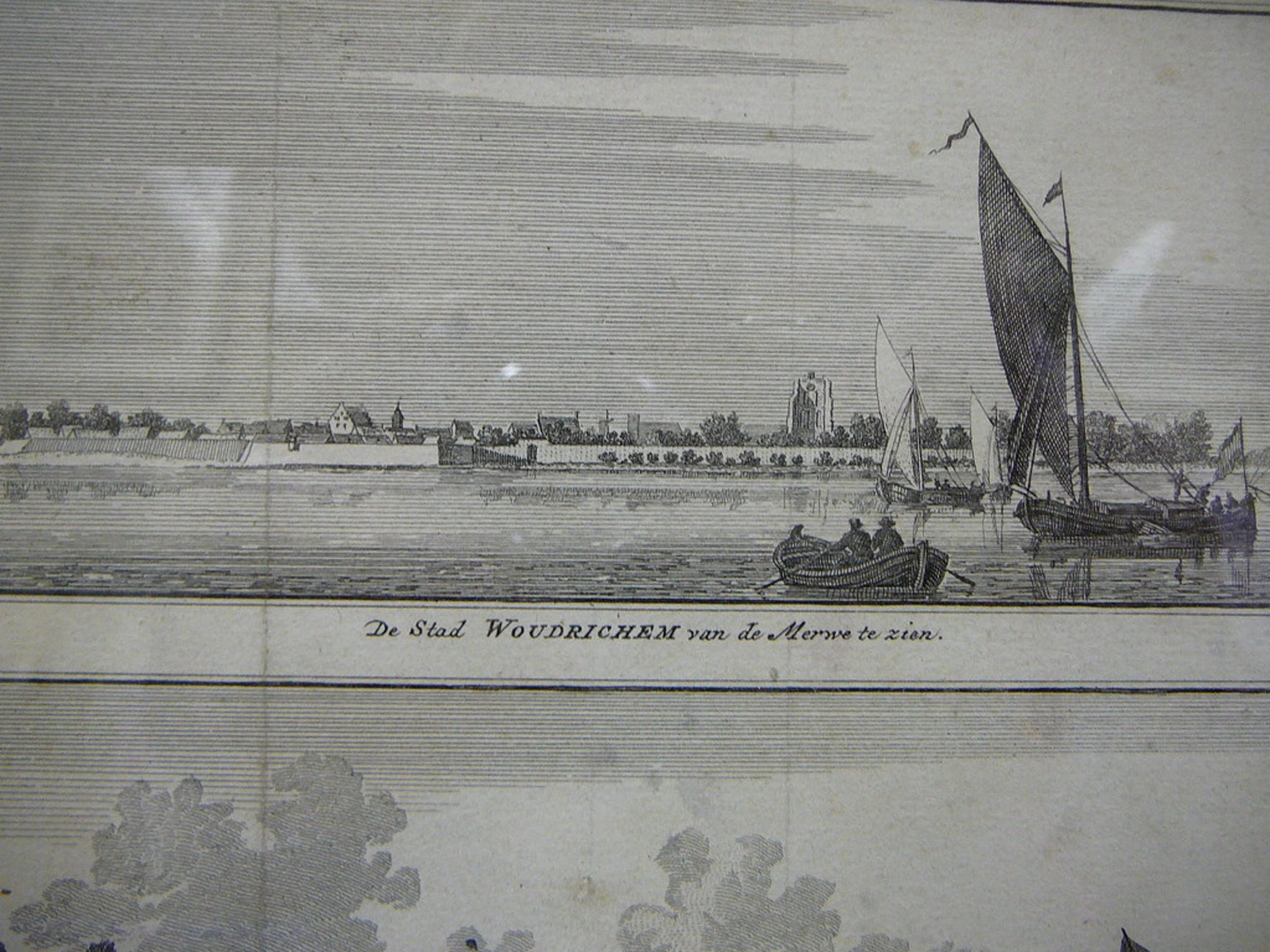 Mooie dubbele gravure van woudrichem in mooie oude lijst
